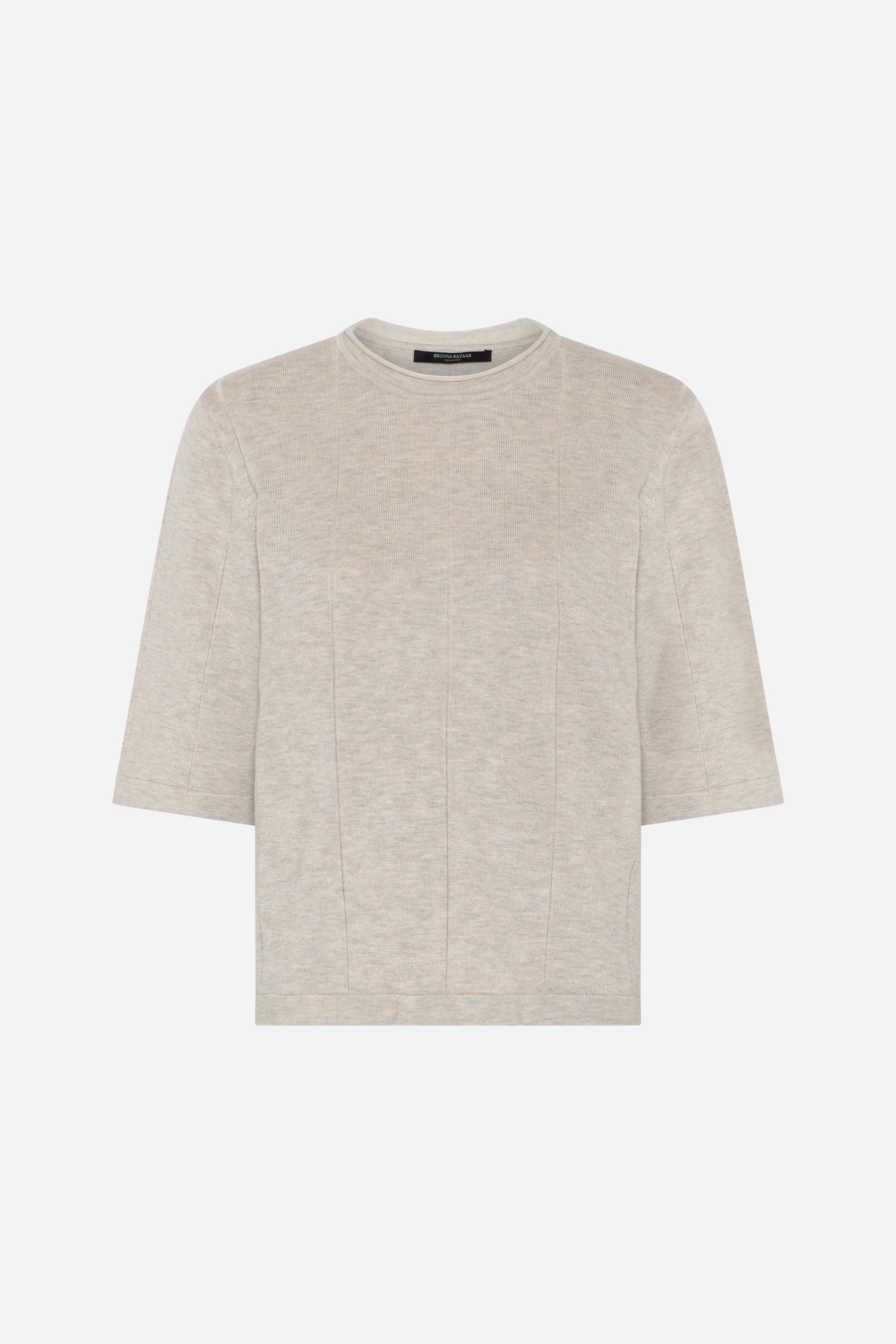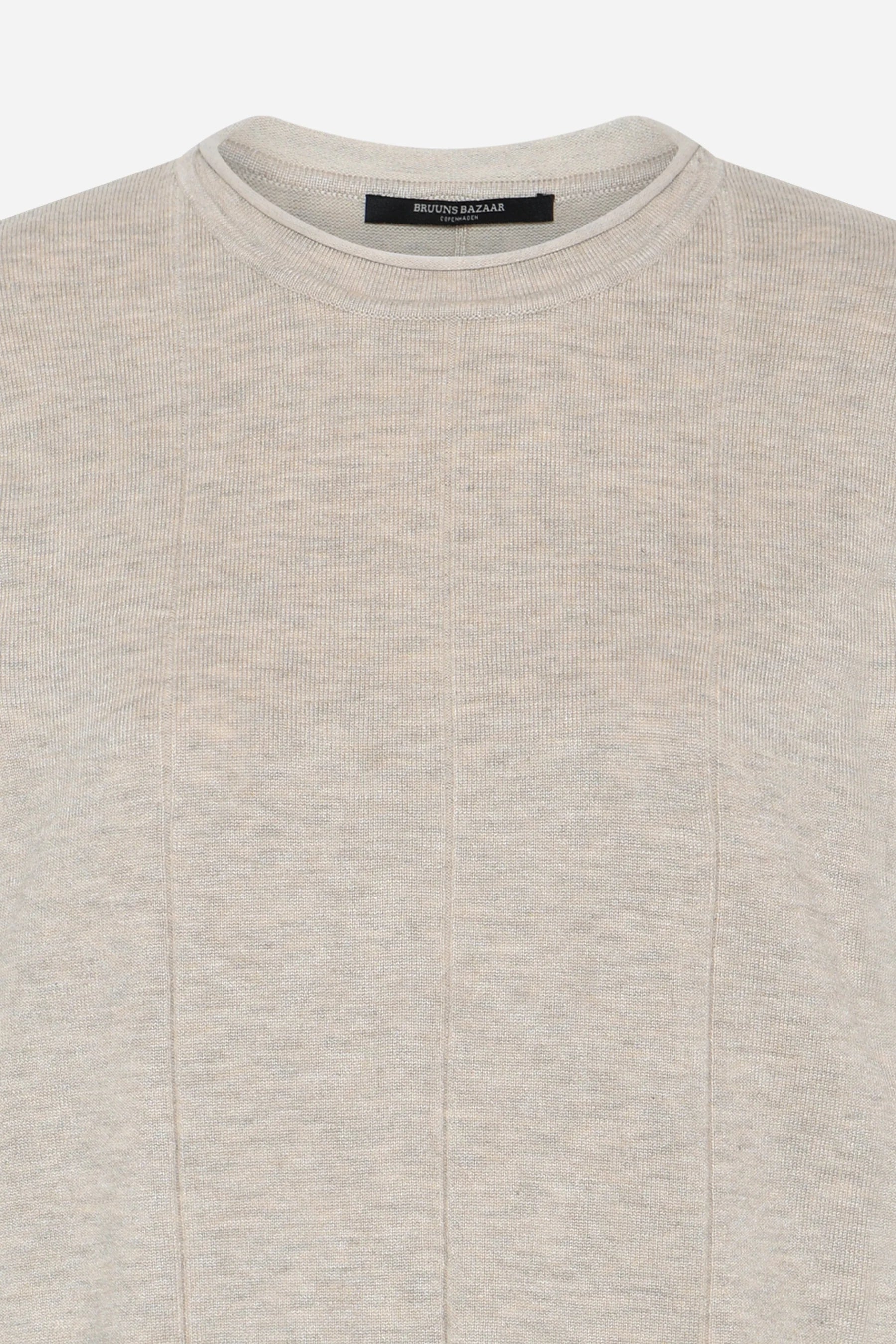 Æðisleg stuttermapeysa/bolur frá danska merkinu Bruuns Bazaar. Hún er með rúnuðu hálsmáli, teygjanlegu og mjúku efni. Virkilega elgant og fín. Flott hversdags eða spari.