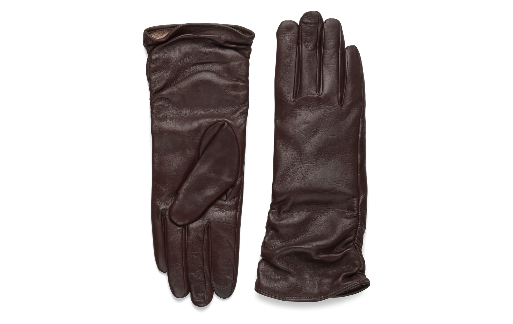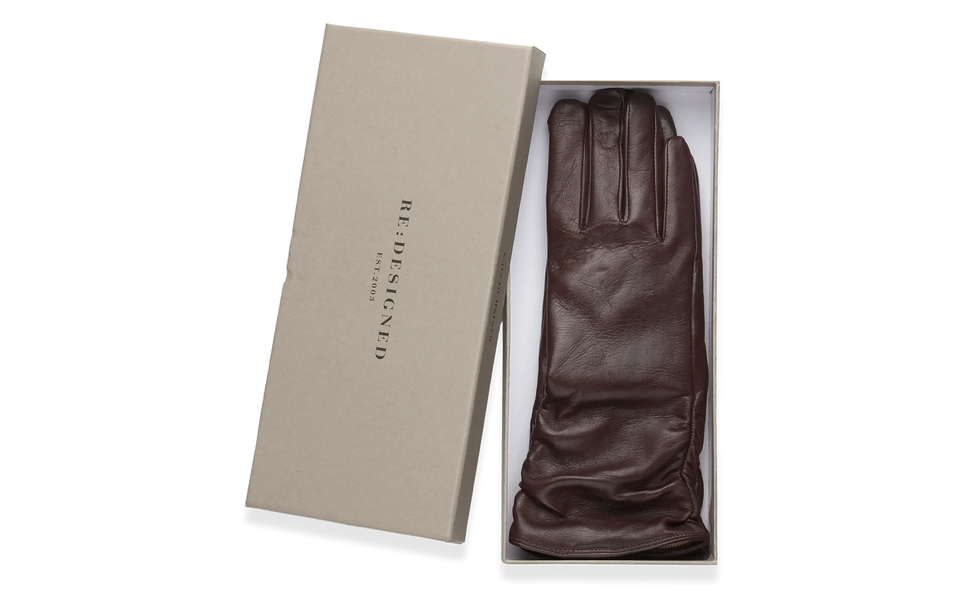 Klassískir leðurhanskar, milli háir og örlítið teknir saman sem gera þá extra lekkera. Þessir eru frá Re:Designed by Dixie. Þessir eru fóðraðir að innan með ull svo þeir eru extra hlýir. Það er óþarfi að taka hanskana af til að nota símann, en þeir virka á síma.