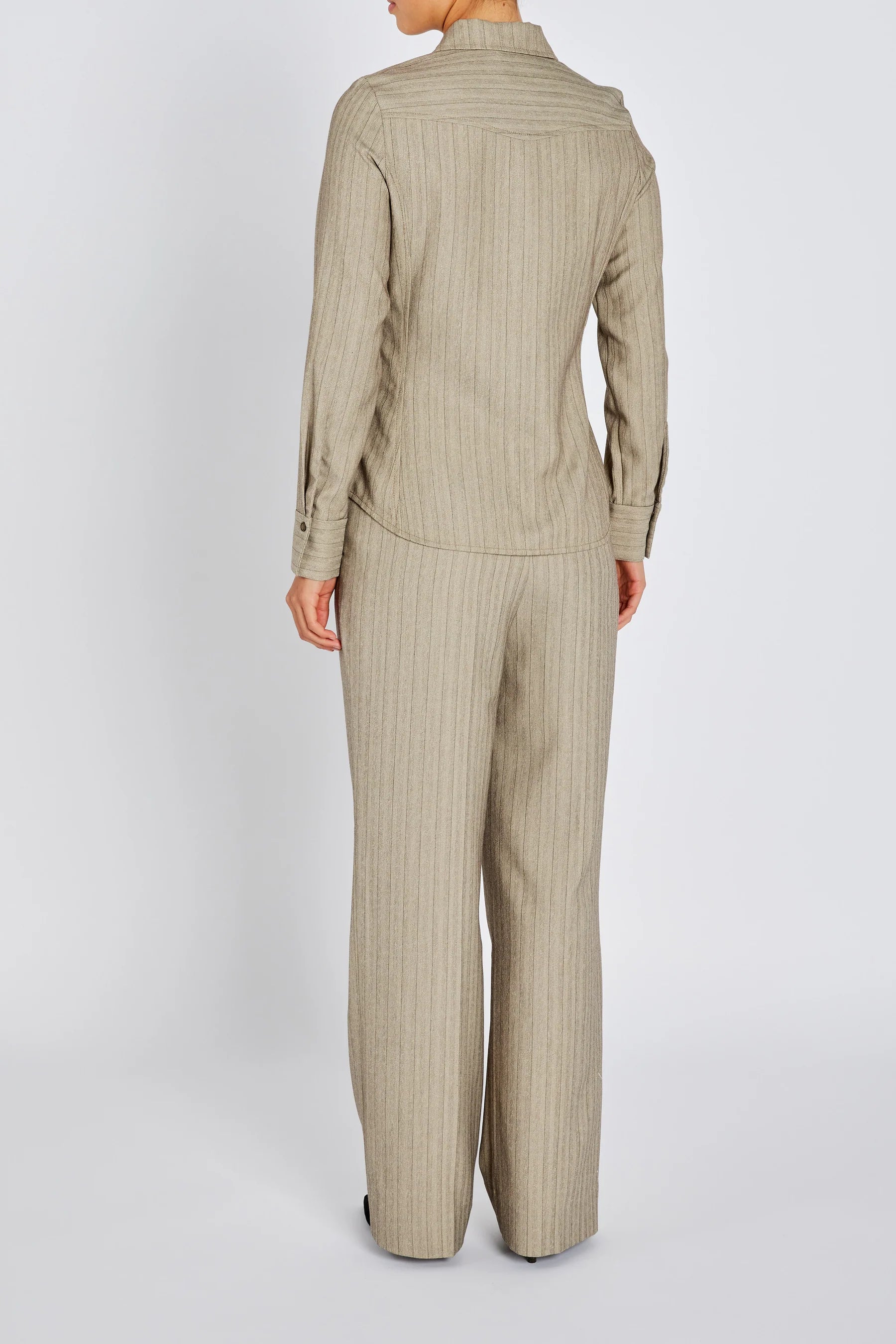Þessi er æðisleg. Elegant og falleg skyrta frá danska merkinu Bruuns Bazaar. Hún er hneppt alla leið, með skyrtukraga og bein í sniði. Koma buxur í stíl, æðislegt saman eða í sitthvoru.