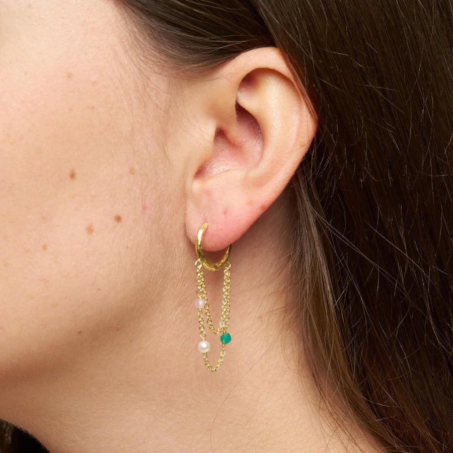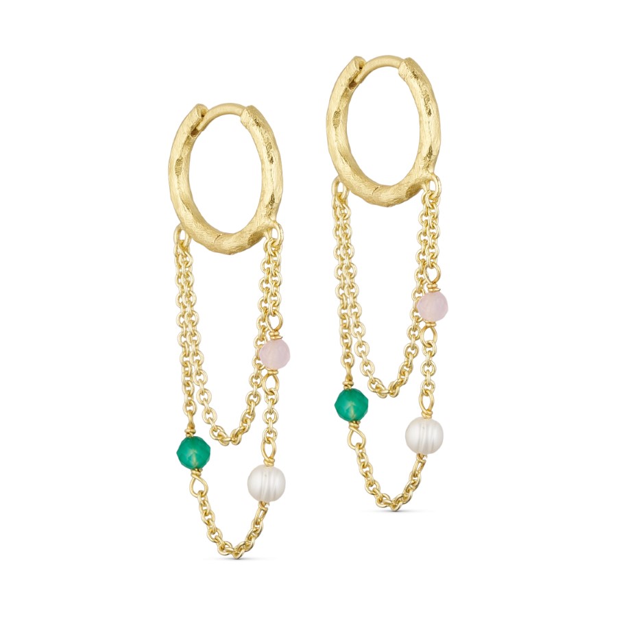 Hoop eyrnalokkar með keðjum, ferskvatnsperlu og náttúrusteinum