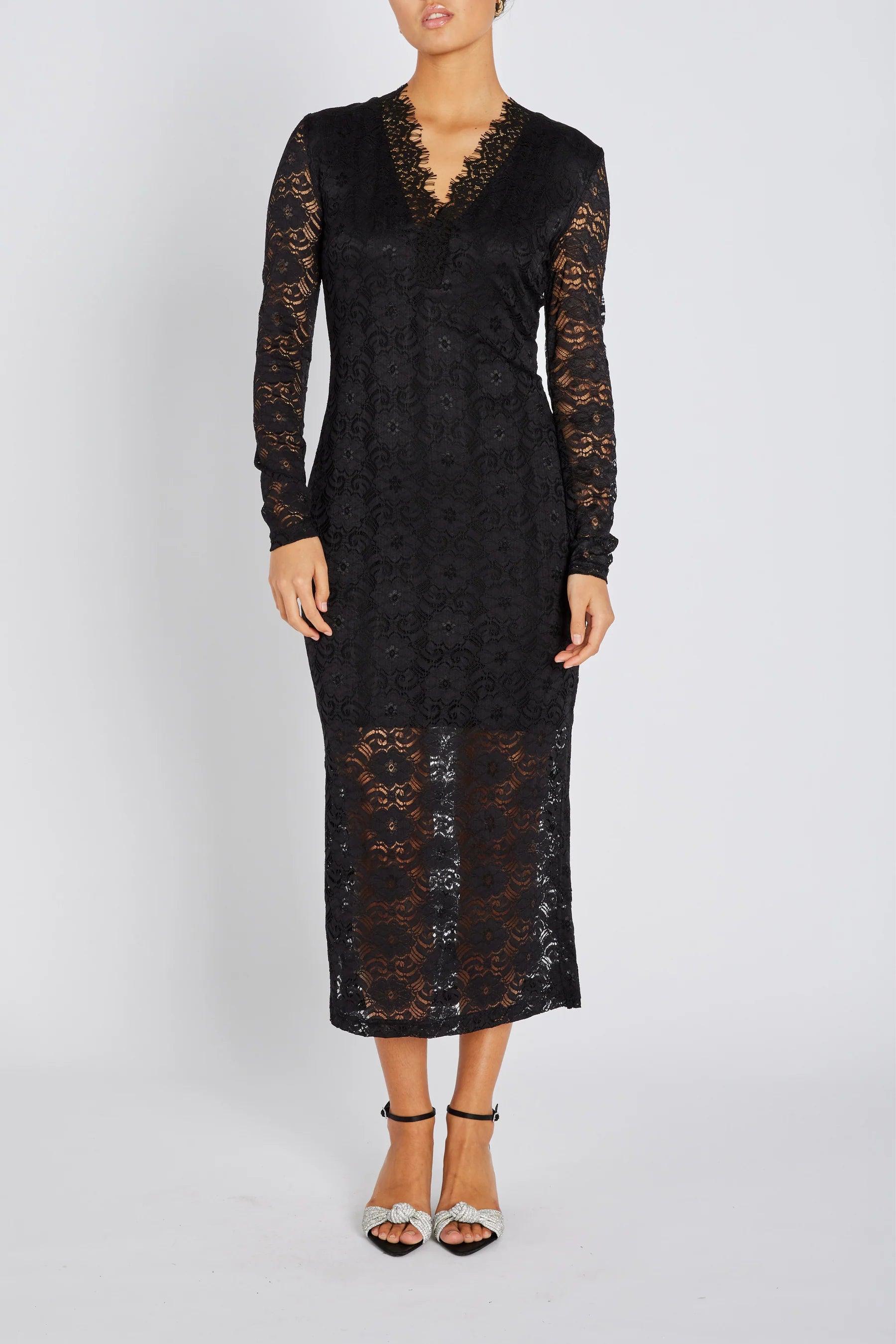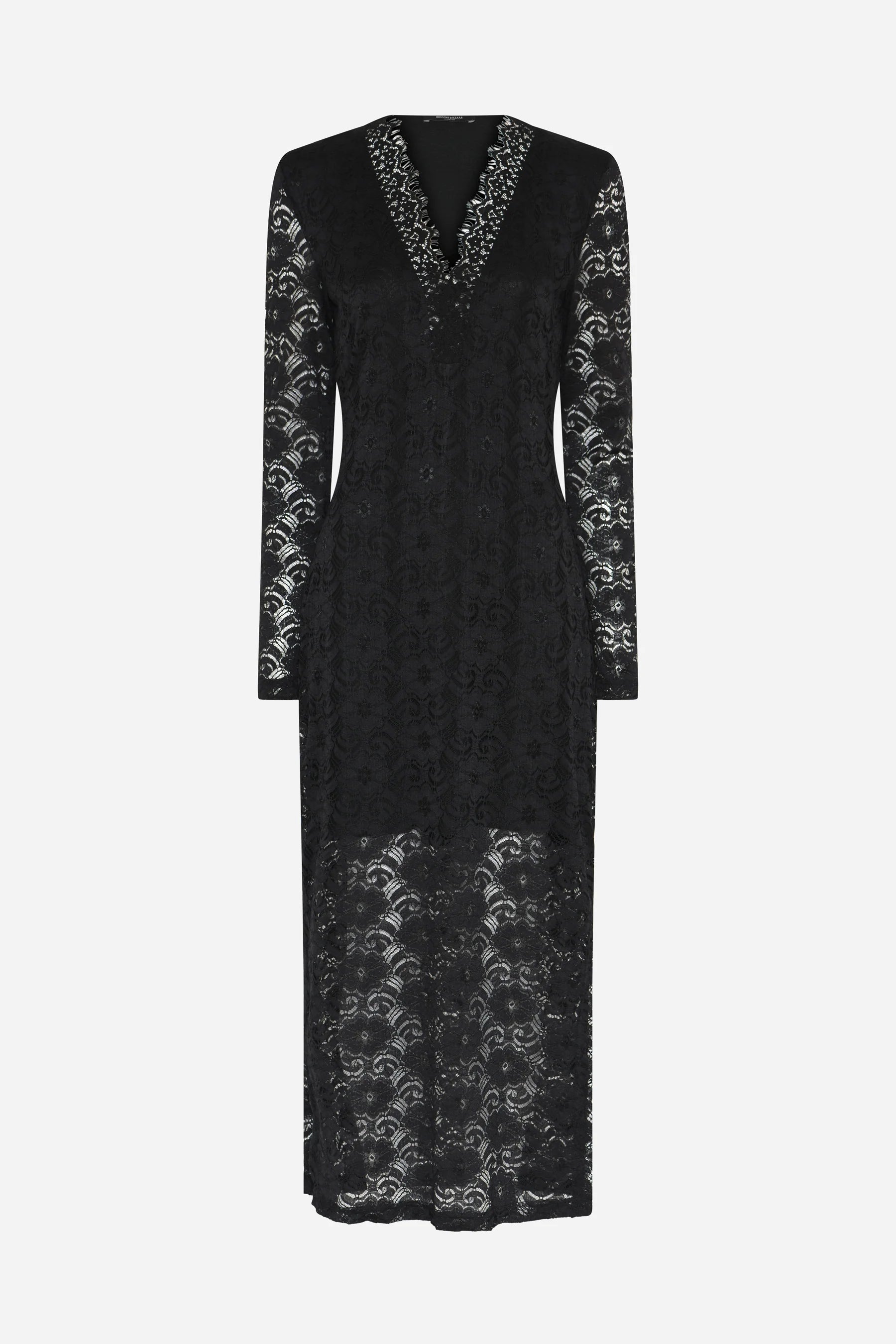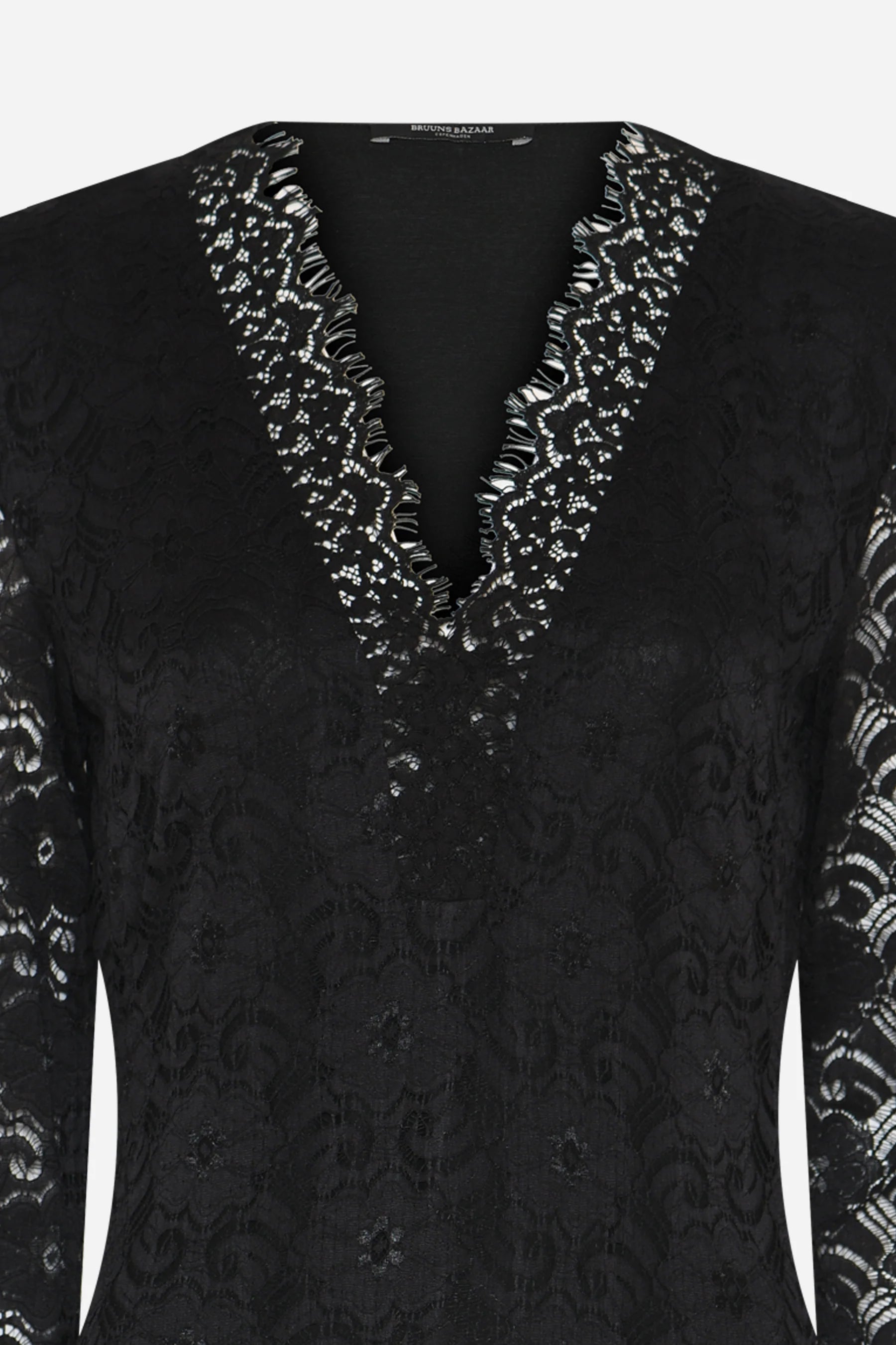 Þessi er dásamlegur. Virkilega elegant og klassískur kjóll frá danska merkinu Bruuns Bazaar. Hann er með v-hálsmáli, er úr blúndu efni með síðum ermum, undirkjól sem er örlítið styttri og klauf á hliðunum. Hversu rómantískur og fallegur?