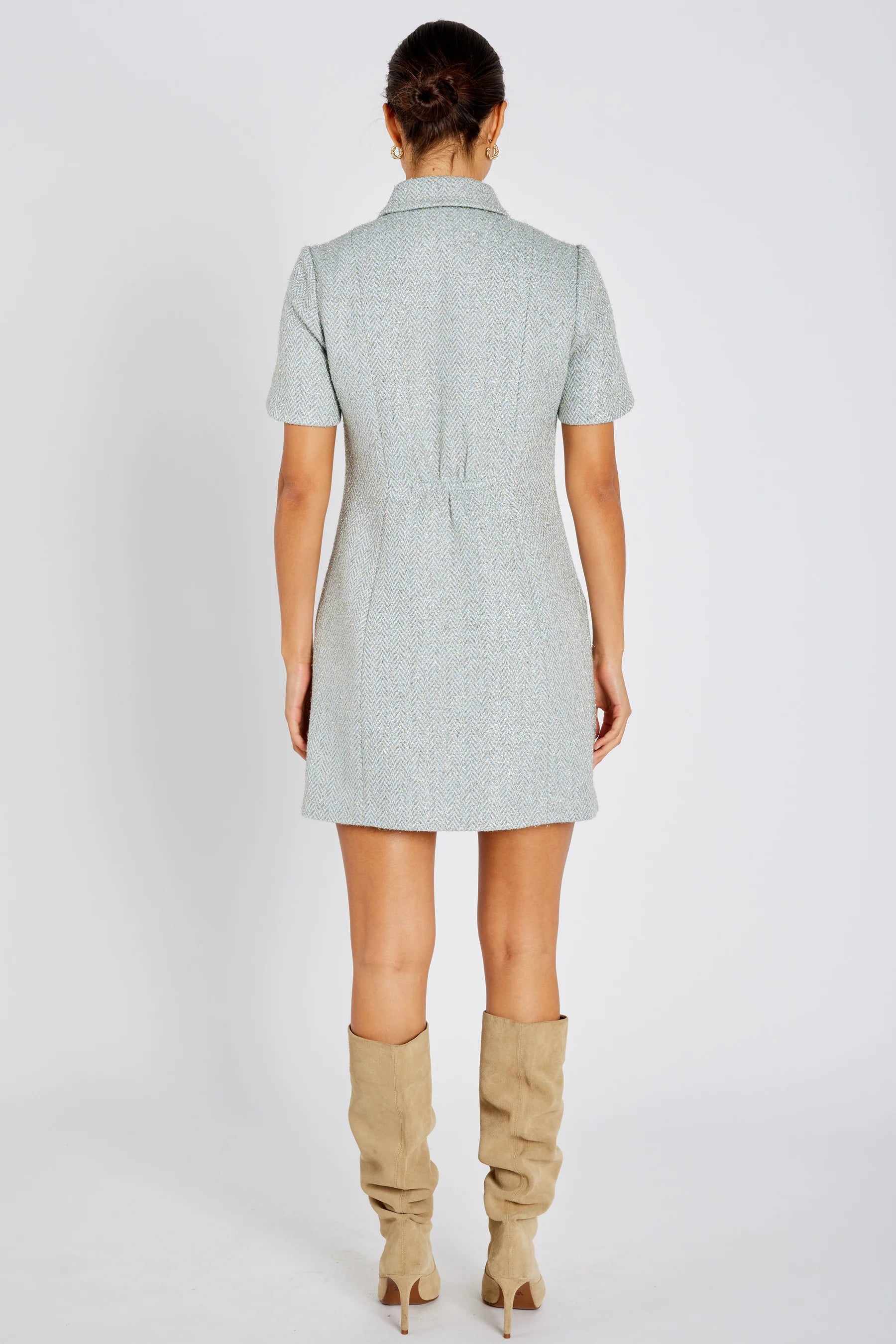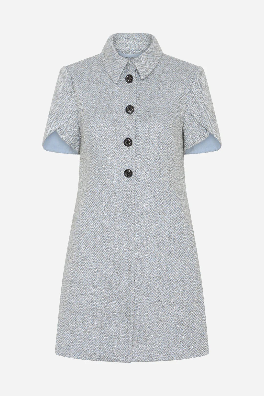 Þessi er dásamlegur. Virkilega elegant og klassískur kjóll frá danska merkinu Bruuns Bazaar. Hann er með skyrtukraga, hneppur að ofan og með stuttu pilsi. Allskonar falleg details á honum, fallegar tölur og skemmtilegar "cape" ermar.