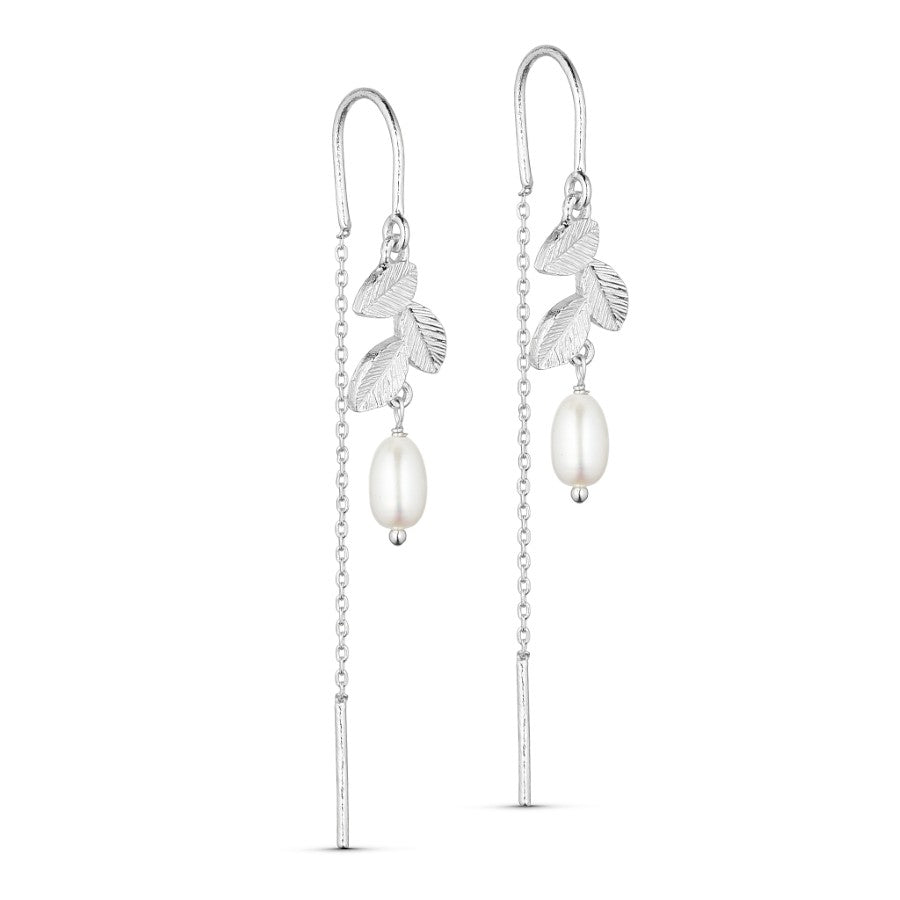 Eyrnalokkarnir eru úr brassi í grunninn með silfurhúð, fallegum dahlia blöðum og ferskvatnsperlu. Koma einnig í gylltu