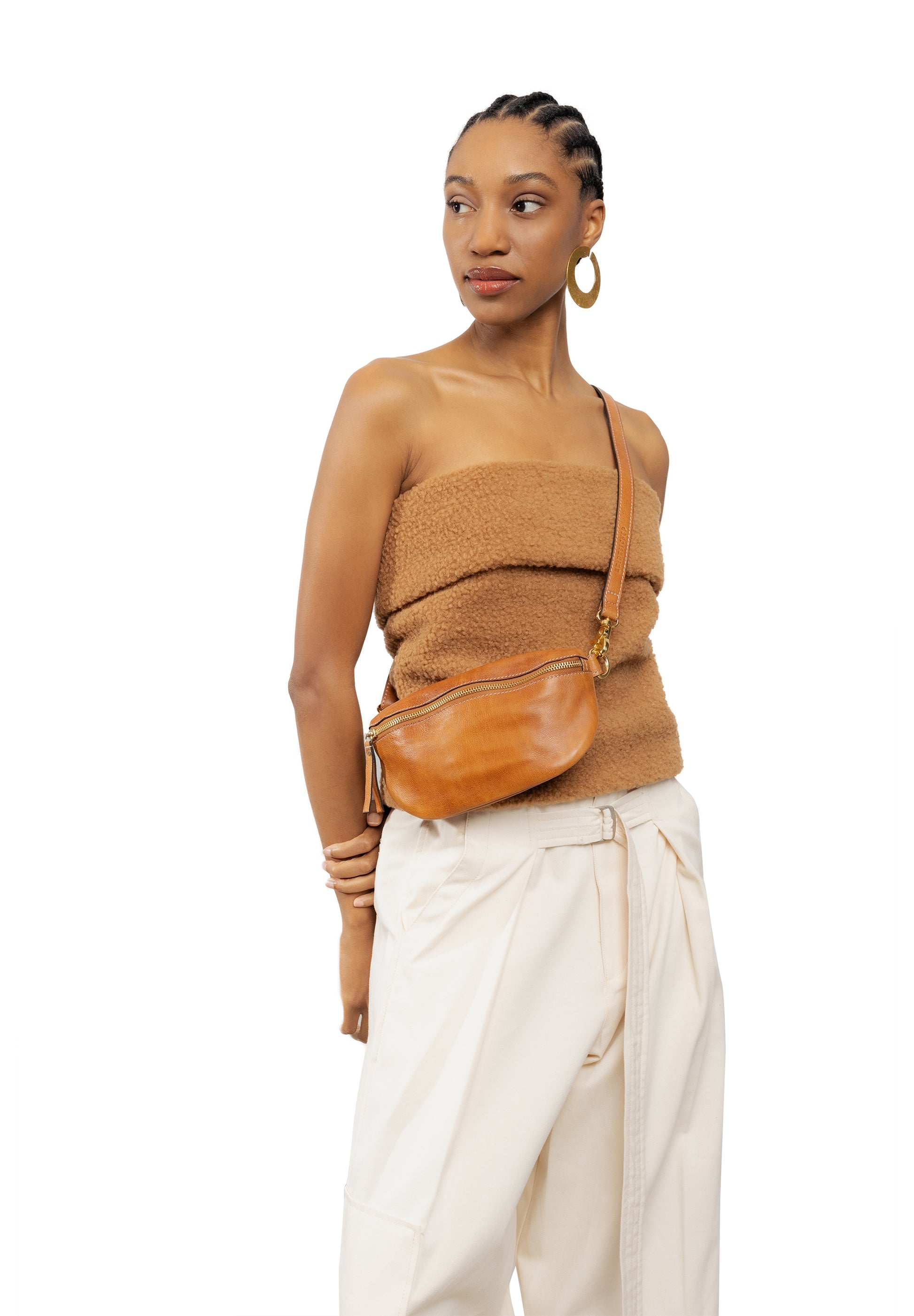 Nett og falleg leður mittistaska (bumbag) frá danska merkinu RE:Designed by Dixie. Eitt rennt hólf og stillanleg ól, kemur einnig í svörtu og walnut brúnu