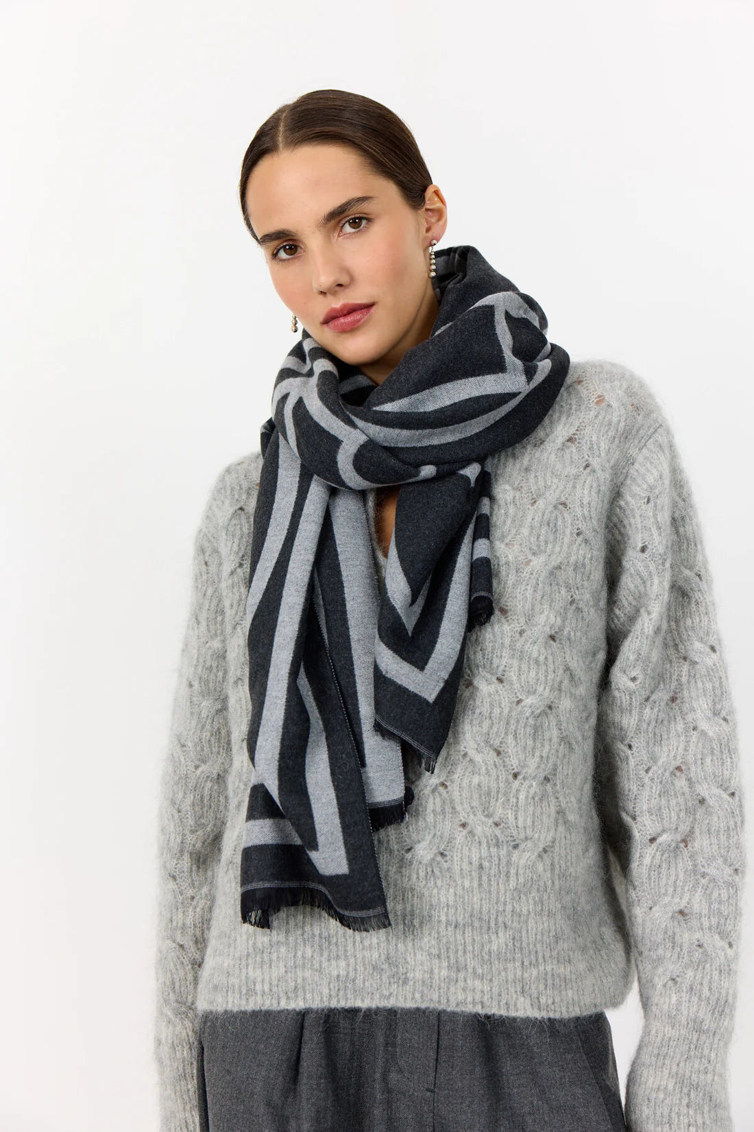 Flott mynstur og sparilegur trefill sem einnig er hægt að skella yfir axlirnar eins og sjali. Kemur í þremur litum