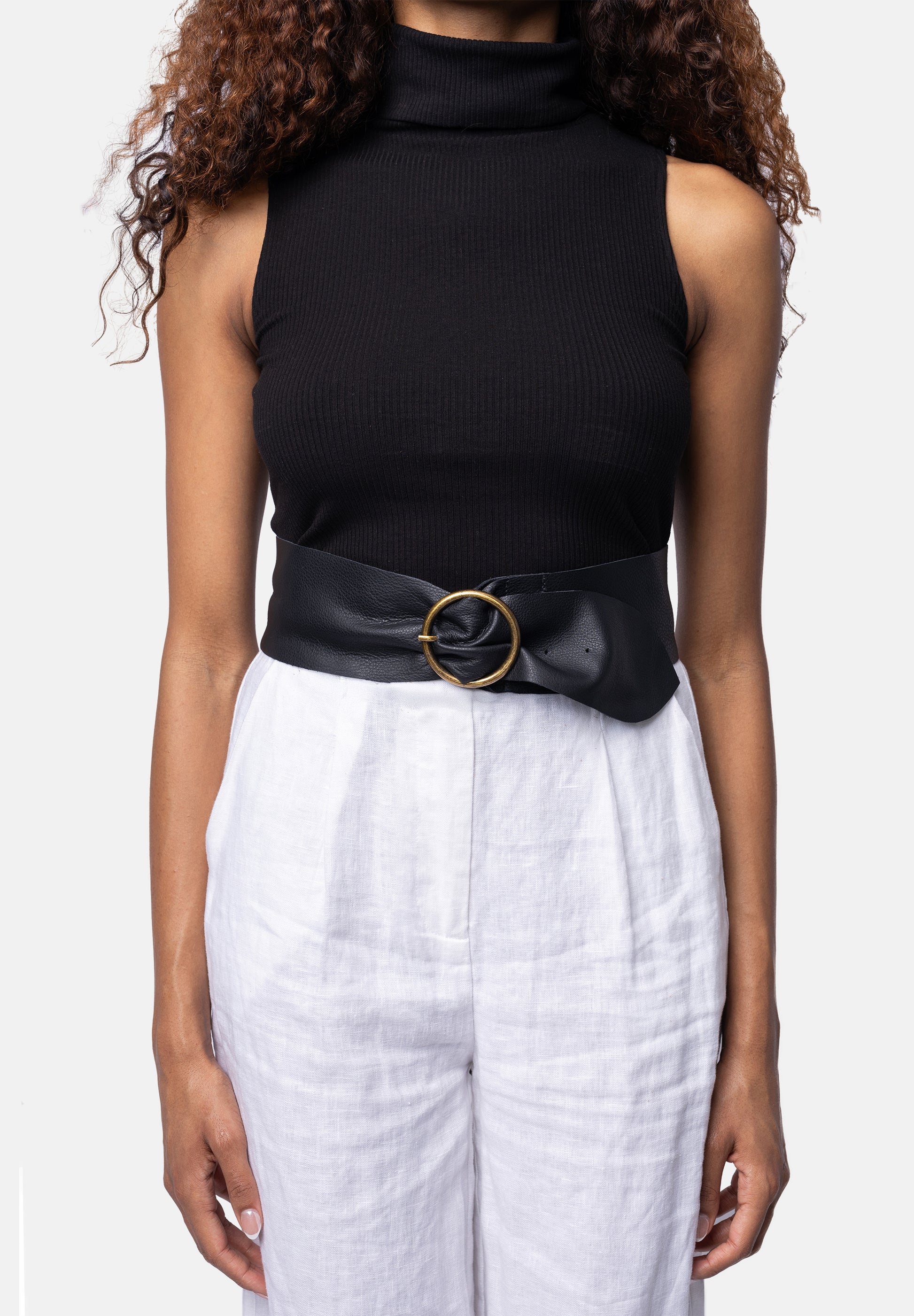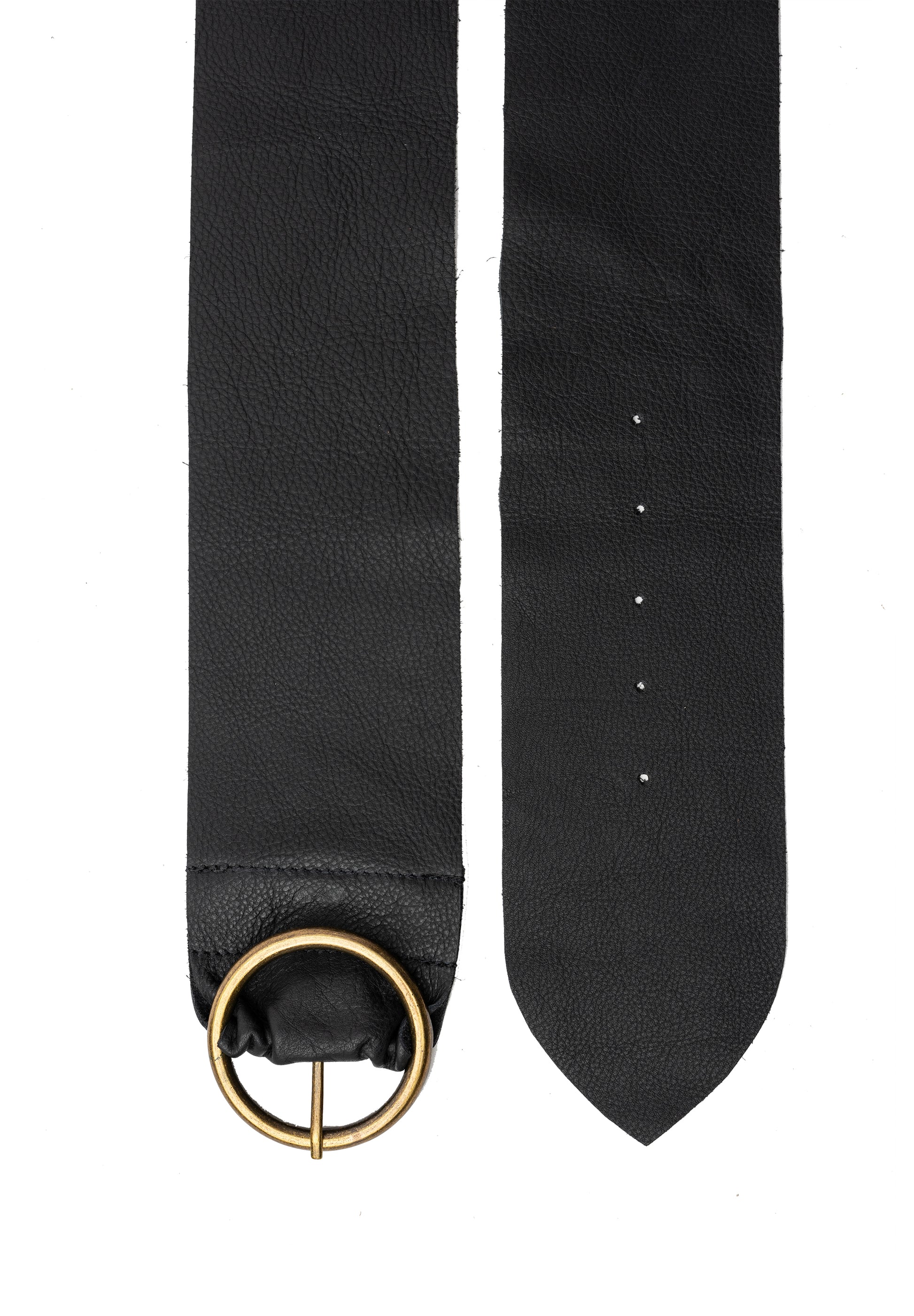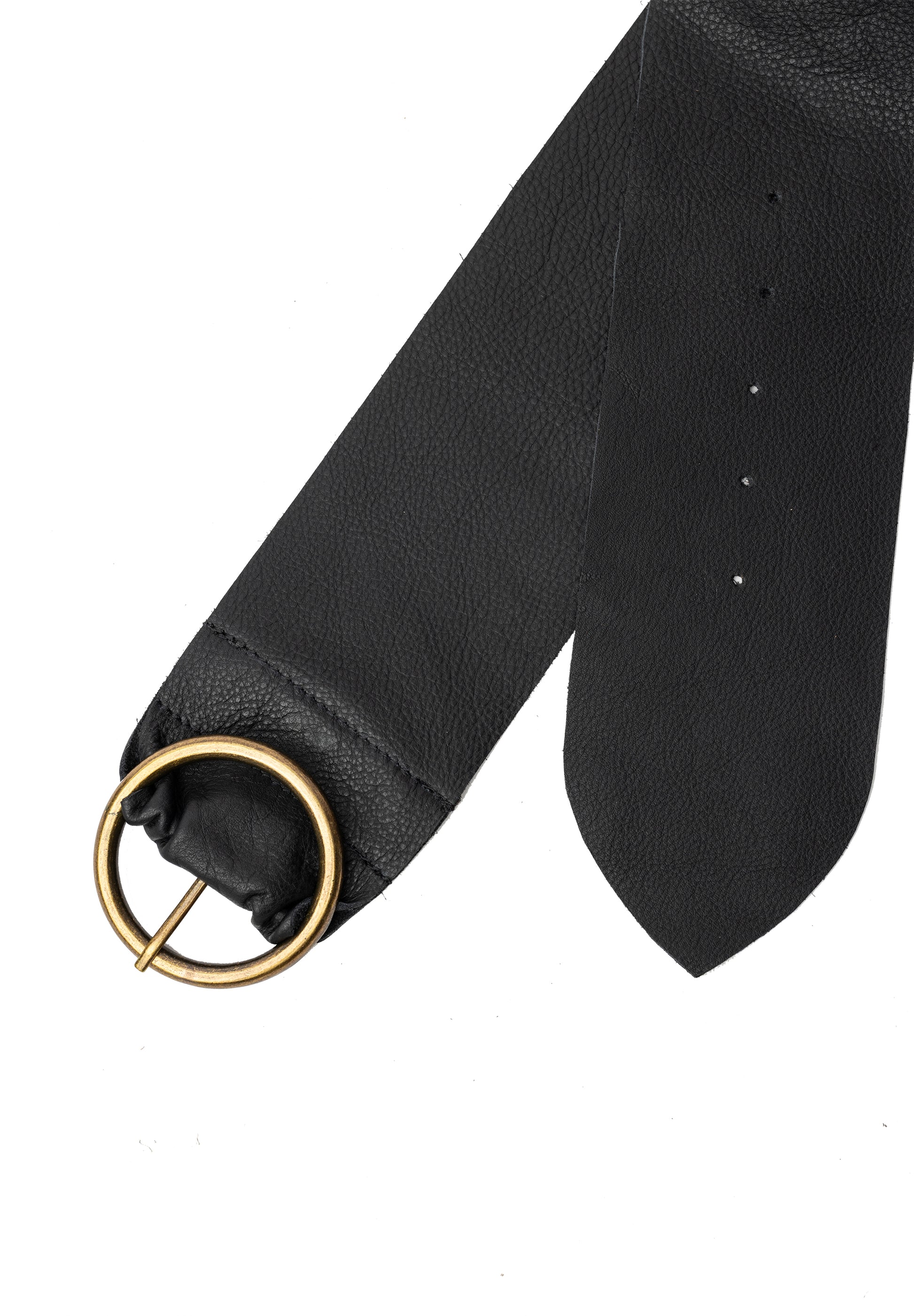 Fallegt og skemmtilegt leðurbelti frá danska merkinu Re:designed Dixie. Það er 8cm breitt og með gylltri/brass sylgju. Þetta er svokallað "statement" belti, fullkomið við kjól eða töff buxur.