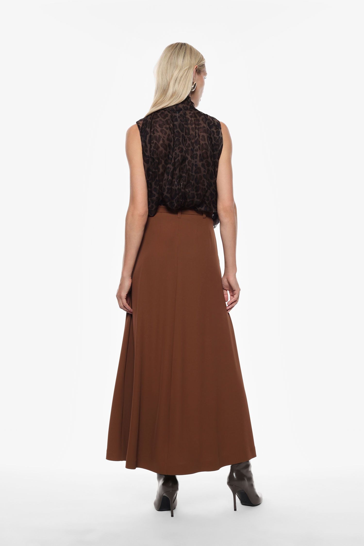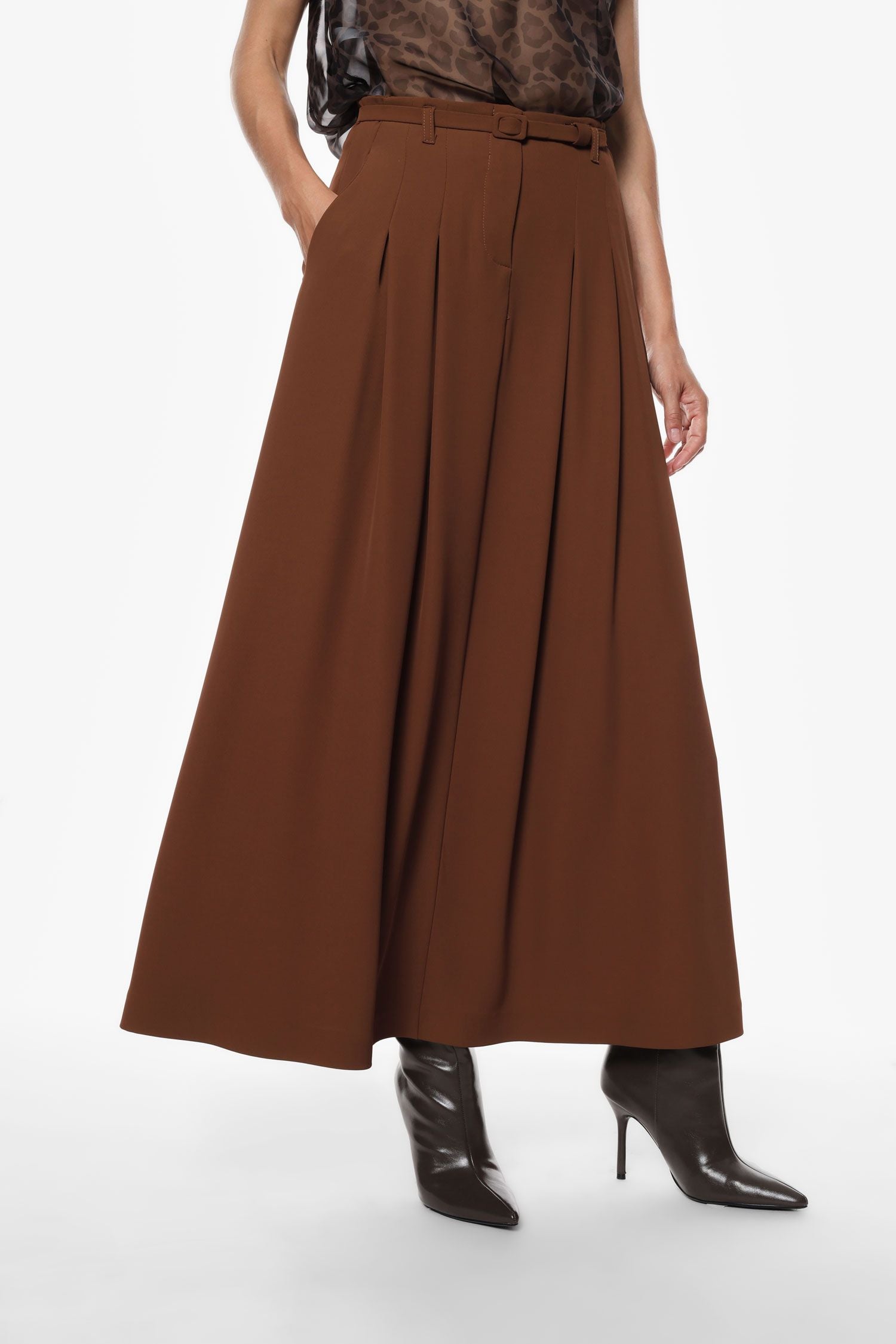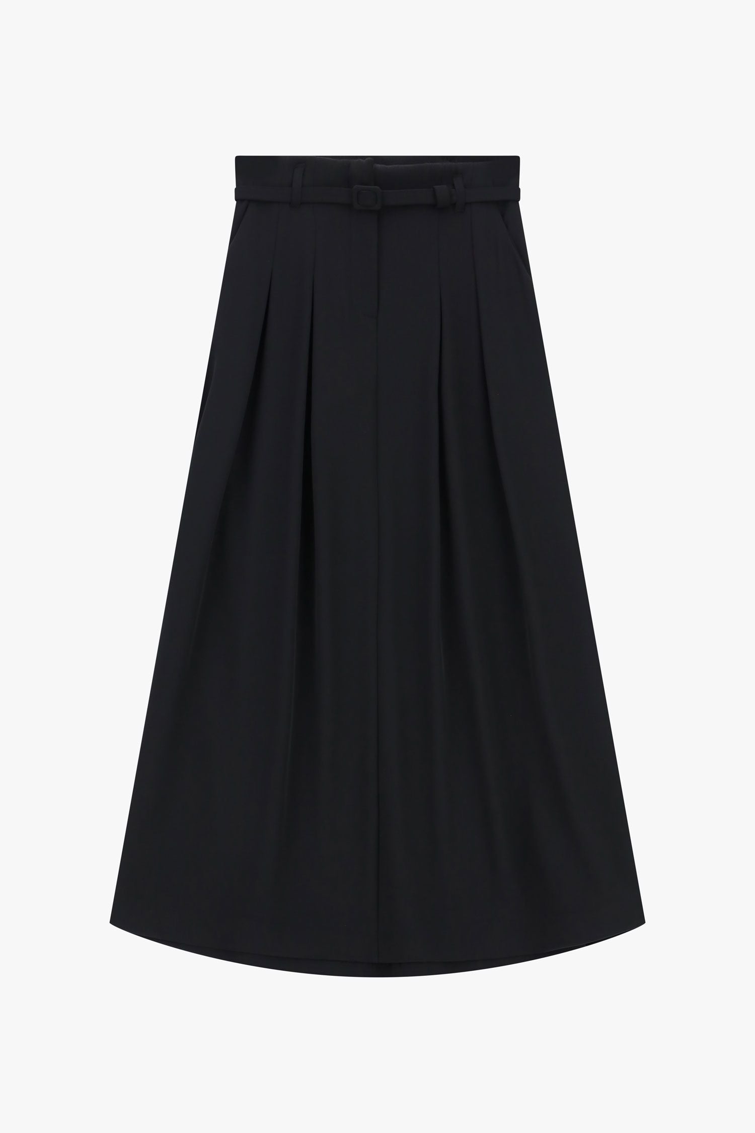 Pilsið kemur með belti og víkkar niður svo mikil vídd og flæði er í pilsinu sem gerir það einstaklega glæsilegt. Falinn rennilás að framan og vasar á hliðum.