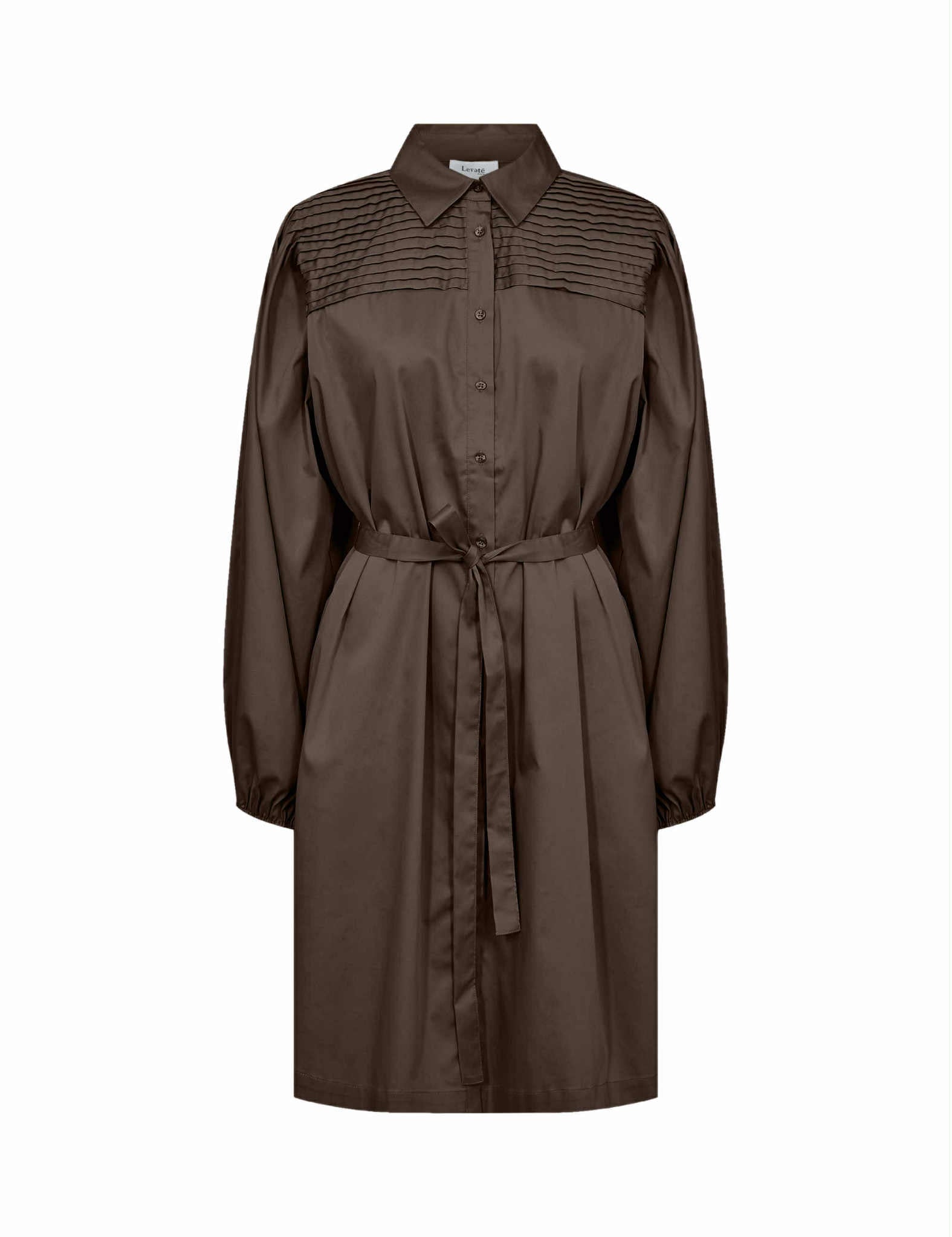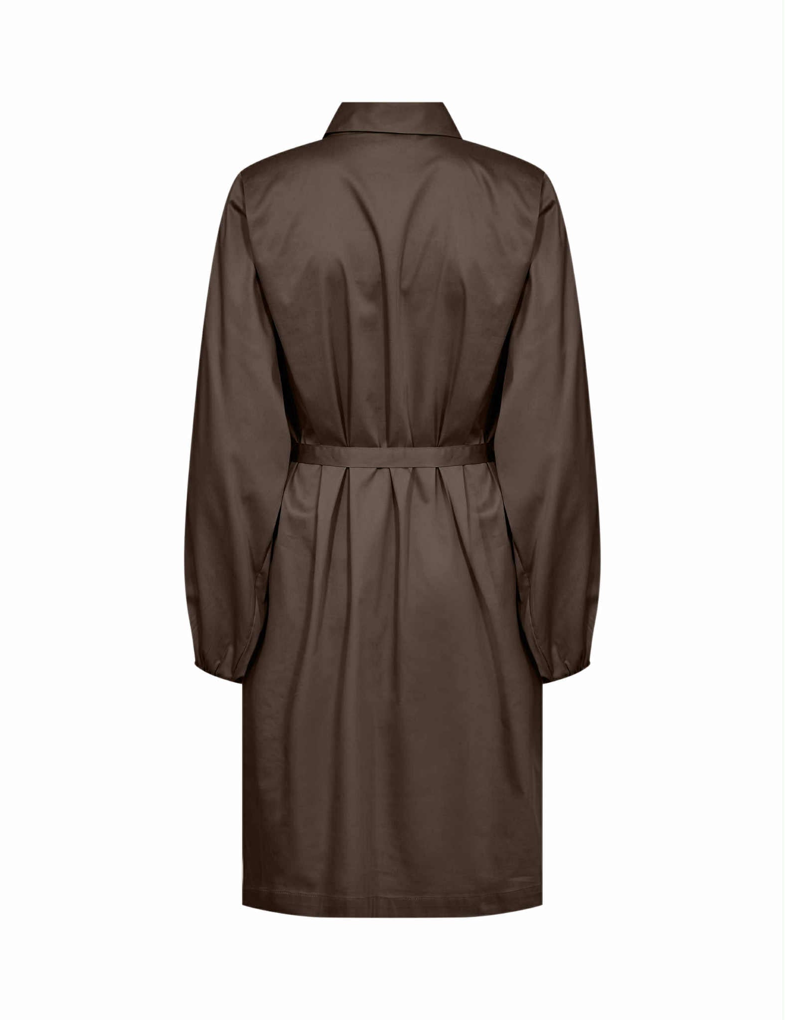Kjóllinn er með skyrtukraga, er hnepptur alla leið og með lausu mittisbandi. Klassískur og hentar fyrir ýmis ólík tilefni.