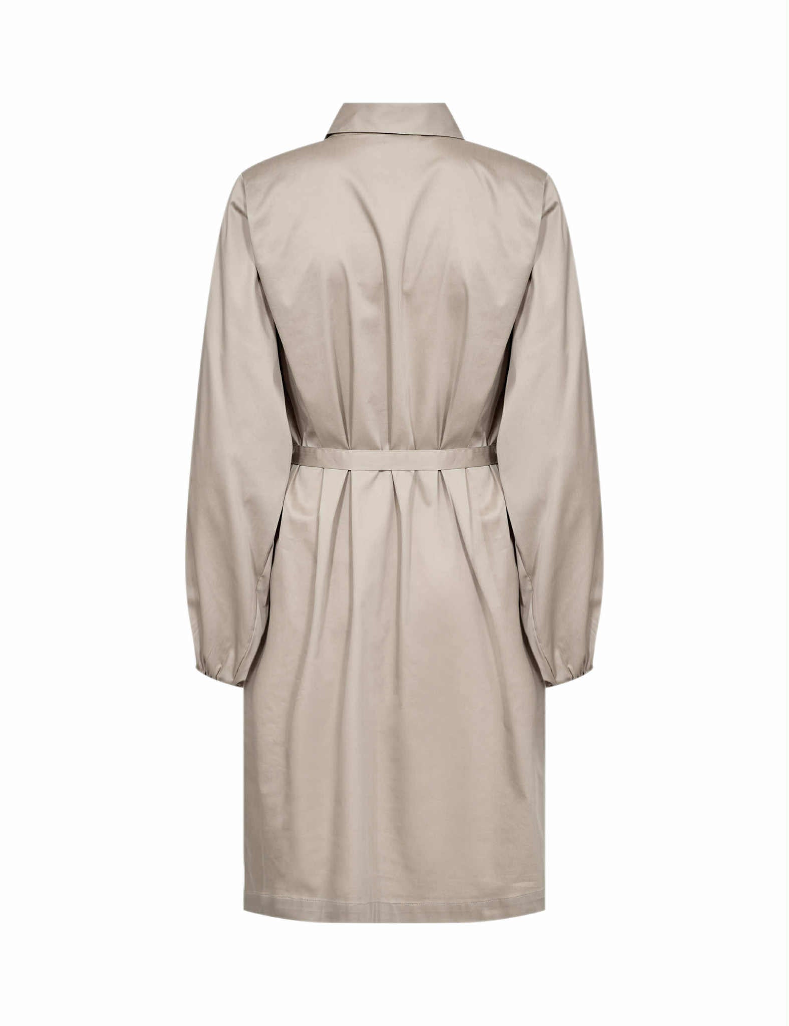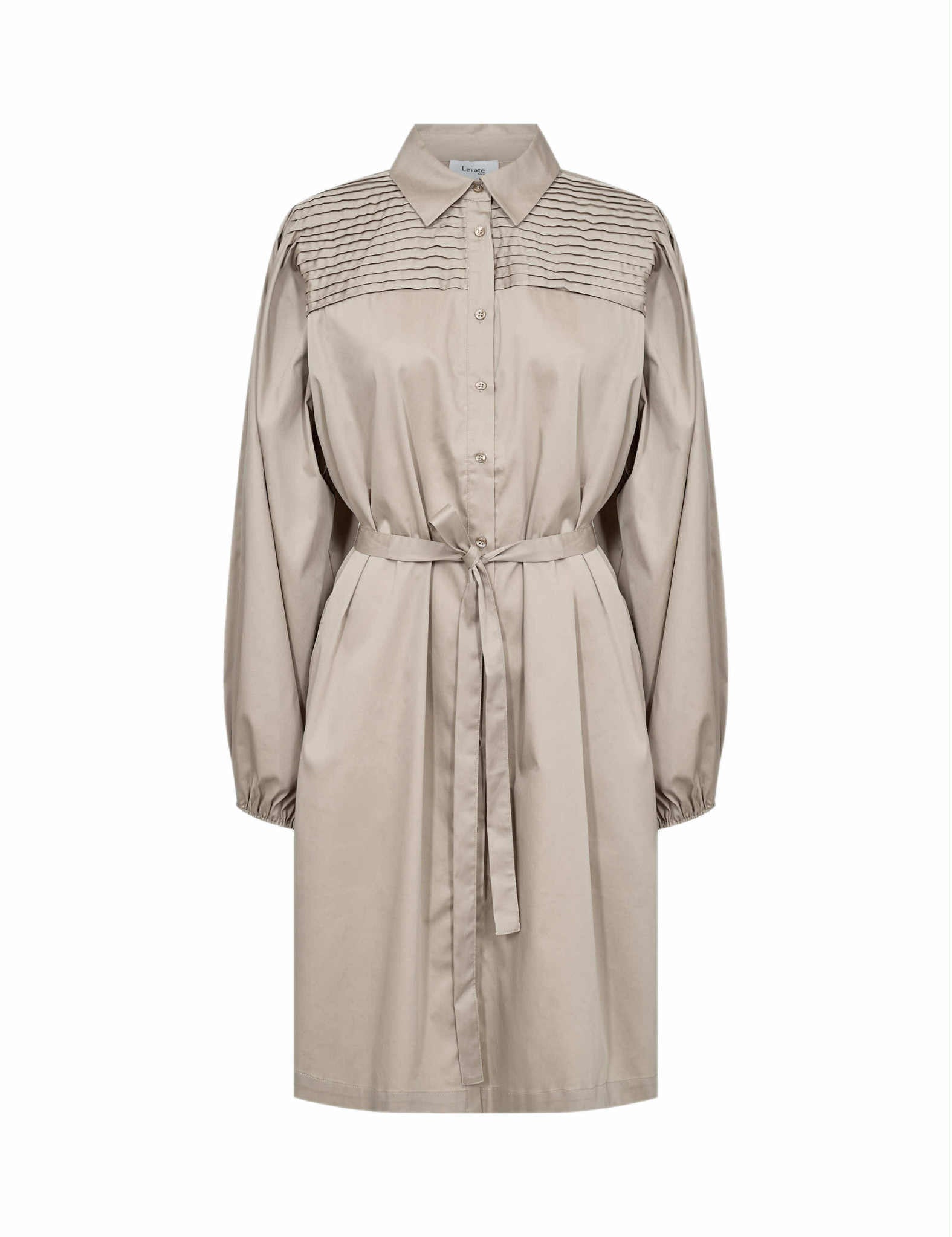 Kjóllinn er með skyrtukraga, er hnepptur alla leið og með lausu mittisbandi. Klassískur og hentar fyrir ýmis ólík tilefni.