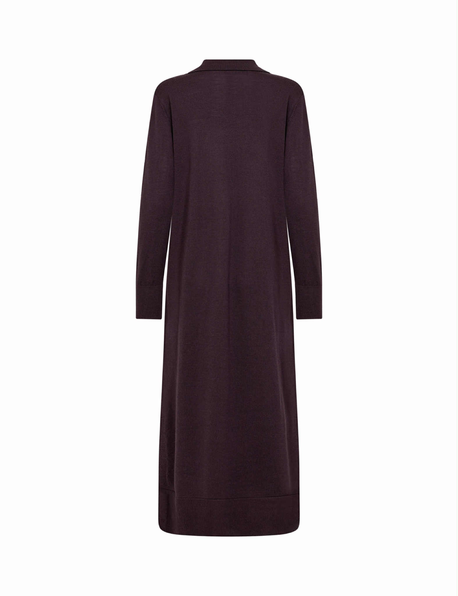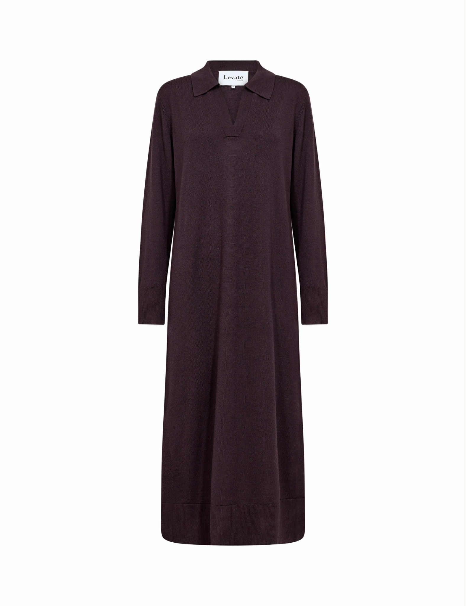 Kjóllinn er með v-hálsmáli, skyrtukraga og er beinn í sniði. Fullkominn fyrir haustið og veturinn.