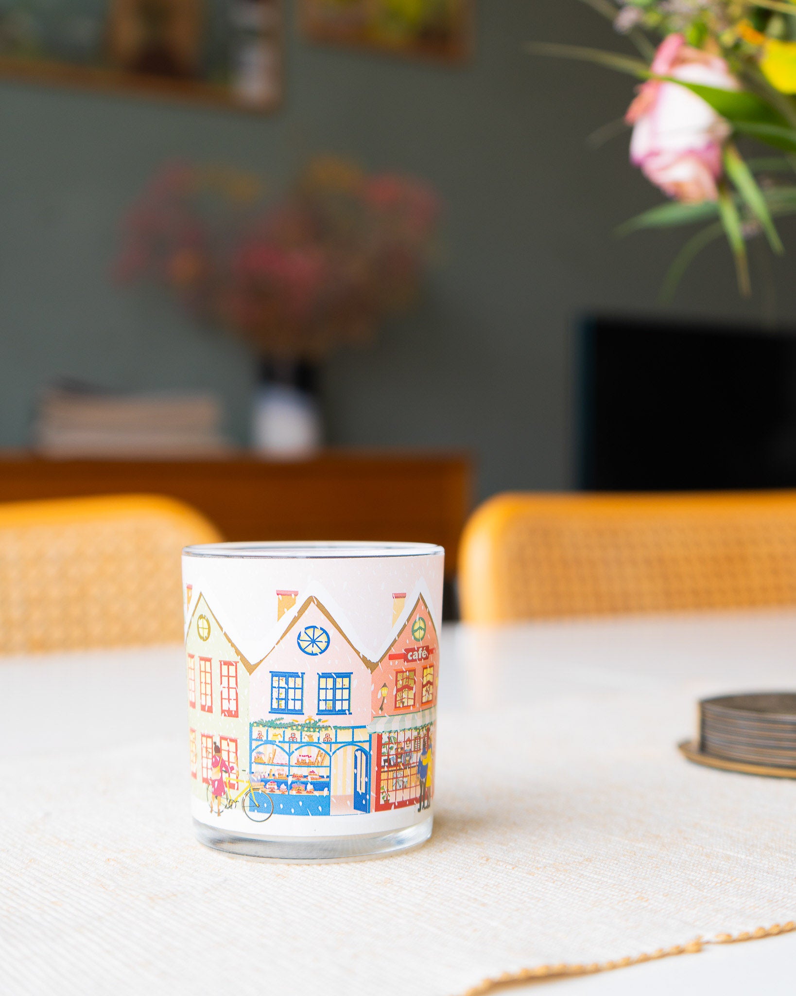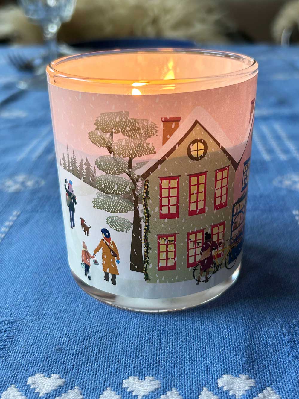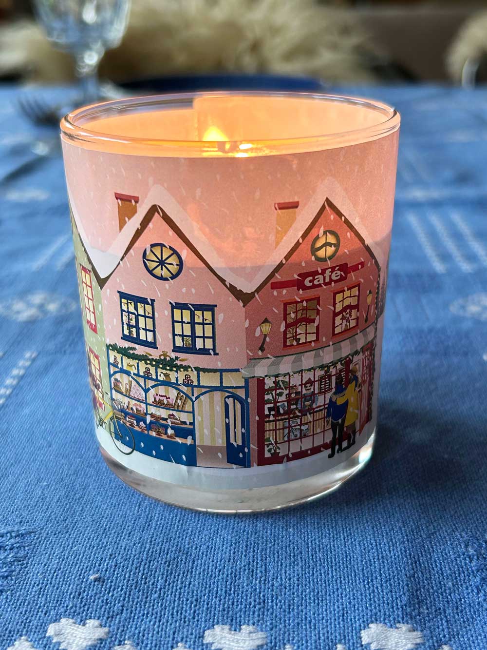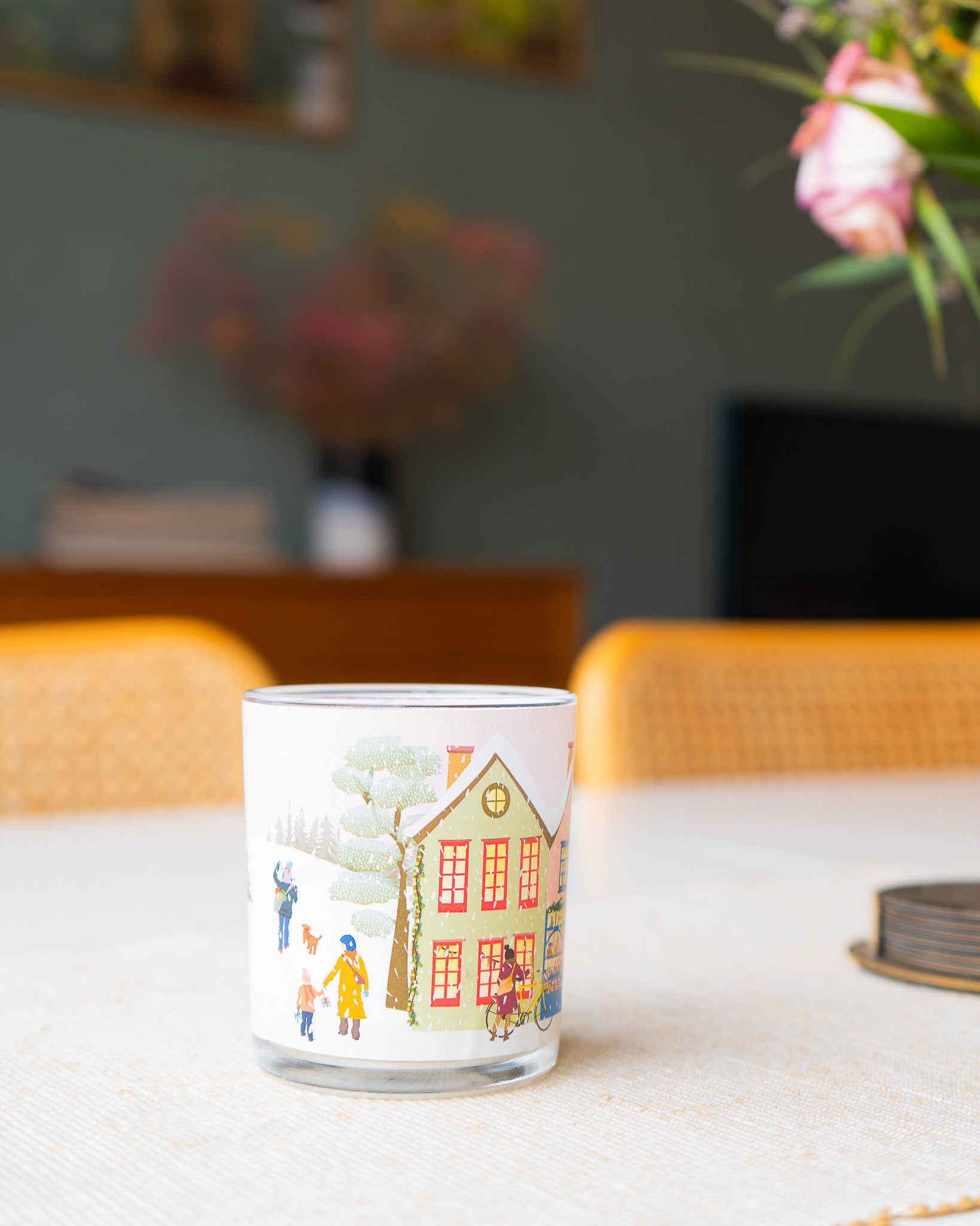 Kertin frá VisseVasse koma í glerglasi með fallegri jólalegri hönnun.