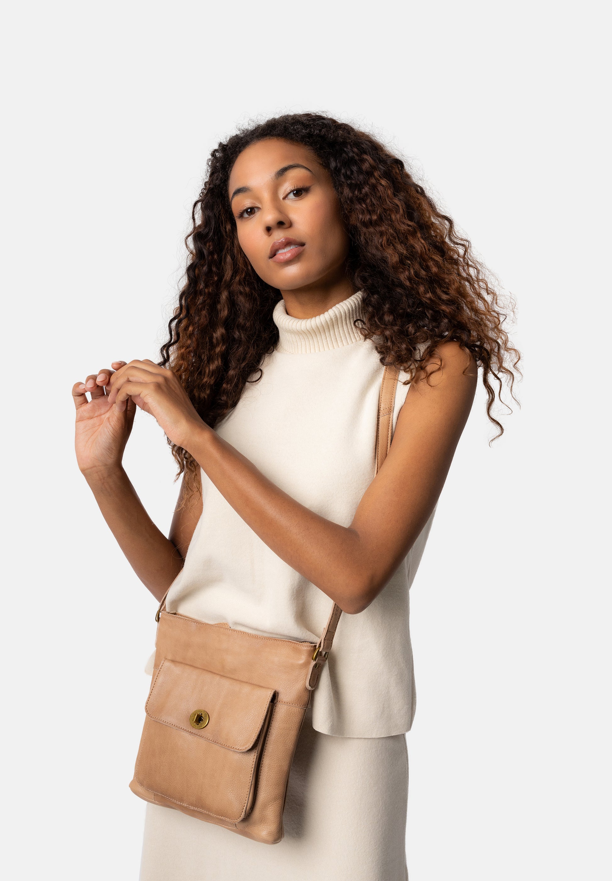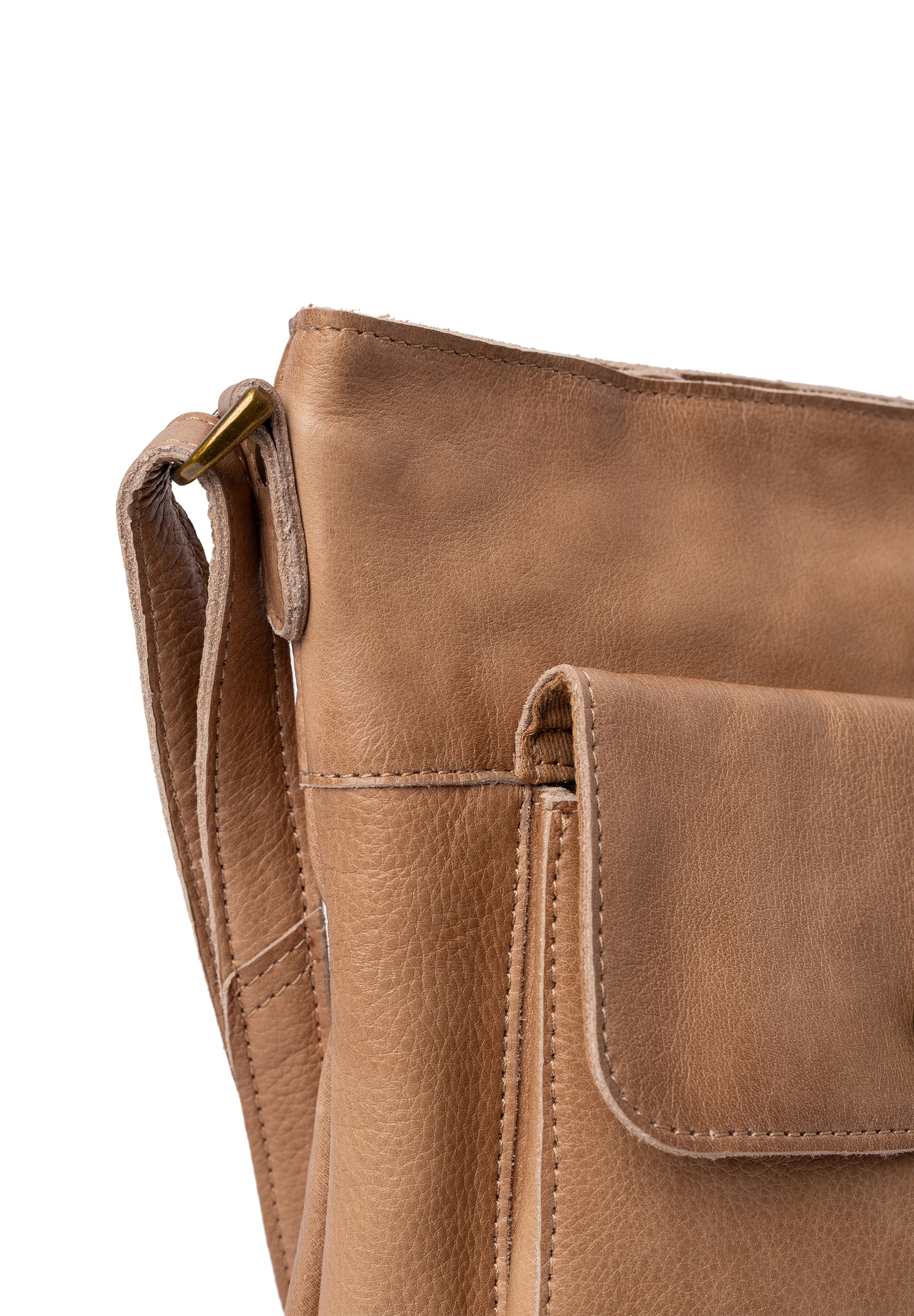 Rennd að ofan, 3 vasar inní, þar af einn renndur. Hólf með smellu að framan. Stillanleg axlaról. Þykkt, sterkt og fallegt leður