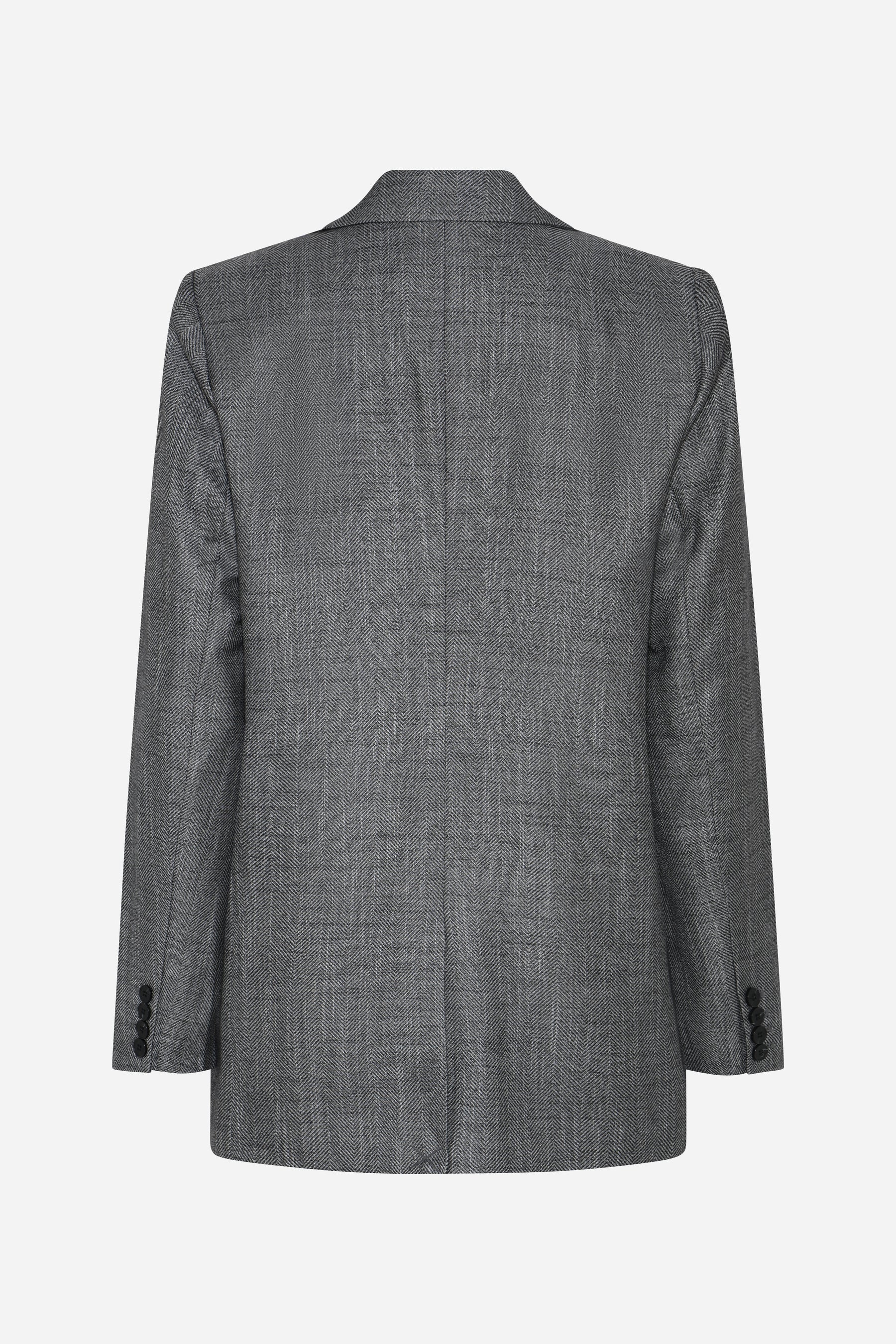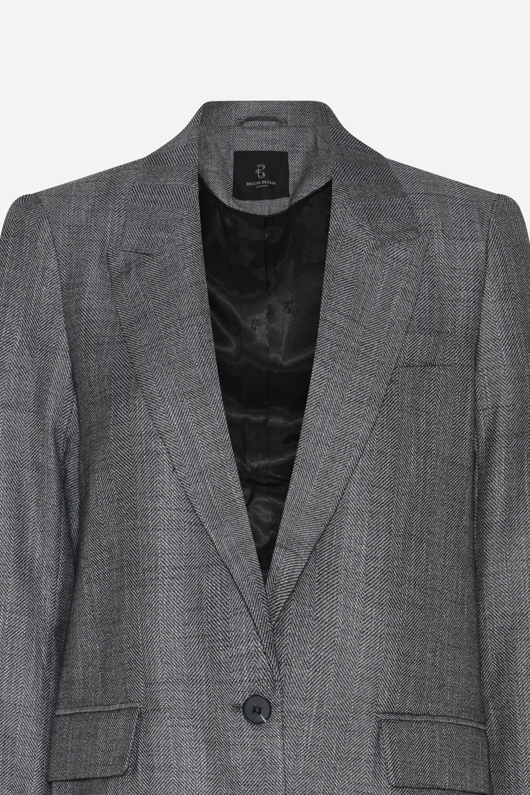 Æðislegur og klassískur blazer frá danska merkinu Bruuns Bazaar. Hann er beinn í sniði, nær niður að rassi og úr fallegu efni.