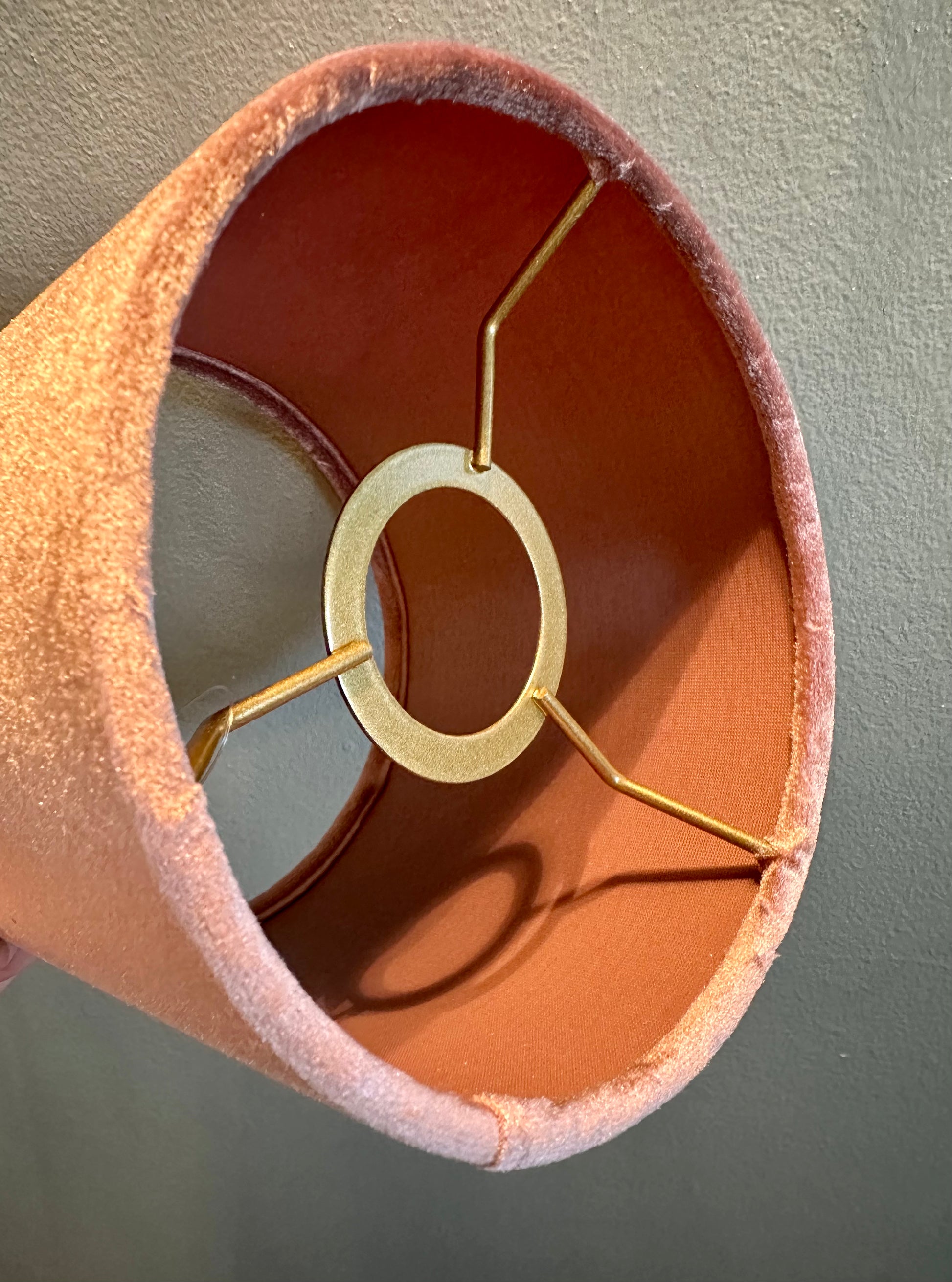 Fallegur bleikur lampaskermur úr Bentley línunni hjá Dutch Style úr sérvöldu velvet efni frá Frakklandi. Lampaskermar og lampastandar eru seldir sér, svo hægt er að púsla þeim saman á mismunandi hátt og gera að þínum. Allir skermarnir frá Dutch Style eru handunnir. Þessi skermur er gylltur að innan og gefur hann fallega og hlýja birtu frá sér. Festist ofan á perustæðið