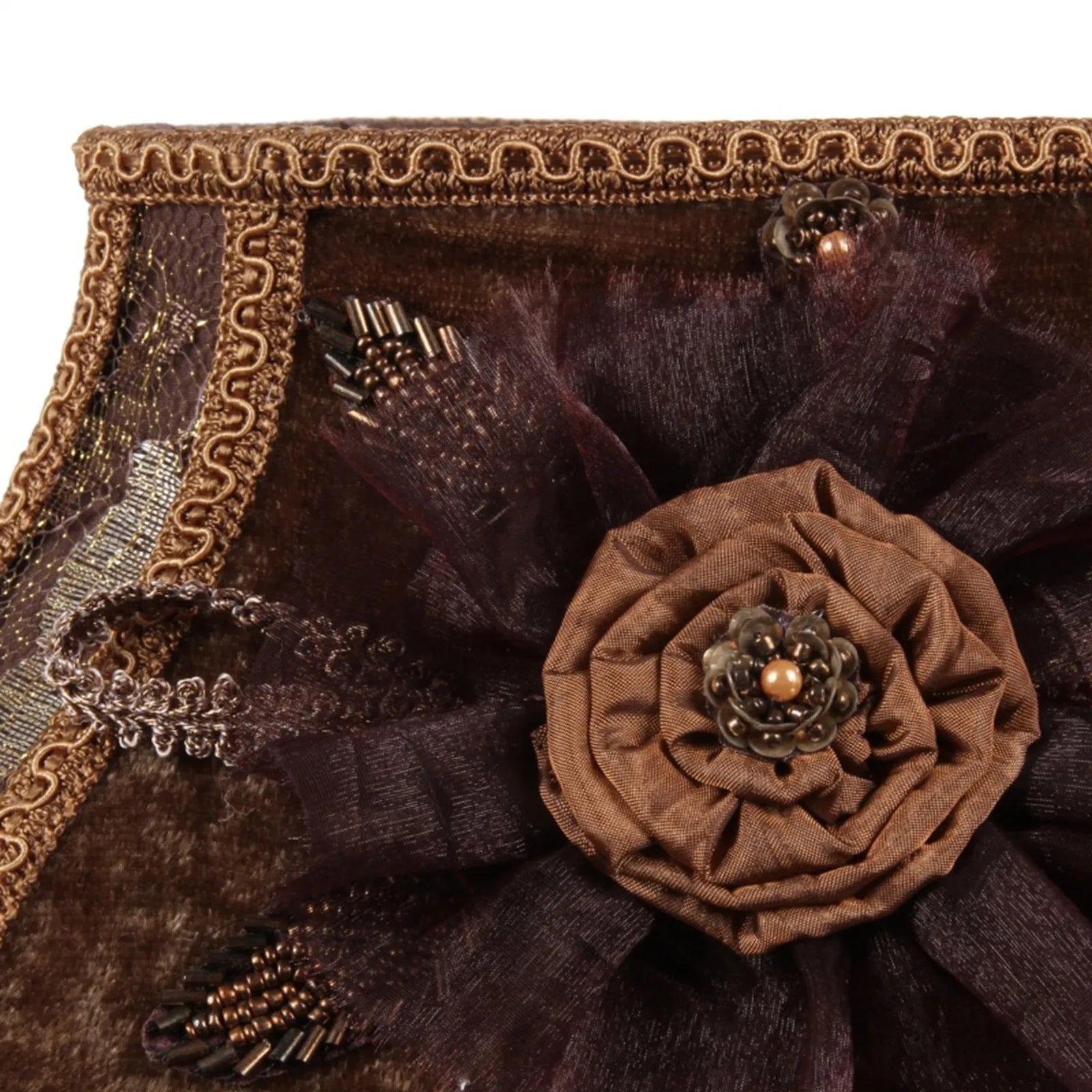 Rómantískur og fallegur lampaskermur með perlum og blúndu og blómum úr Baroque línunni frá hollenska Dutch Style. Þessi skermur festist á perustæðið.