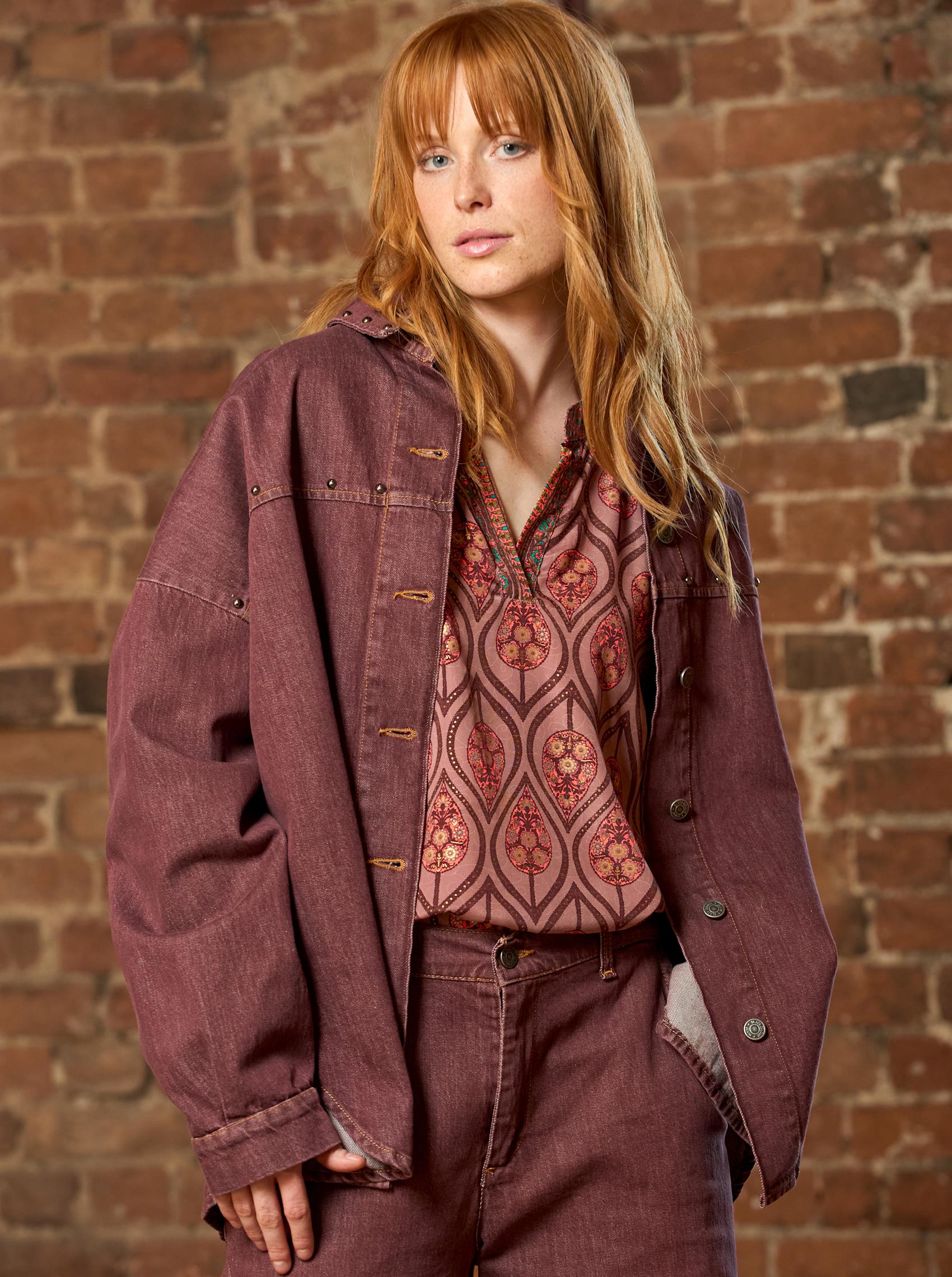 Æðisleg satín blússa frá danska merkinu Black Colour. Hún er með v-hálsmáli, laus í sniði og teygju á ermum.