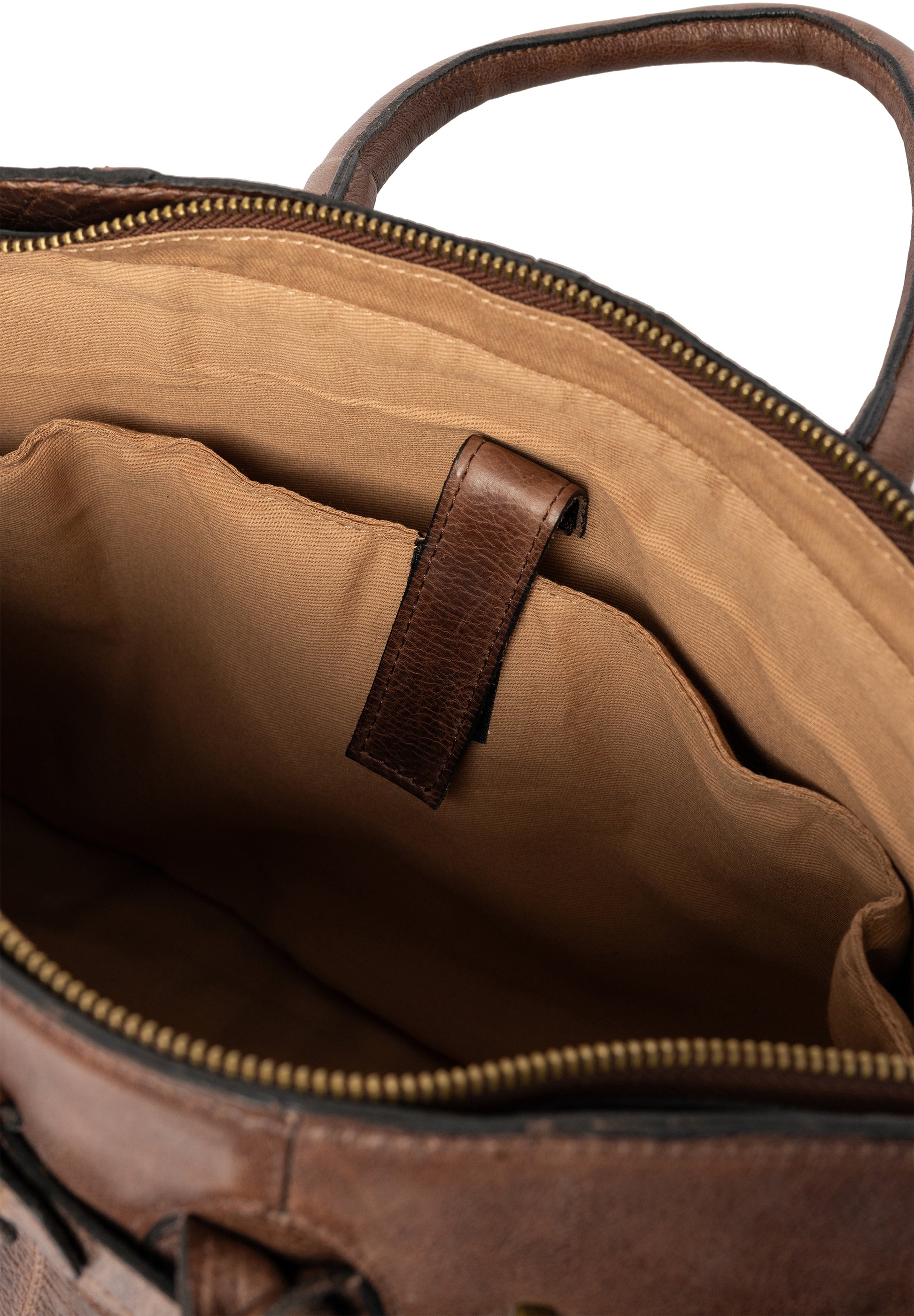 Rúmgóð vinnu/skólataska með sér plássi fyrir fartölvu og renndum vasa innan í töskunni. Taskan lokast með rennilás og fylgir löng, stillanleg axlaról með.