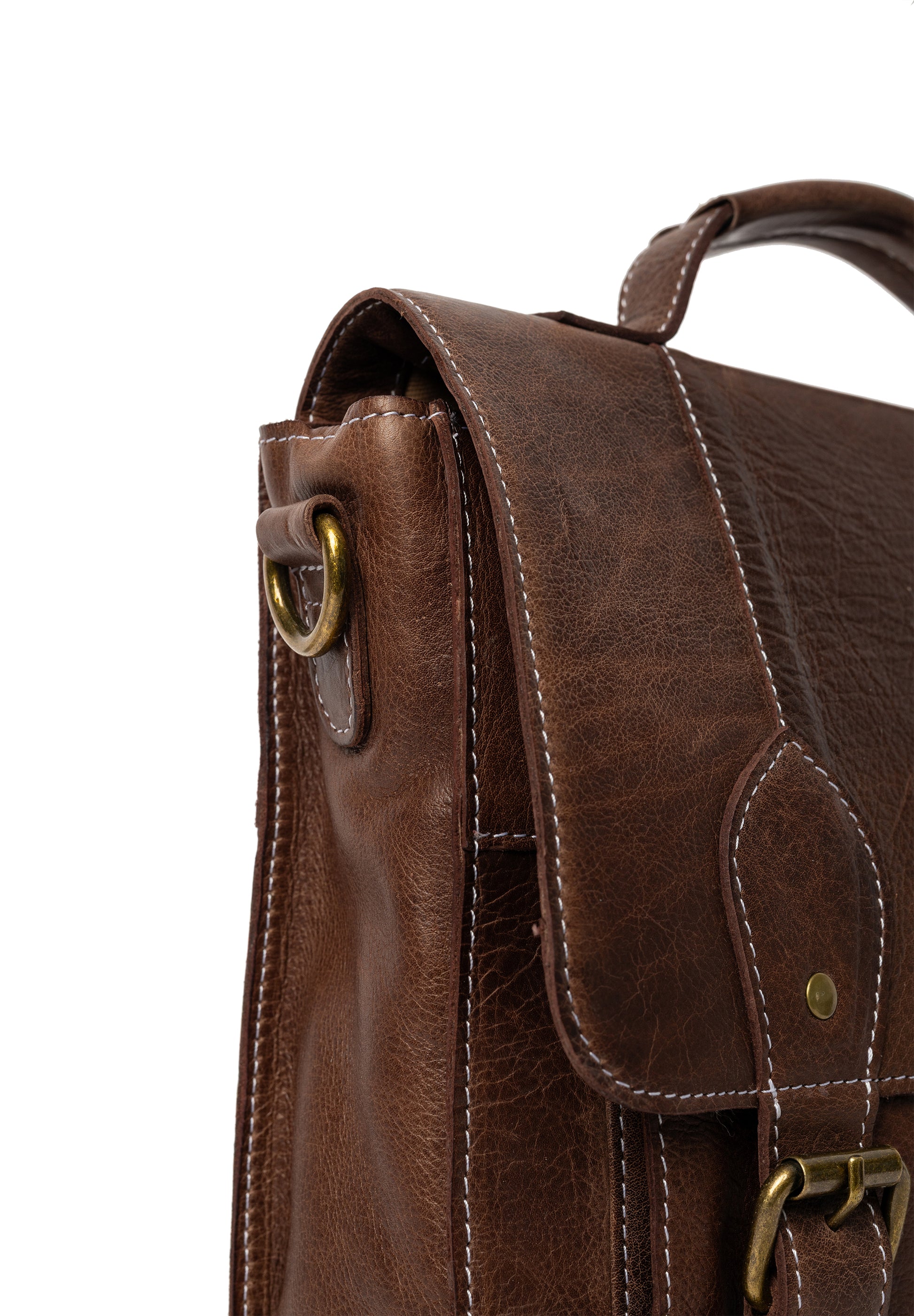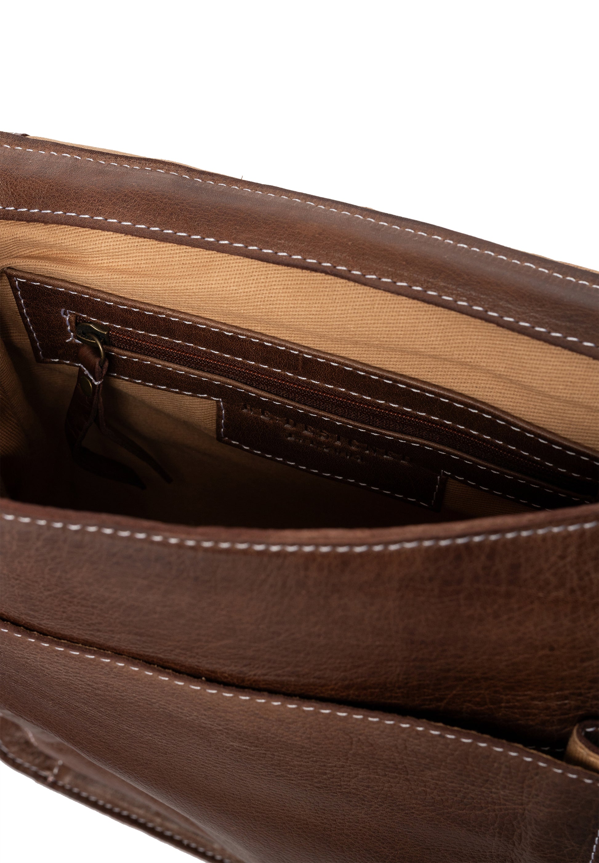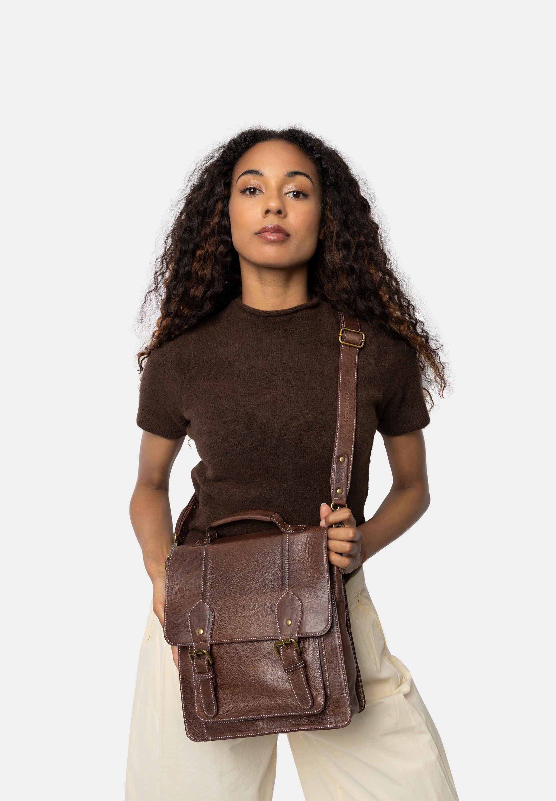 Rúmgóð millistærð af tösku sem tekur allt það helsta. Klassískt og fallegt útlit er á töskunni sem minnir á gömlu skólatöskurnar. Stórt hólf inní og lítill renndur vasi einnig. Opinn vasi að framan. Töskunni er lokað með tveimur smellum. Löng, stillanleg axlaról er á töskunni.
