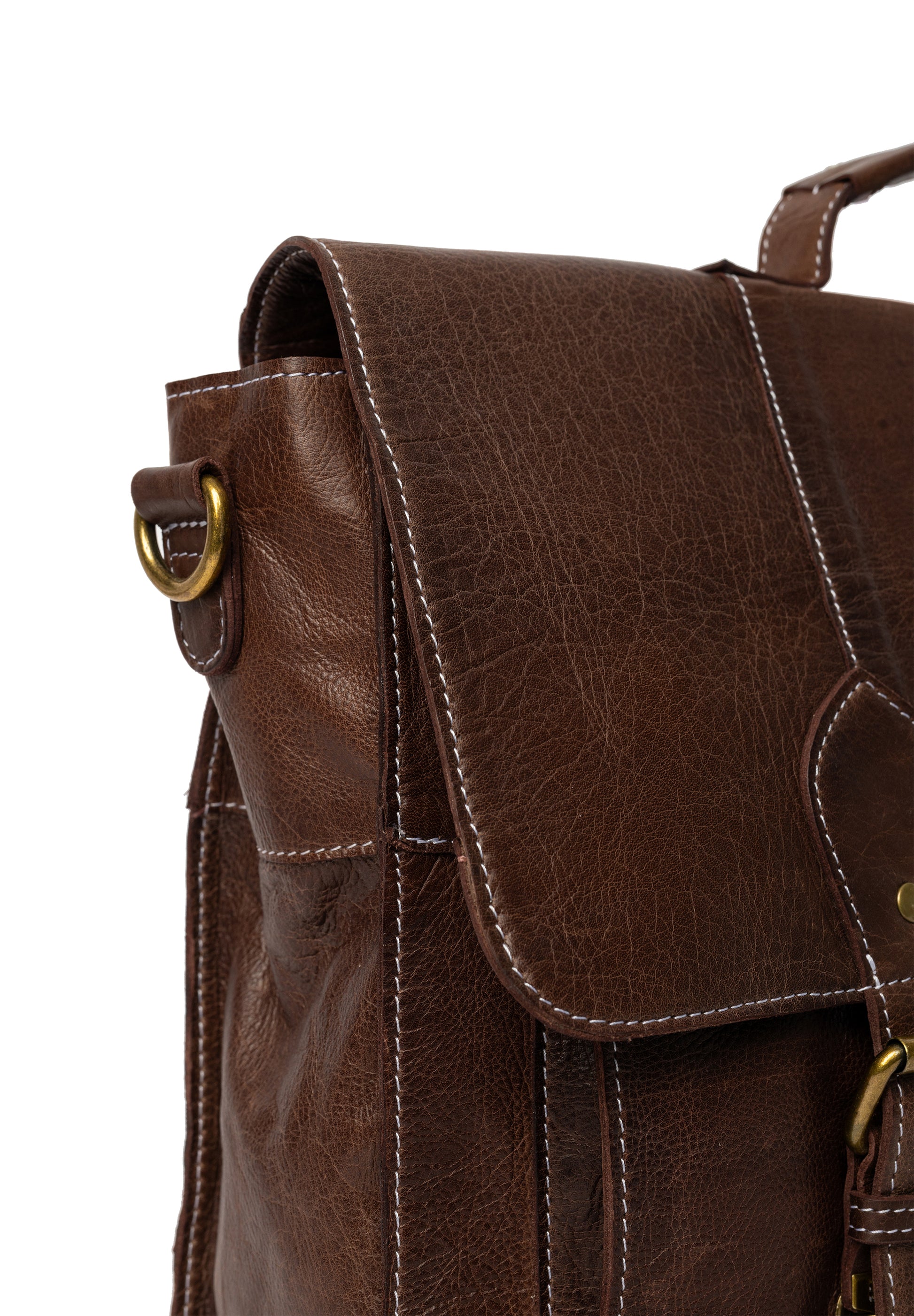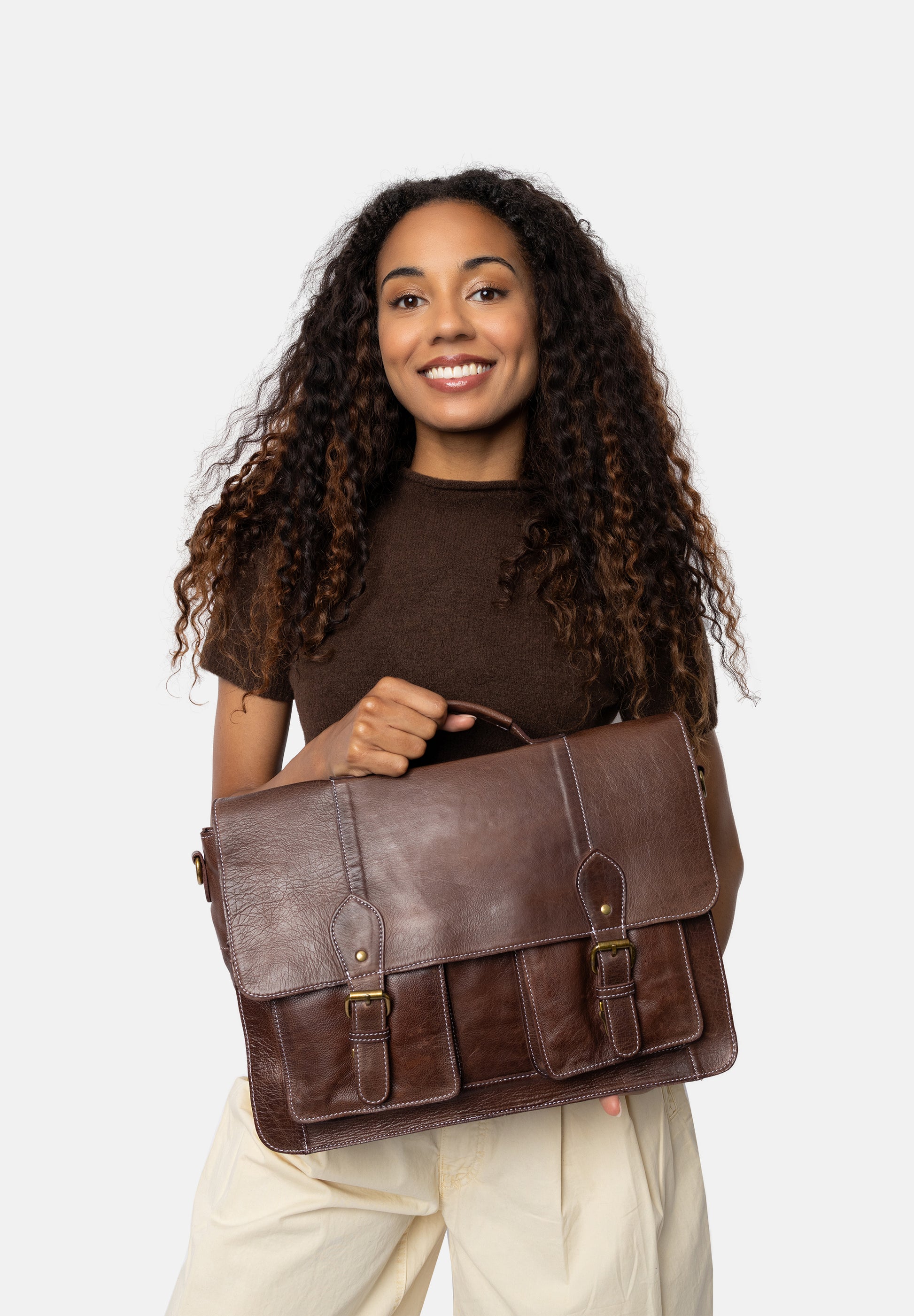 Rúmgóð vinnu/skólataska með sér plássi fyrir fartölvu og renndum vasa innan í töskunni. Tveir litlir vasar eru framan á töskunni og er henni lokað með tveimur klemmum að framan. Löng, stillanleg axlaról er á töskunni