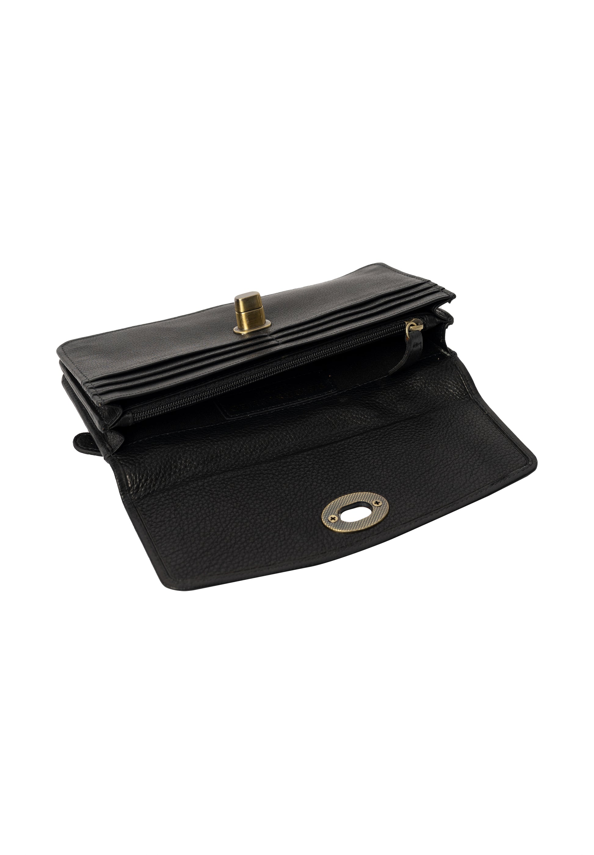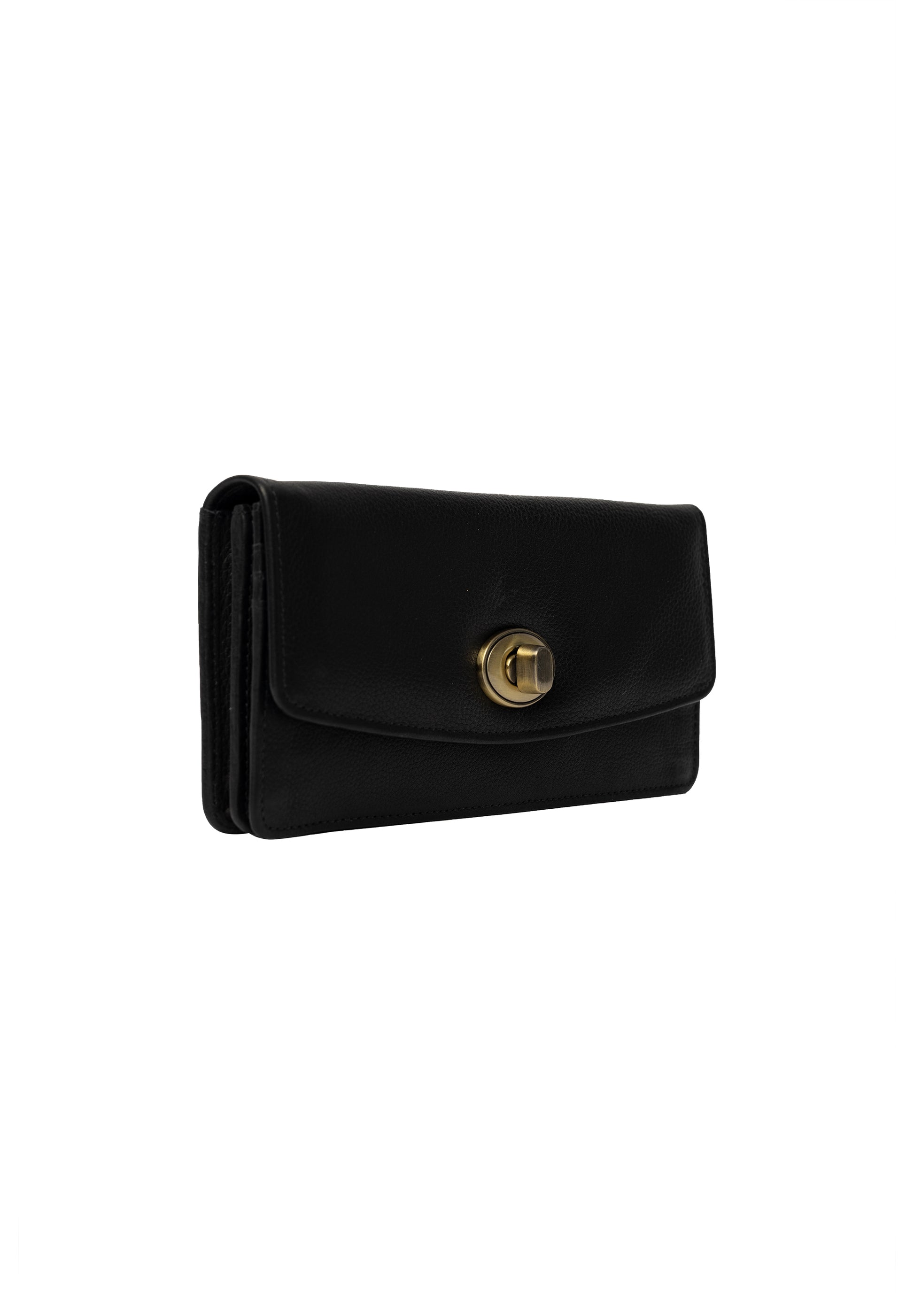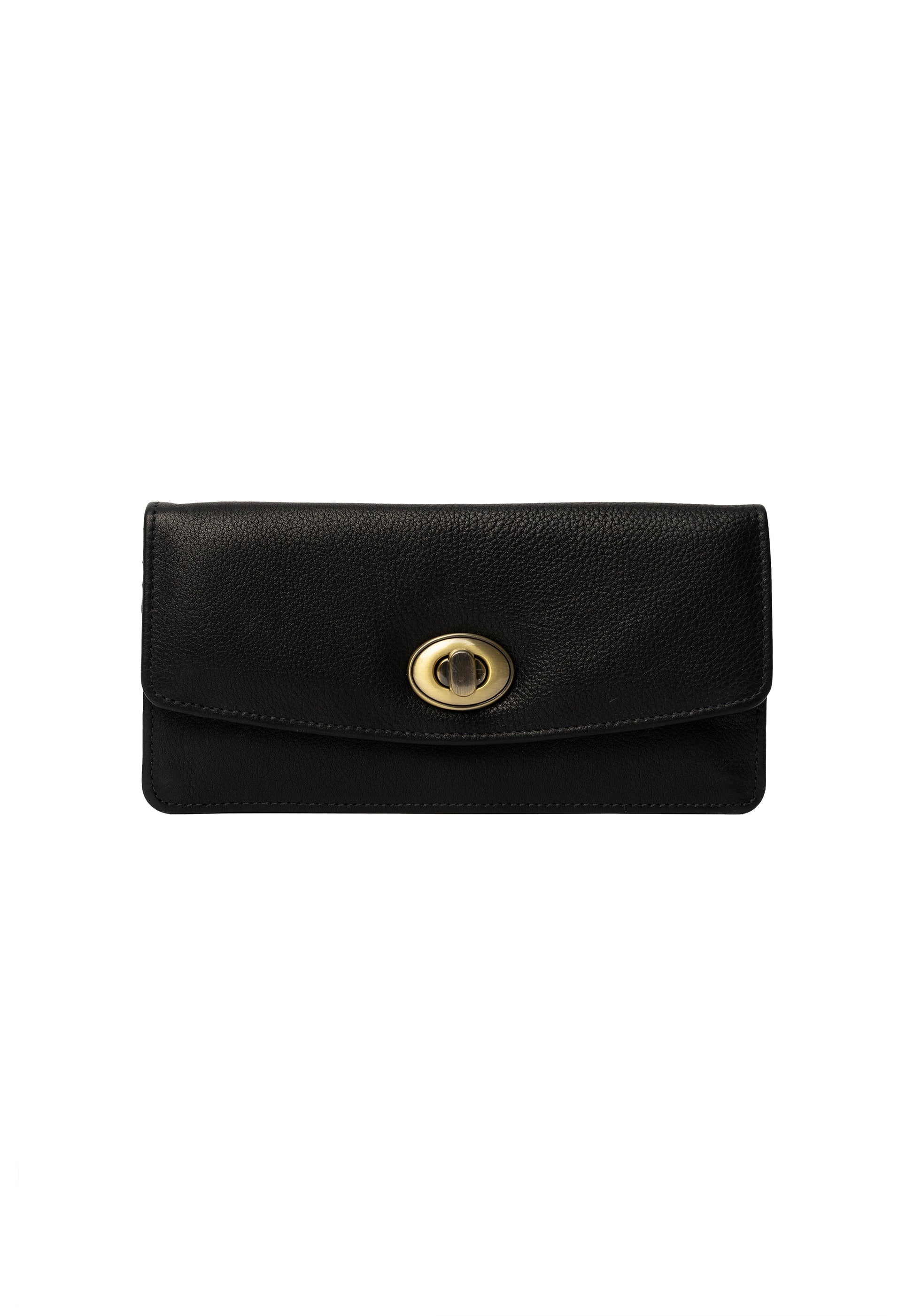 Klassískt leður seðlaveski frá danska merkinu RE:Designed by Dixie. Veskið skiptist í 3 hólf og þar af eitt rennt. 6 kortahólf eru einnig í veskinu og það lokast með snúningshnapp að framan Aftan á veskinu er einnig renndur vasi.