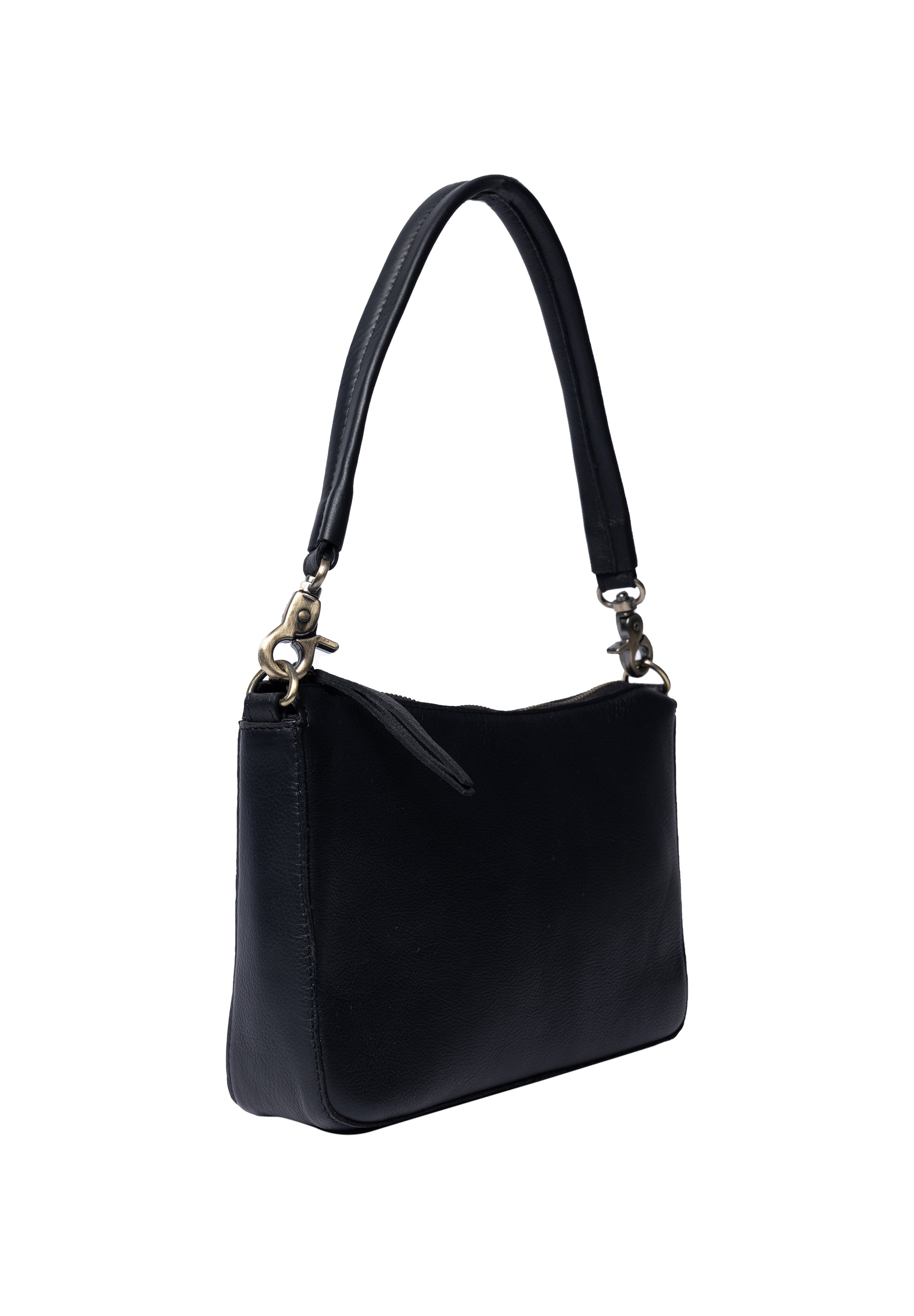 Einföld en falleg taska sem geymir allt það helsta og nýtist hversdags eða meira spari. Eitt rúmgott aðalhólf en svo er lítill renndur vasi inní töskunni. Taskan lokast að ofan með rennilás. Tvær ólar fylgja með; stutt axlaról en einnig löng stillanleg axlaról. Þessi taska kemur einnig í walnut brúnu