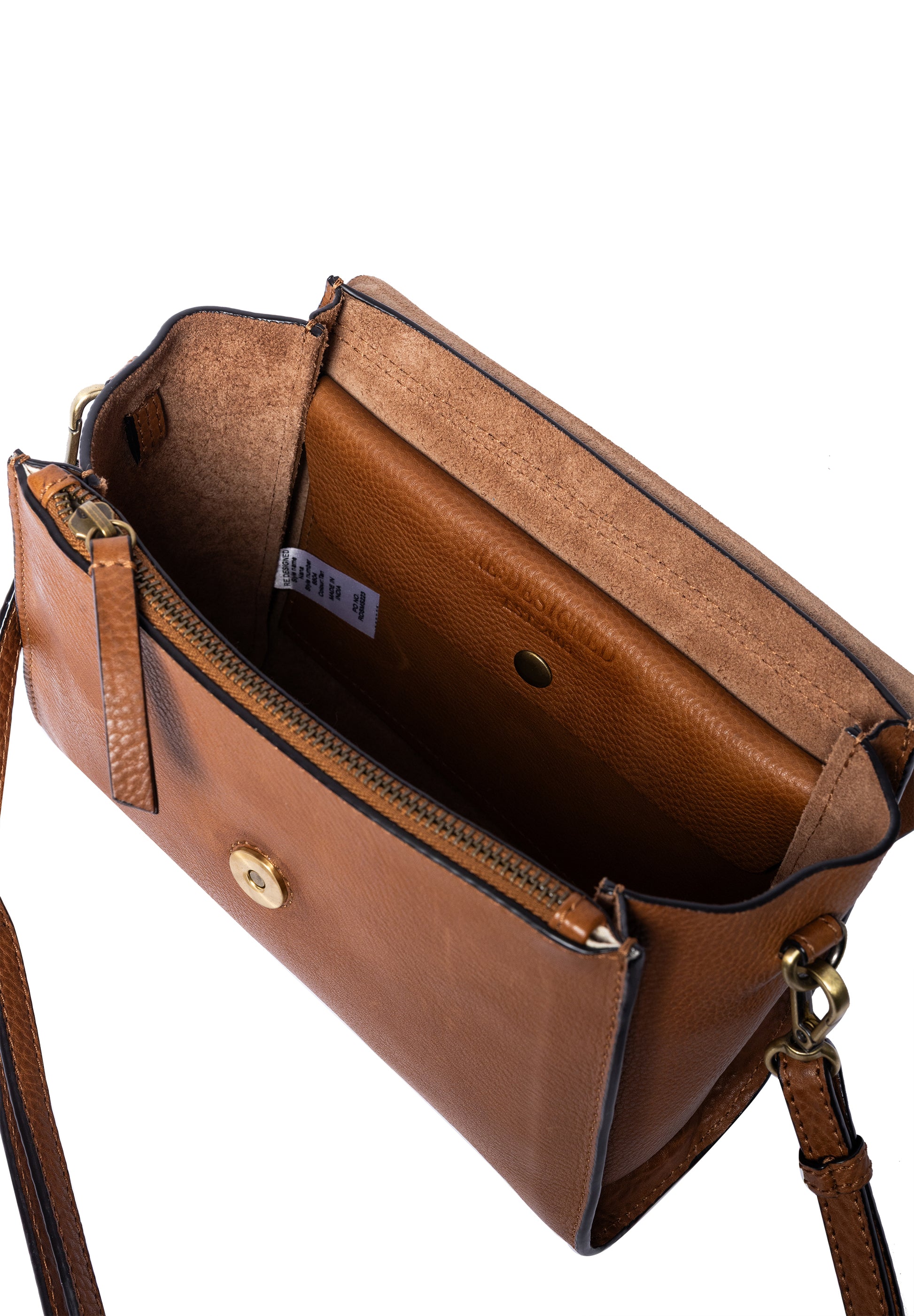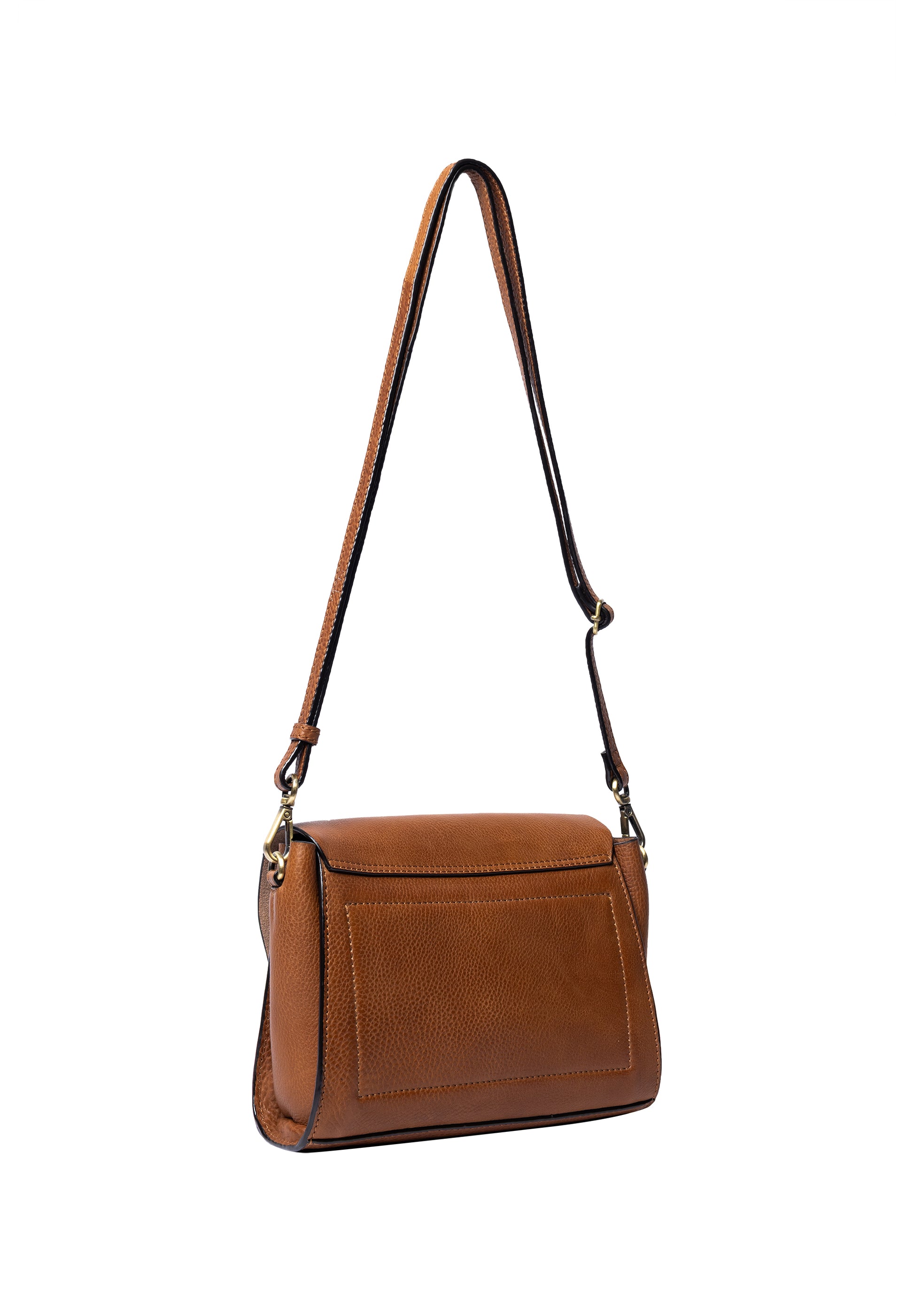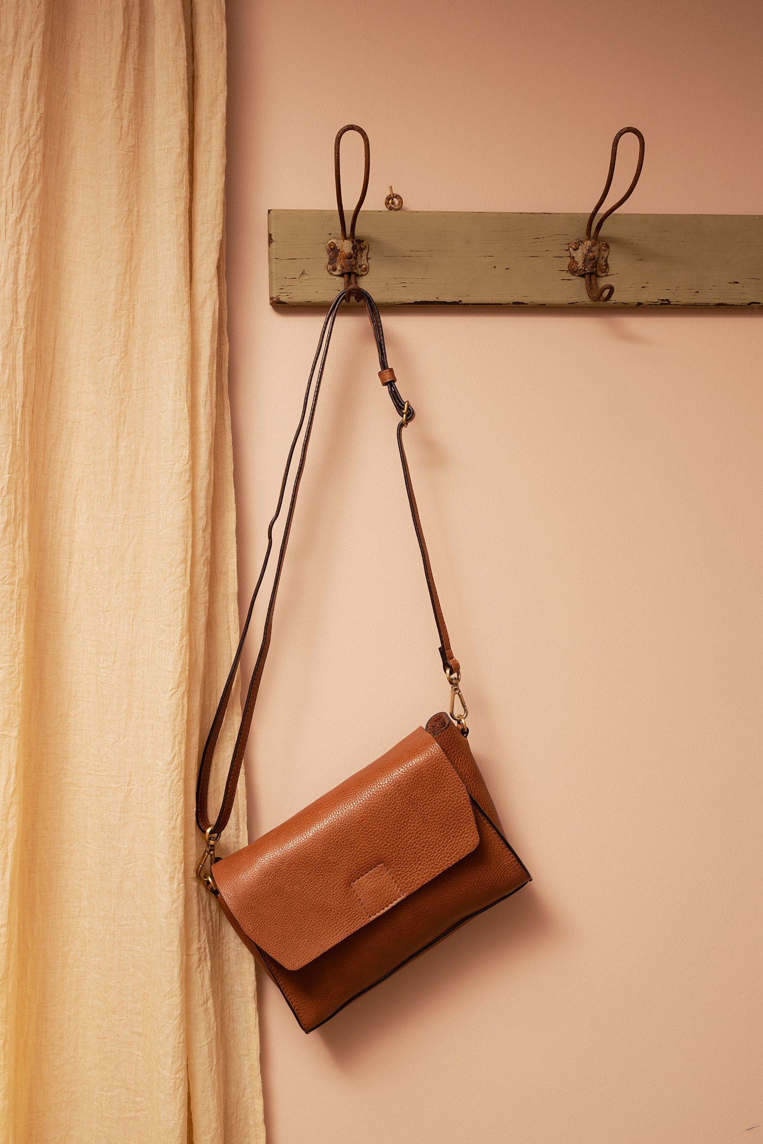 Létt og lipur leðurtaska með langri, stillanlegri axlaról. Eitt stórt hólf en svo er lítill vasi inní töskunni sem lokast með smellu og einn auka renndur vasi. Taskan lokast að framan með smellu. Kemur einnig í svörtu