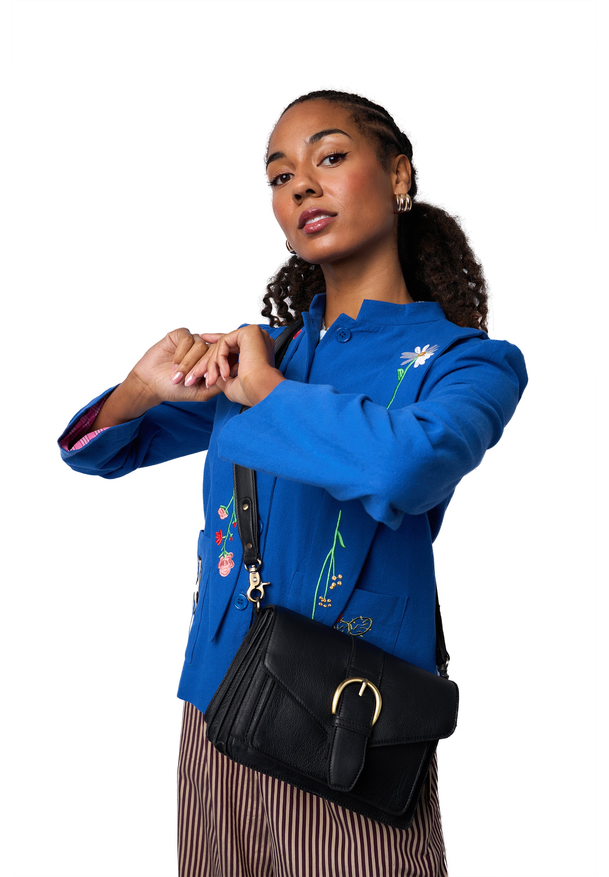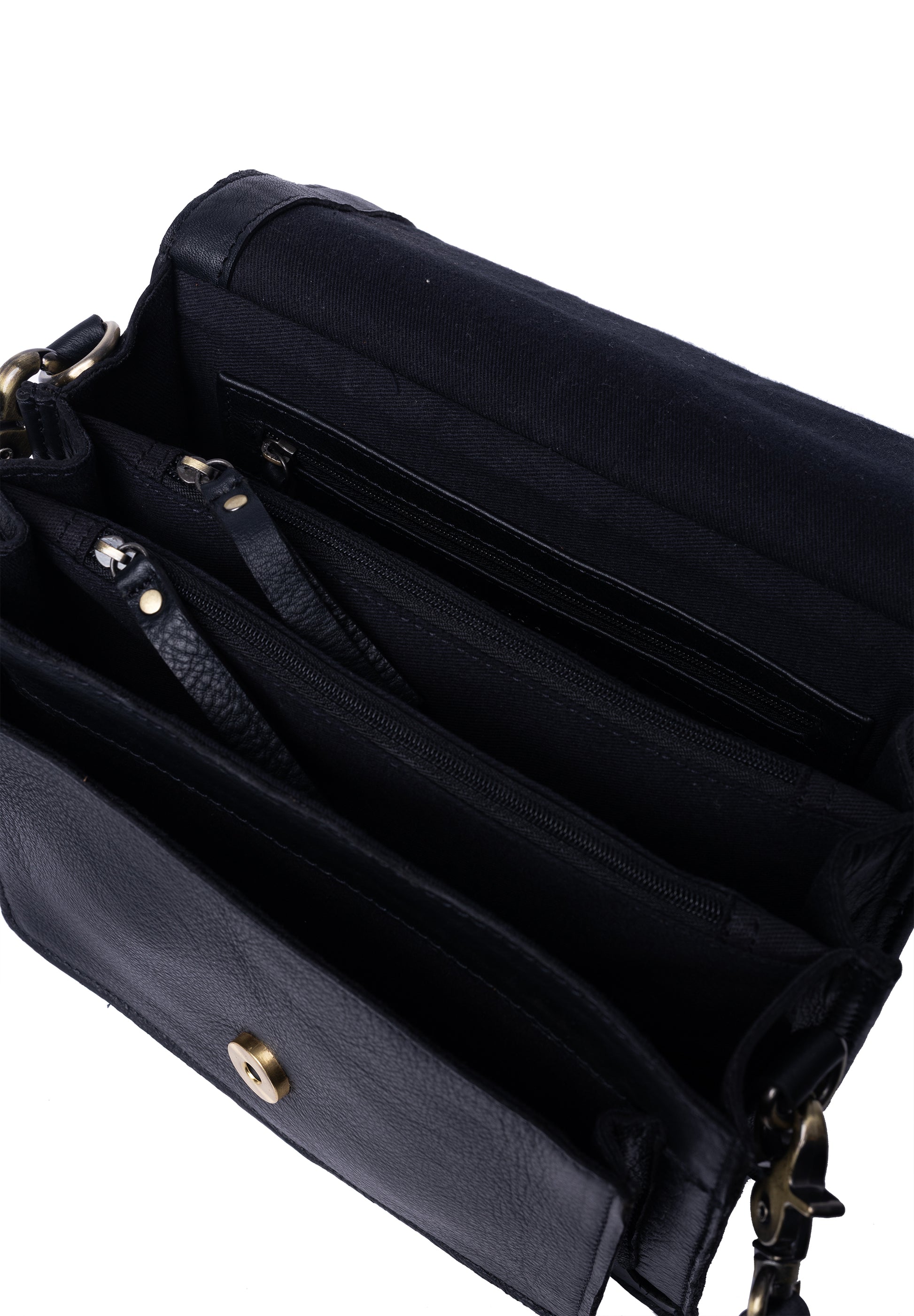 Þessi er með fullt af hólfum svo hægt er að hafa gott skipulag! 3 hólf og 3 renndir vasar eru í töskunni. Hún lokast með smellu og svo er löng stillanleg axlaról sem fylgir. Þessi taska kemur einnig í svörtu