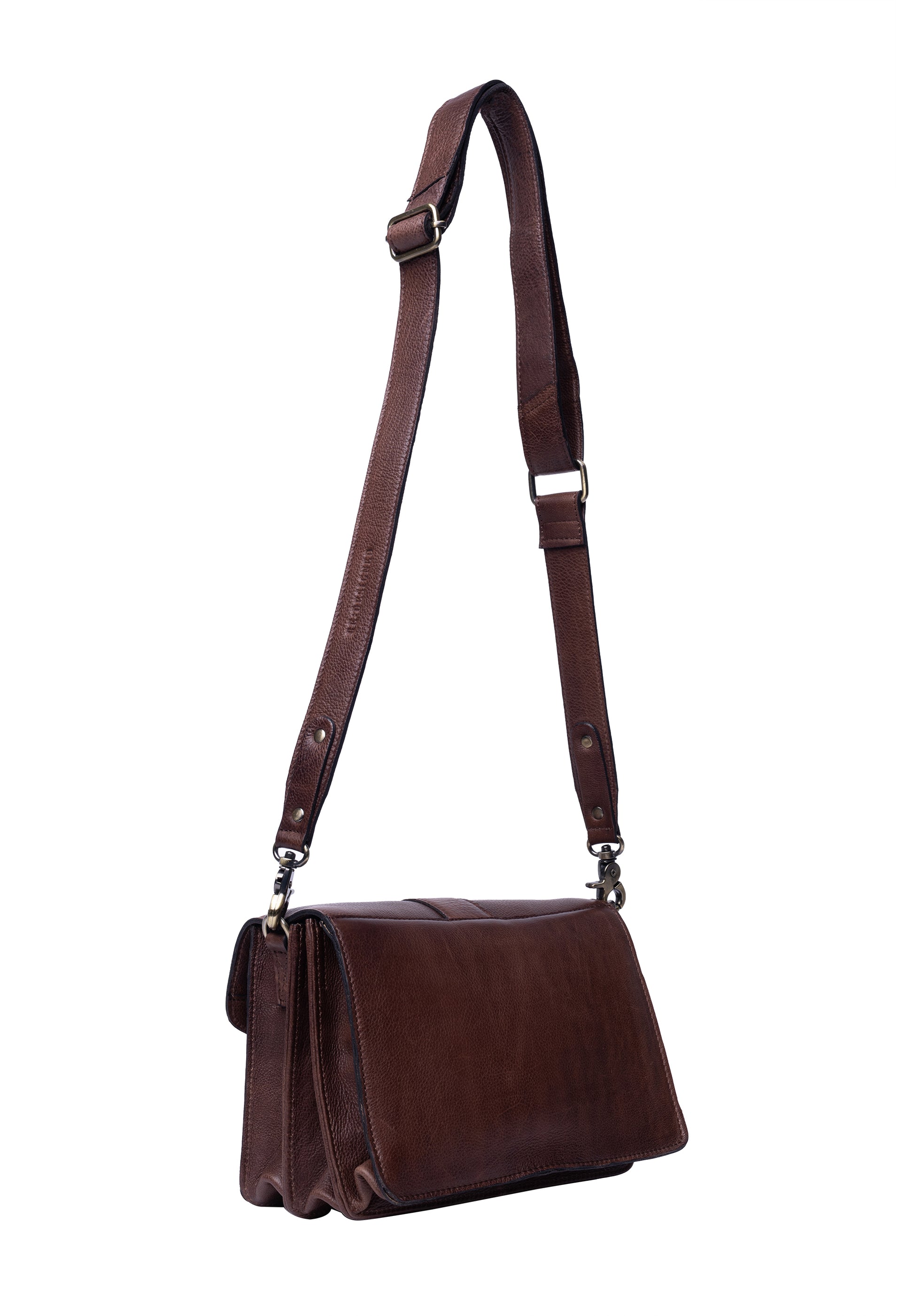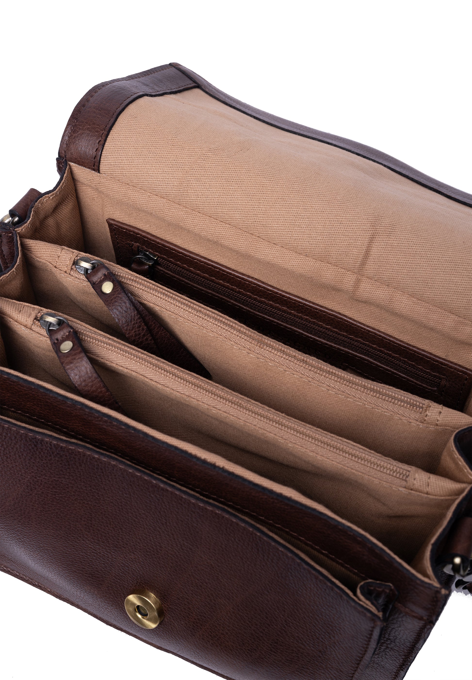 Þessi er með fullt af hólfum svo hægt er að hafa gott skipulag! 3 hólf og 3 renndir vasar eru í töskunni. Hún lokast með smellu og svo er löng stillanleg axlaról sem fylgir. Þessi taska kemur einnig í svörtu