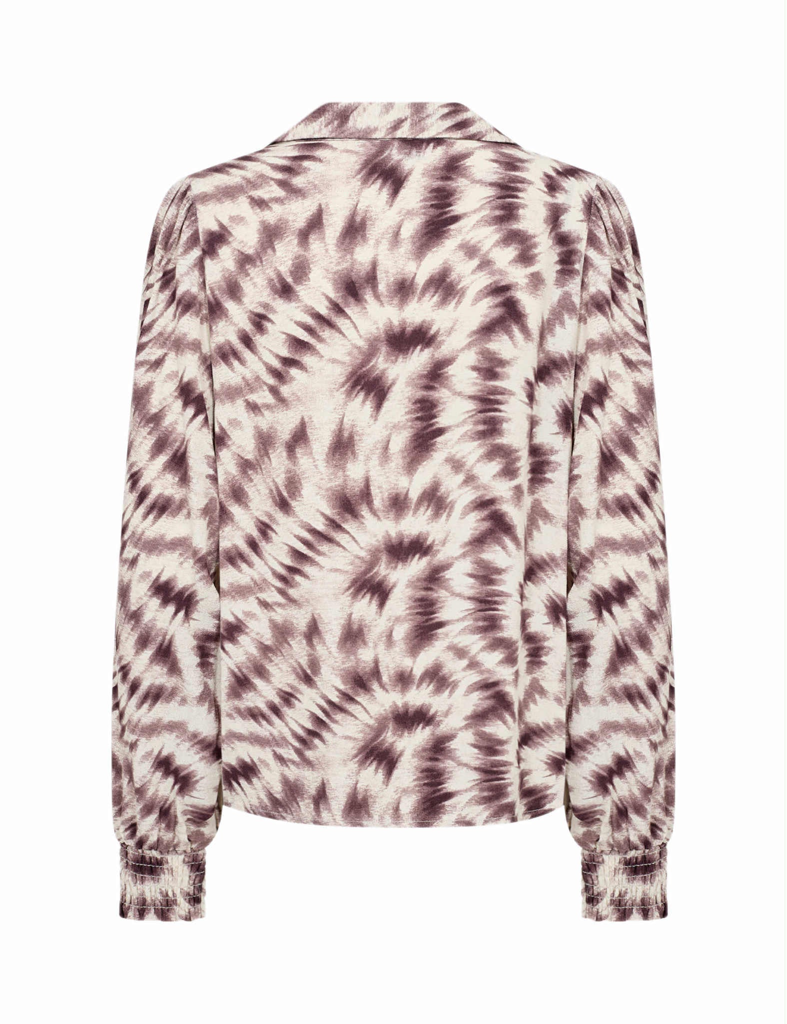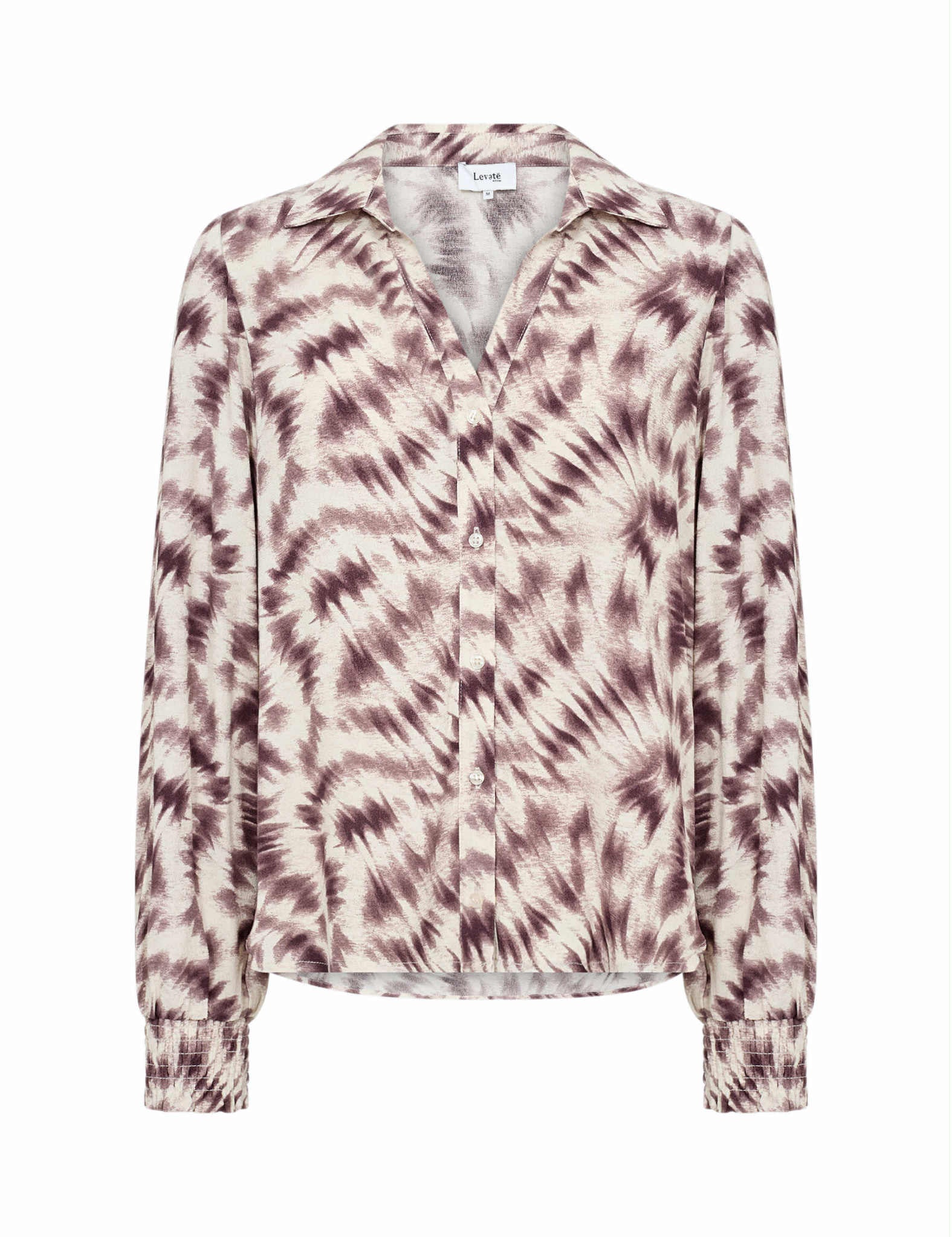 Sæt blússa frá danska merkinu Levete Room. Hún er með v-hálsmáli, laus í sniði og hneppt alla leið.