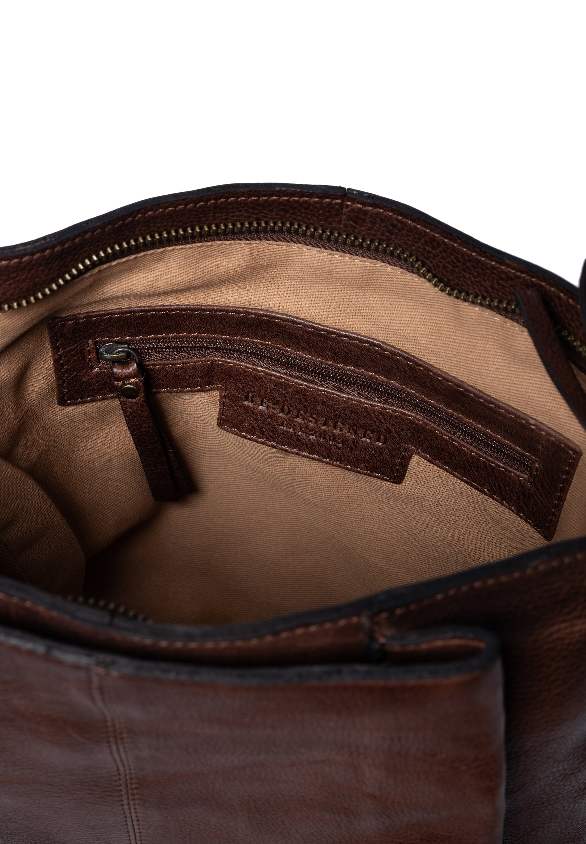 Eitt aðalhólf þar sem einnig er litill renndur vasi. Taskan lokast að ofan með rennilás og fylgir löng stillanleg axlaról með