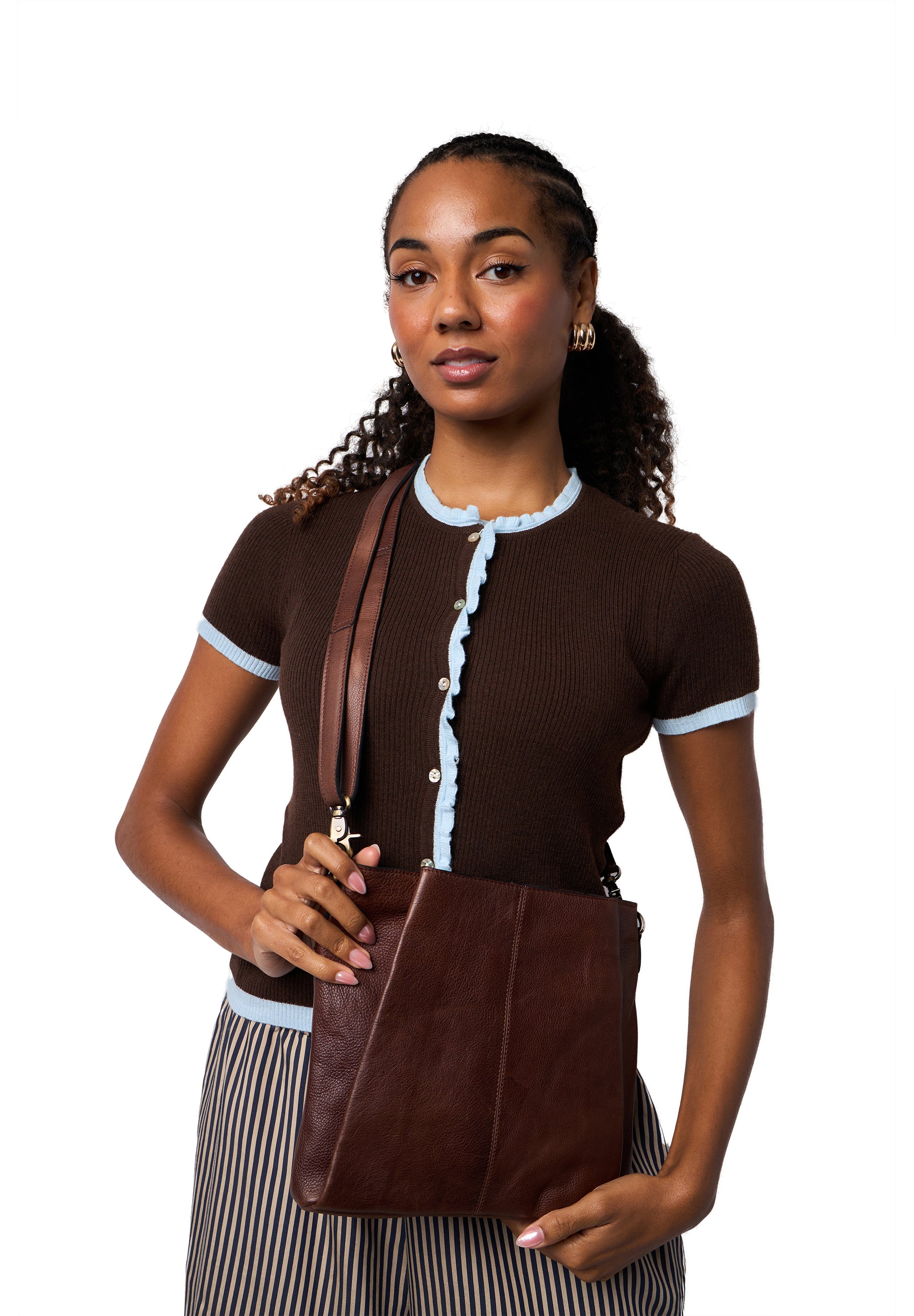 Millistærðin af Nisa leðurtöskulínunni. Passar undir allt það helsta fyrir daglega notkun.