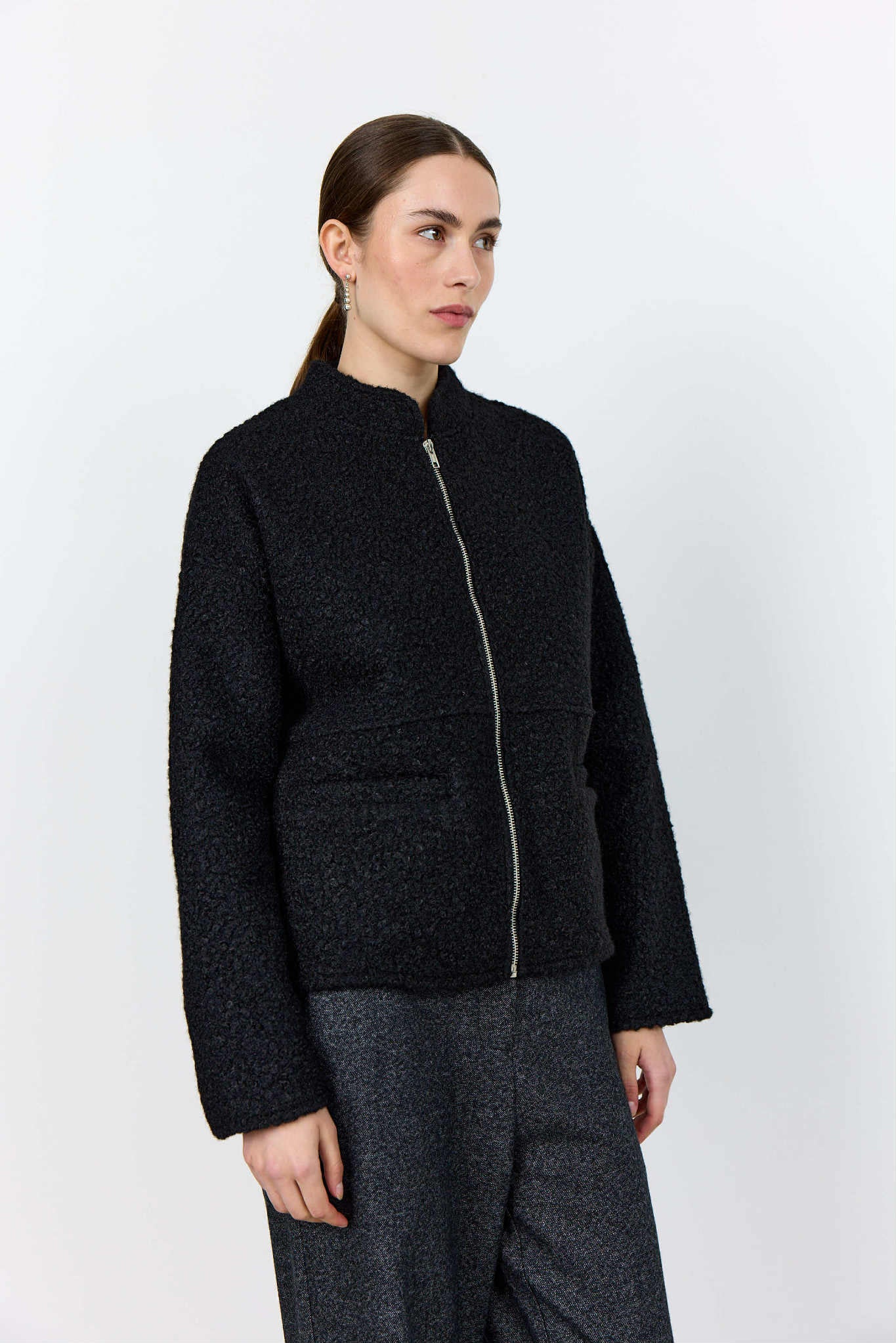 Ótrúlega skemmtilegur og flottur jakki frá danska merkinu Levete Room. Hann er beinn í sniði og með rennilás. Þessi flotti jakki er úr þunnu og mjúku efni, með vösum. Þetta er hinn fullkomni haust jakki.