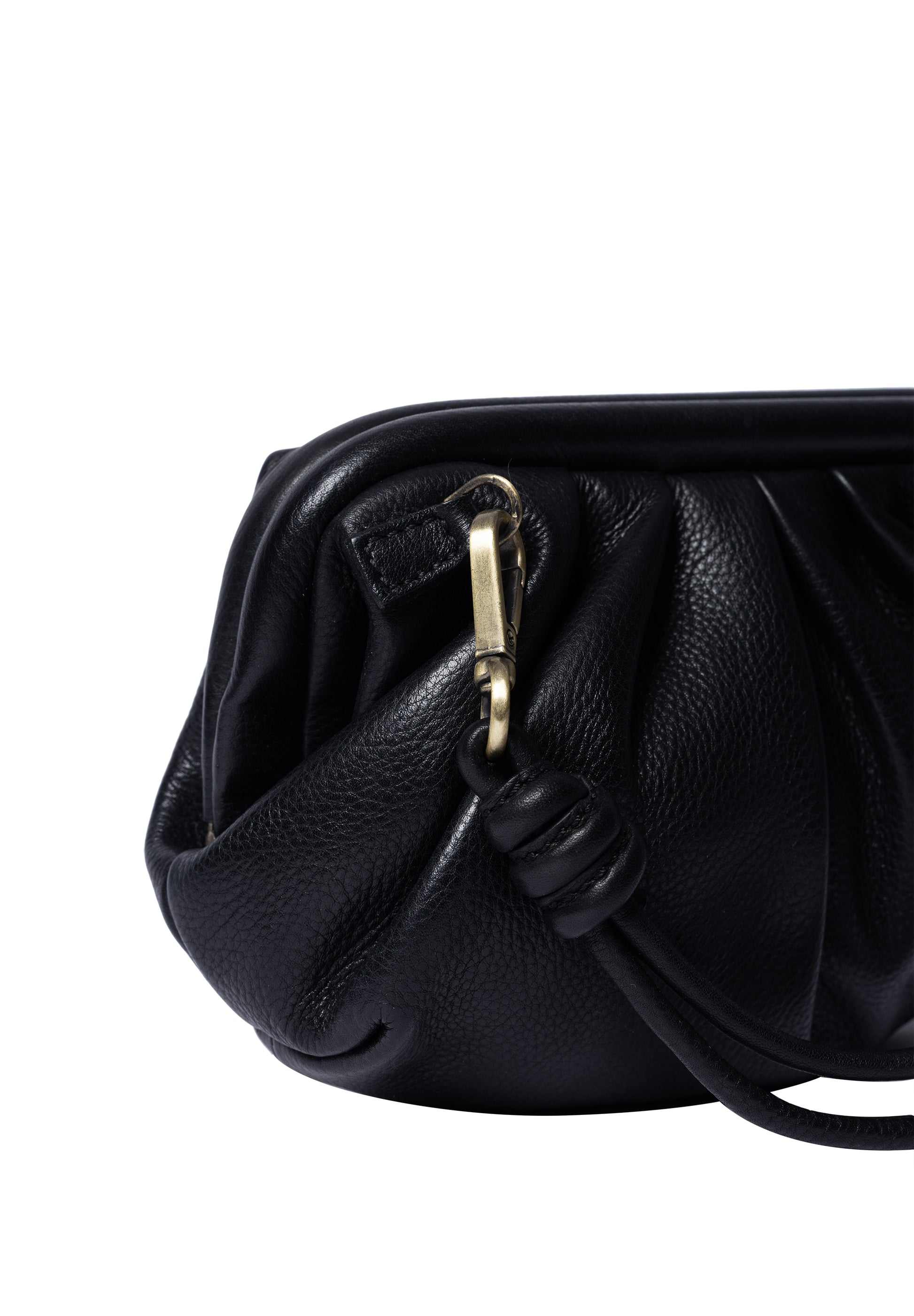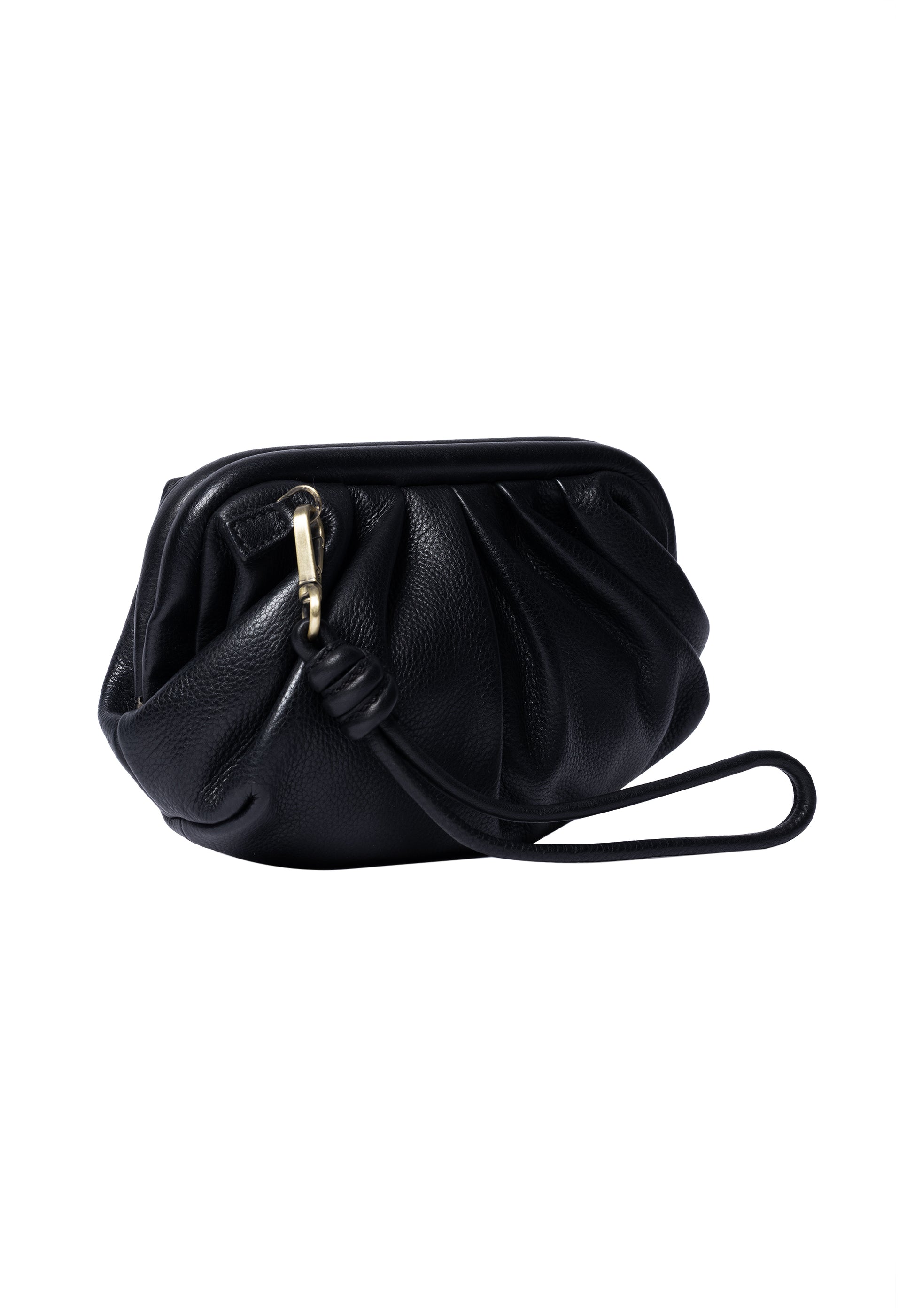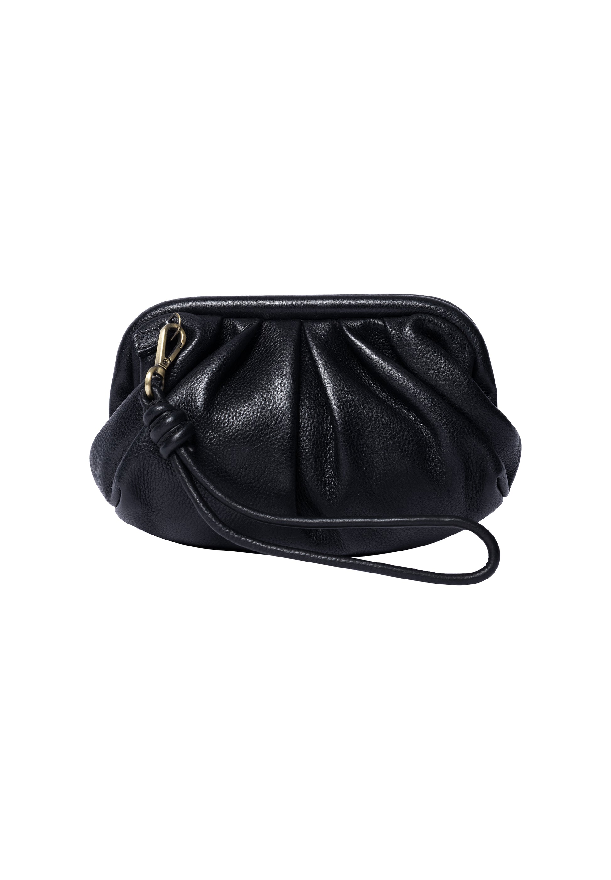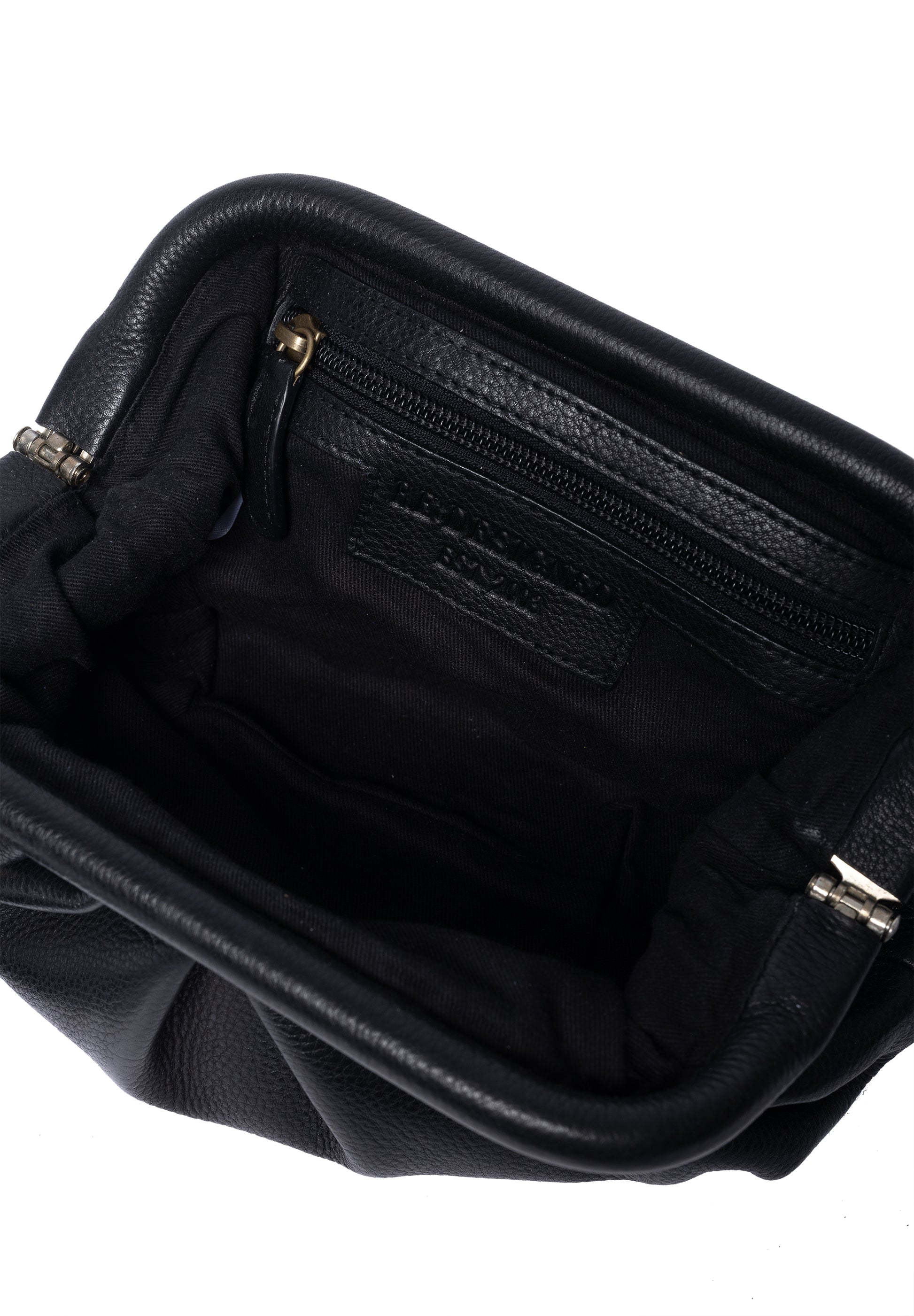 Þessi er alveg einstök og minnir á gamla tíma. Leður samkvæmisveski sem opnast vel, lítill renndur vasi er inní. Löng axlaról er á töskunni en einnig fylgir úlnliðsól svo hægt er að nota veskið eins og clutch. Lokast með með segli.