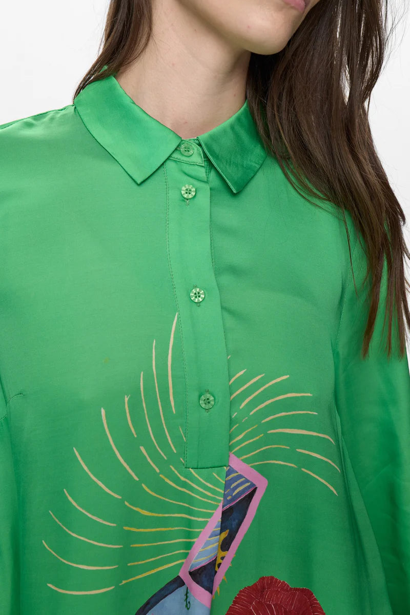 Sparilegur og skemmtilegur kjóll frá danska merkinu Nümph. Hann er með skyrtukraga og hnepptur að ofan, laus í sniði og með vösum, sem við elskum! Ótrúlega skemmtilegir og flottir litir og mynstur á þessum. Áferðin á kjólnum er silkikennd