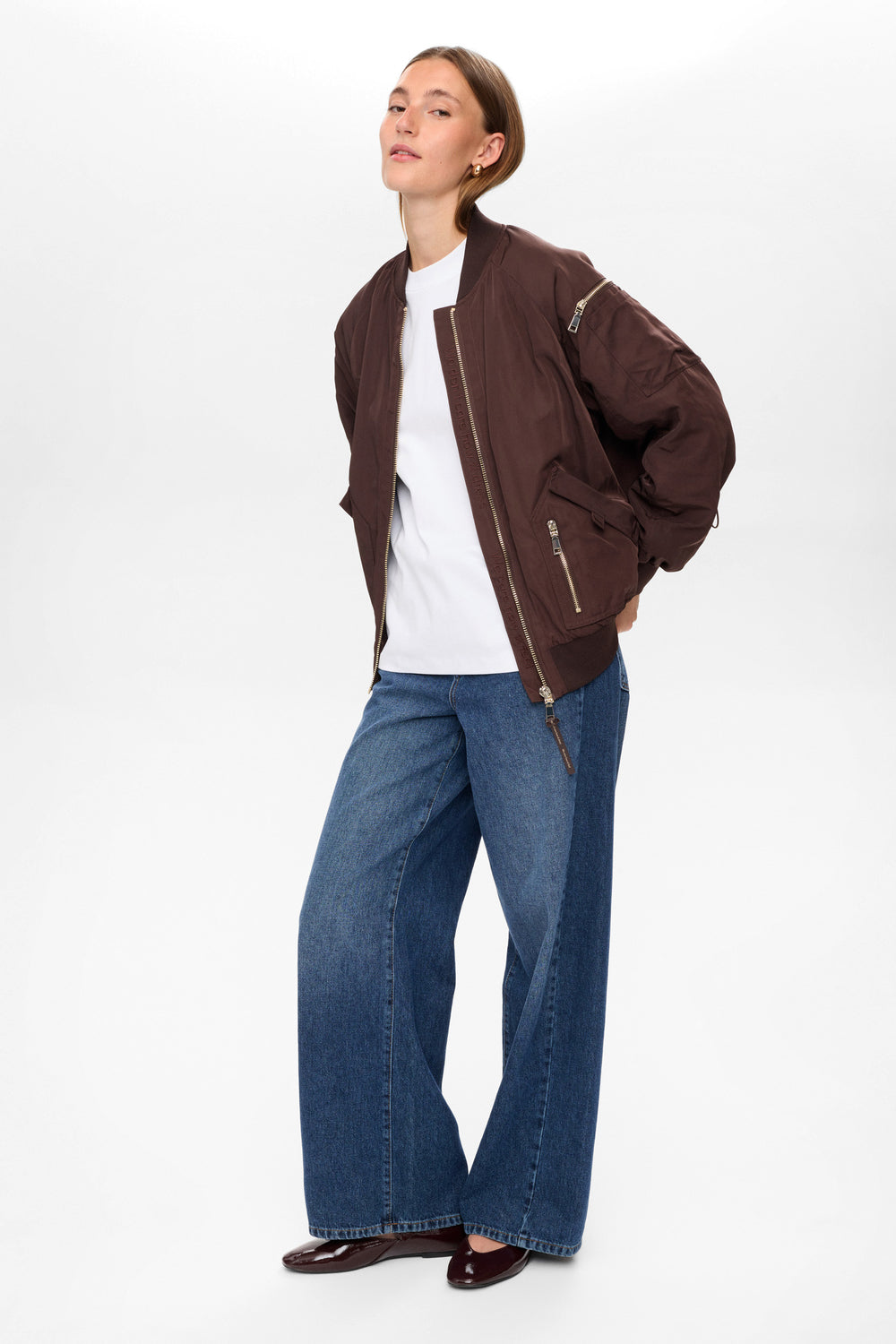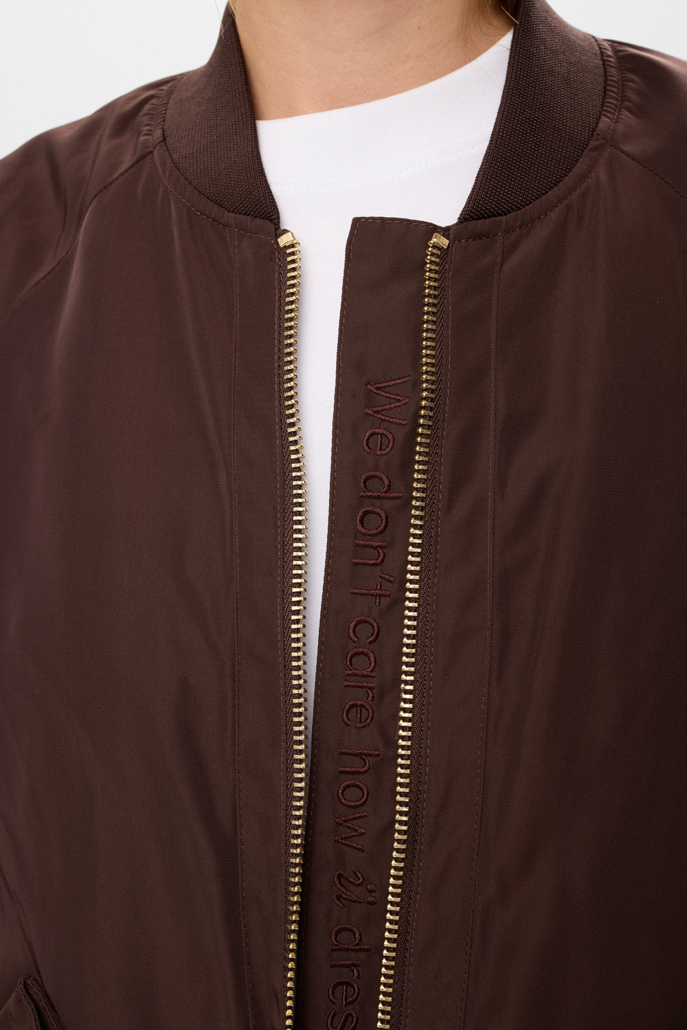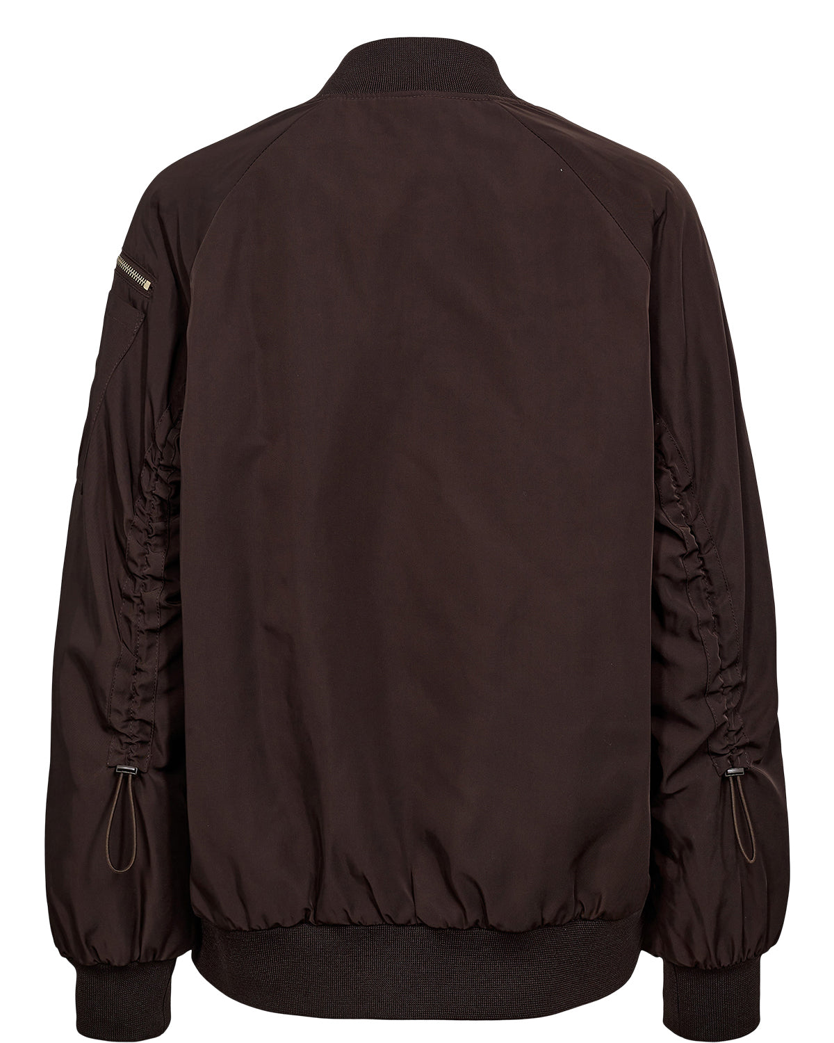 Æðislegur bomber jakki frá danska merkinu Nümph. Hann er með rennilás, vösum á hliðinni og í virkilega klæðilegu og töff sniði. Hann er með teygju á ermunum, sem hægt er að þrengja eða hafa laust, teygju að neðan og á ermum.