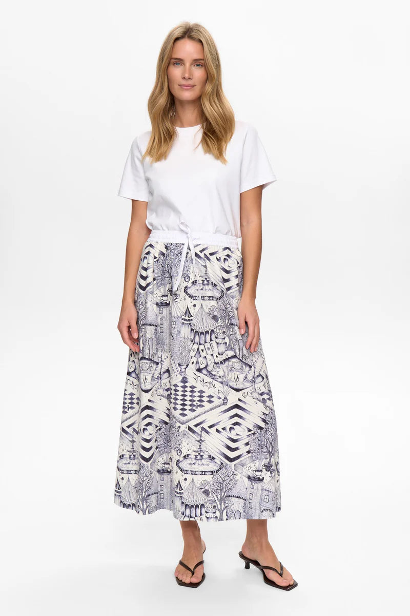 Þetta dásamlega skemmtilega pils er frá danska merkinu Nümph. Það er með þykkri teygju í mittinu, sítt og laust í sniði. Ótrúlega klæðilegt og flott. Kemur skyrta í stíl, flott saman eða bara við þykka peysu eða einlitan bol.