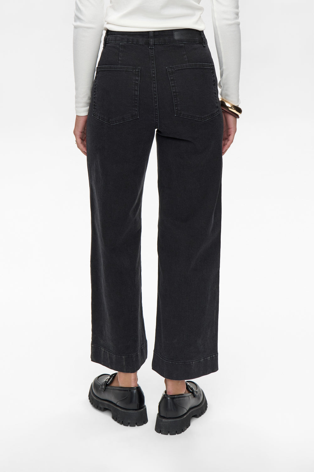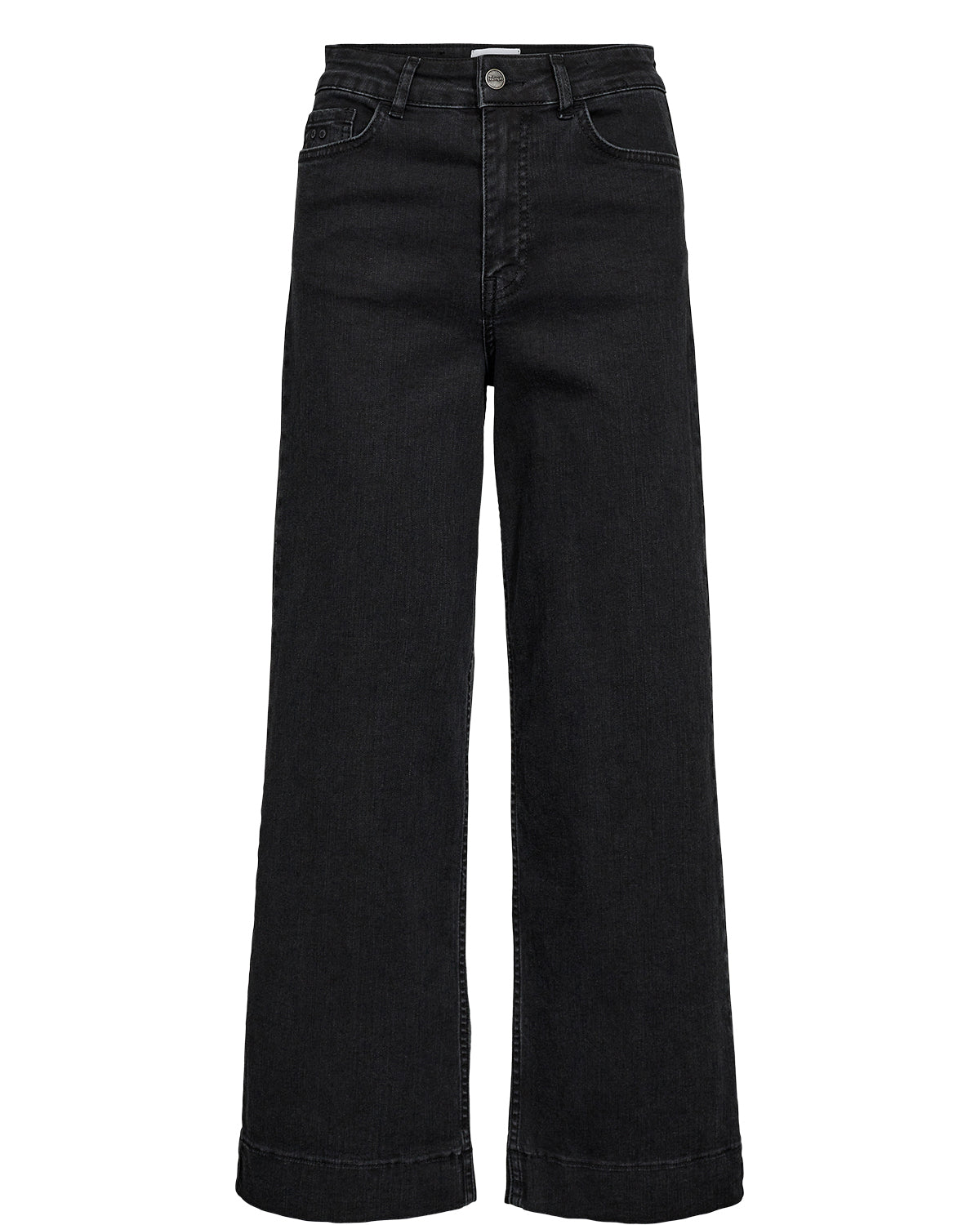 Virkilega skemmtilegar og flottar gallabuxur frá danska merkinu Nümph. Þær eru þröngar yfir rassinn og eru svo aðeins útvíðar í sniði og ná rétt fyrir ofan ökkla. Virkilega klæðilegar og flottar. Mjög góð teygja er í buxunum og munu þær gefa aðeins eftir við notkun