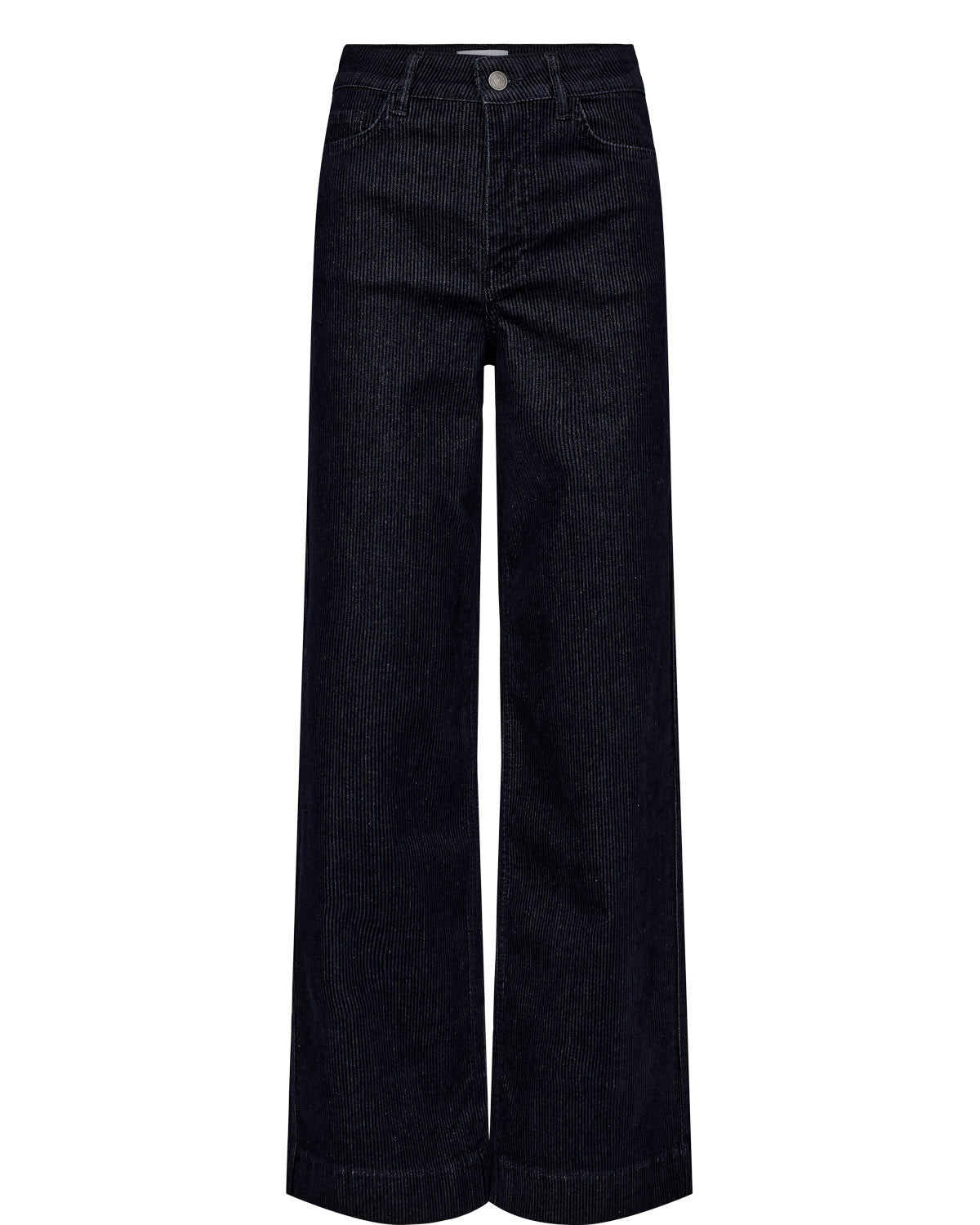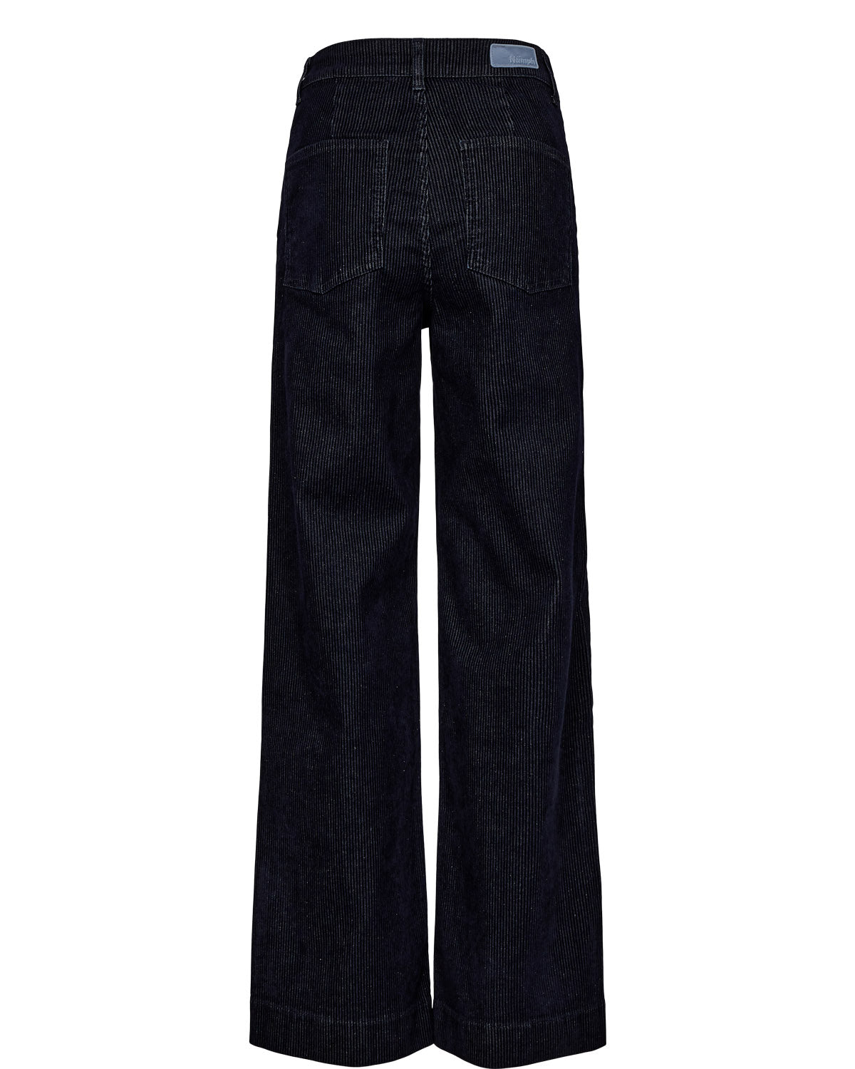 Virkilega skemmtilegar og flottar buxur frá danska merkinu Nümph. NuParis sniðið hefur slegið í gegn hjá okkur og er nú í nýju efni. Þær eru þröngar yfir rassinn en eru svo víðar en beinar í sniði og eru síðar. Virkilega klæðilegar og flottar, þær eru með rifflaðri flauels áferð og smá glimmersansering er í efninu