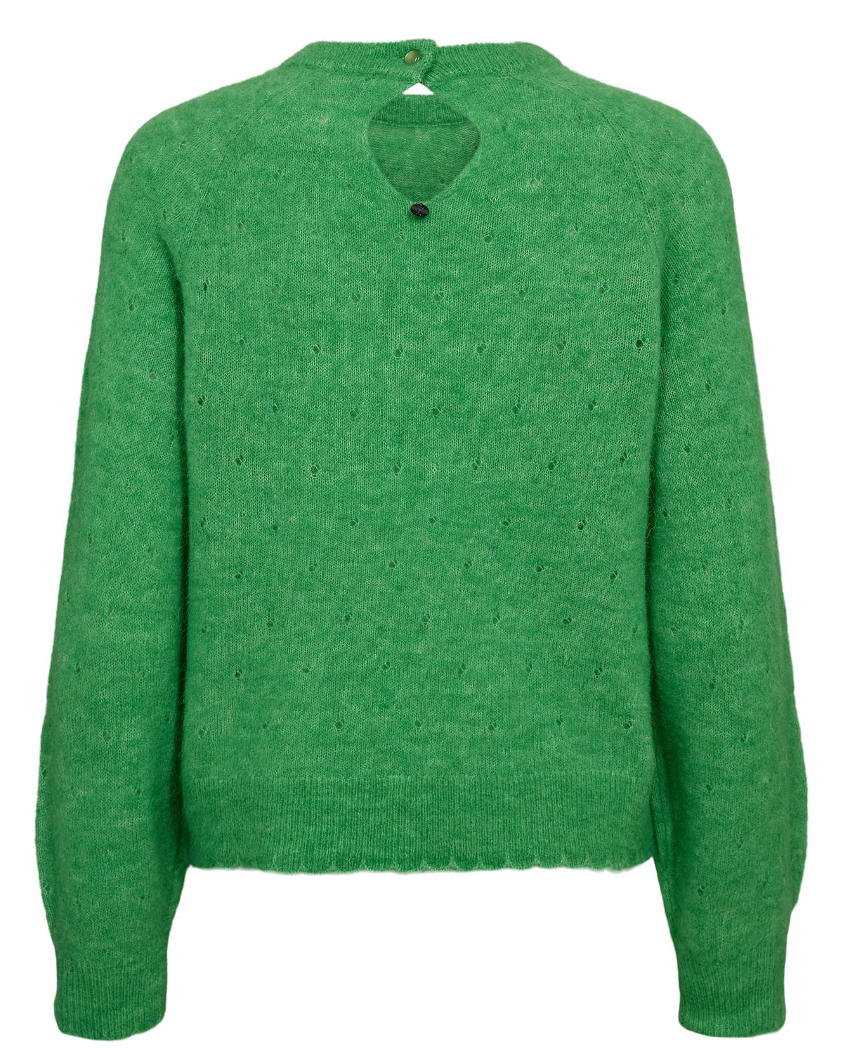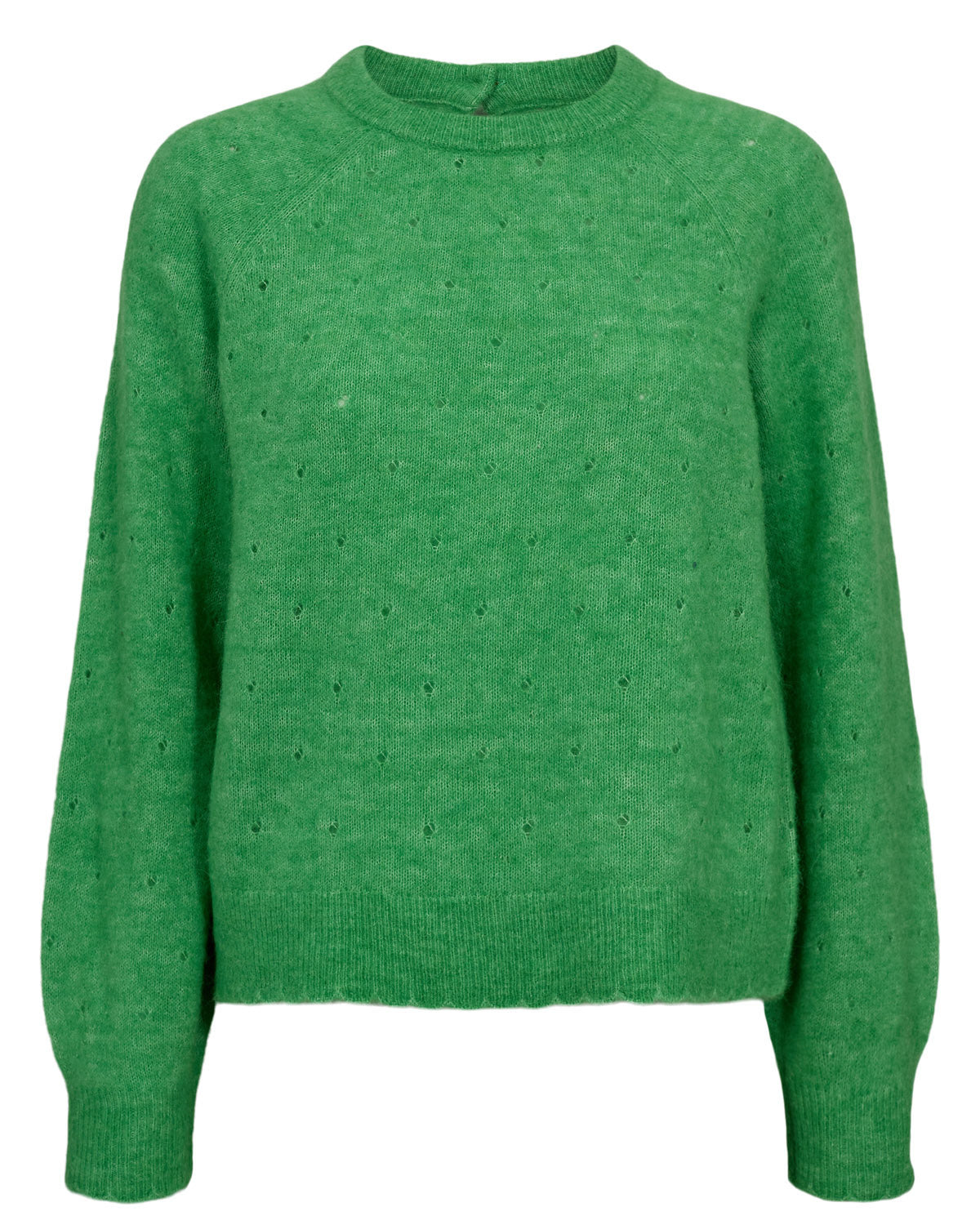 Hún er klassísk, í beinu sniði, með stroffi á ermum og litlum "götum" á sem gefa henni fallegt mynstur. Mjúk og hlý í dásamlegum lit.