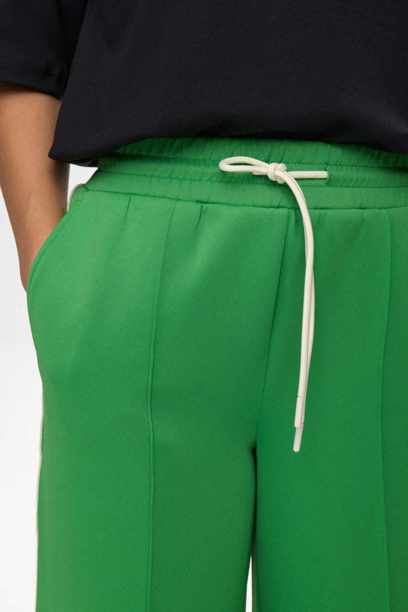 Við elskum sett, en þessar buxur eru ótrúlega flottar og koma frá danska merkinu Nümph. Þær eru lausar í sniði, beinar niður en víkka aðeins út að neðan. Teygja í mittinu og band til að þrengja og eru buxurnar/gallinn úr einstaklega þægilegu efni. Sportrönd er á hliðinni.