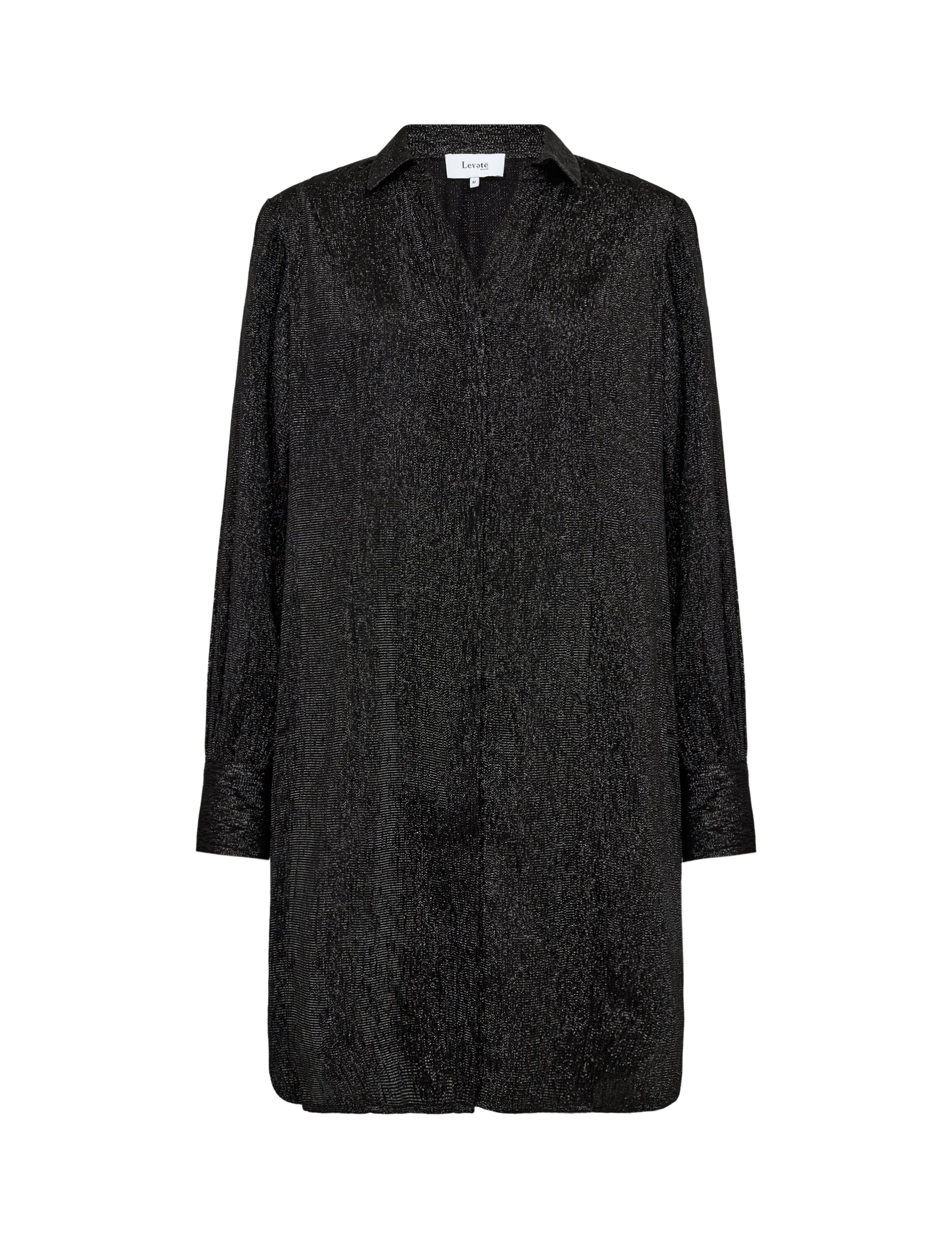 Æðislegur og klassískur, flottur skyrtukjóll frá danska Levete Room. Hann er með skyrtukraga, beinn í sniði og með v-hálsmáli. Ótrúlega klæðilegur, hægt að dressa upp fyrir fínni tilefni eða í vinnuna, jafnvel við gallabuxurnar fyrir meira "casual look".