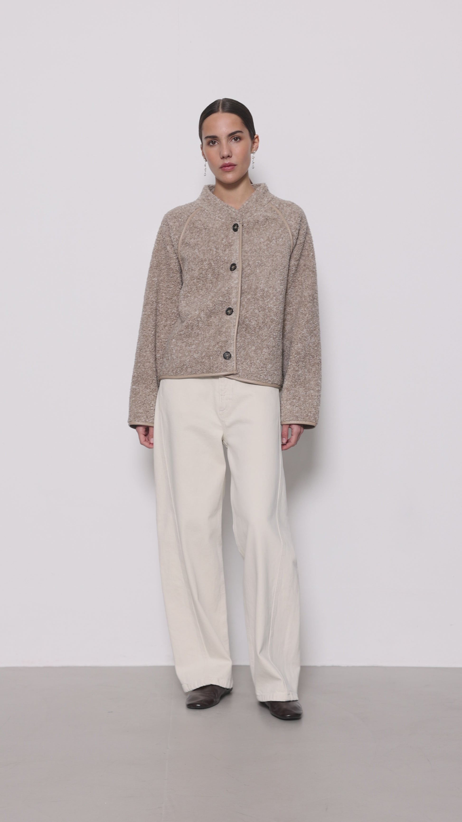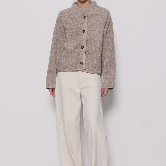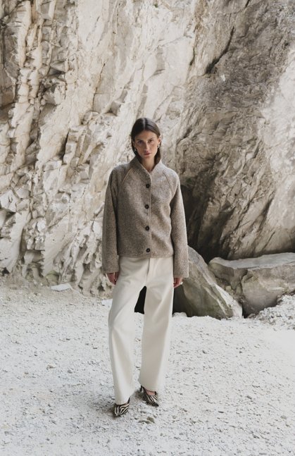 Einstaklega fallegur jakki frá danska merkinu Levete Room. Hann er sparilegur, hnepptur, örlítið oversized og virkilega kósí og klæðilegur. Falleg flík sem hentar jafnt við fínni sem afslappaðri klæðnað.