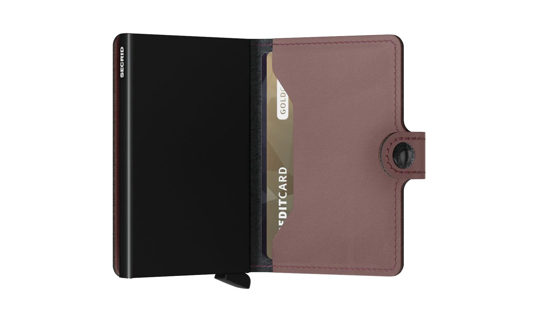 Margverðlaunuð hönnun. Secrid Slimwallet eru gerð úr gegnheilu áli og ekta leðri, allur frágangur hinn vandaðasti. Álið kemur í veg fyrir skönnun á kortunum og leðrið gefur veskinu fágað yfirbragð. Hvert veski tekur 5-6 kort í álhólkinn og 4-6 til viðbótar í vasa inní veskinu. Kortin (eða kortið) renna ekki úr veskinu þótt snúið sé á hvolf. Þá er hægt að koma fyrir nokkrum seðlum í sérstökum vasa.