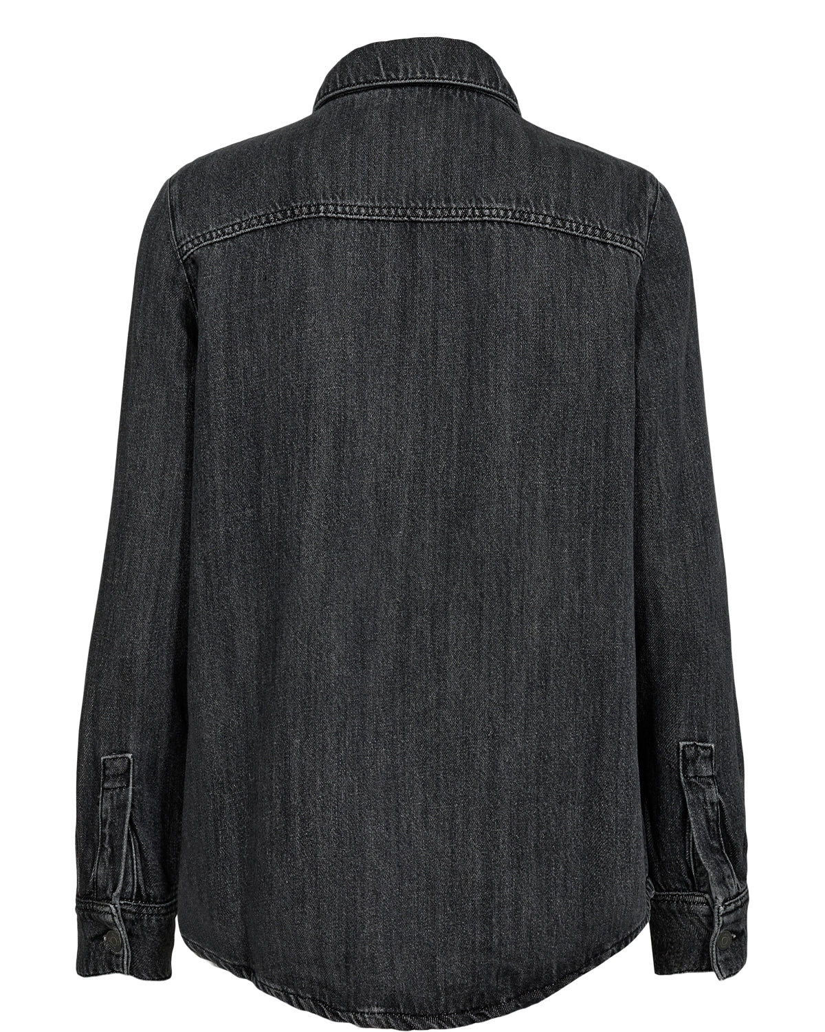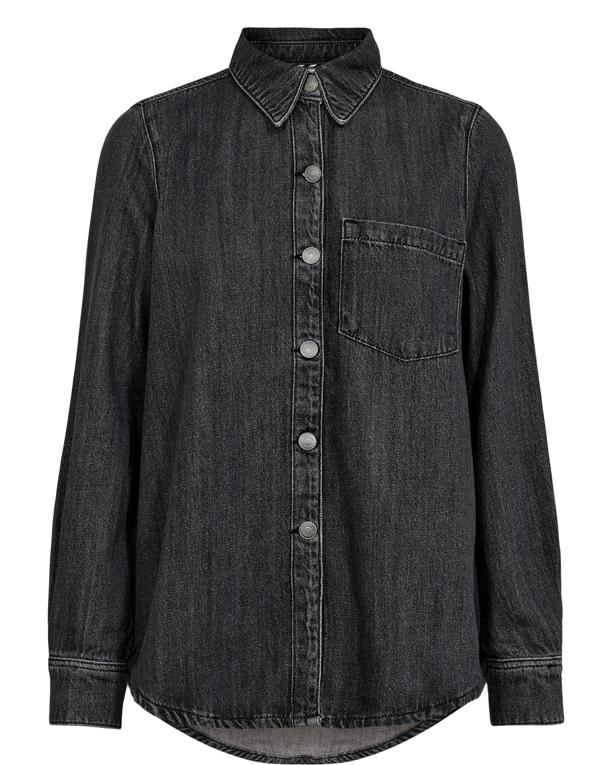 Skyrtan er hneppt alla leið með skyrtukraga og einum brjóstvasa. Hún er bein í sniði og frekar stór í stærðum. Þykk og góð en samt mjúk og lipur. Einnig hægt að nota sem létta yfirhöfn.