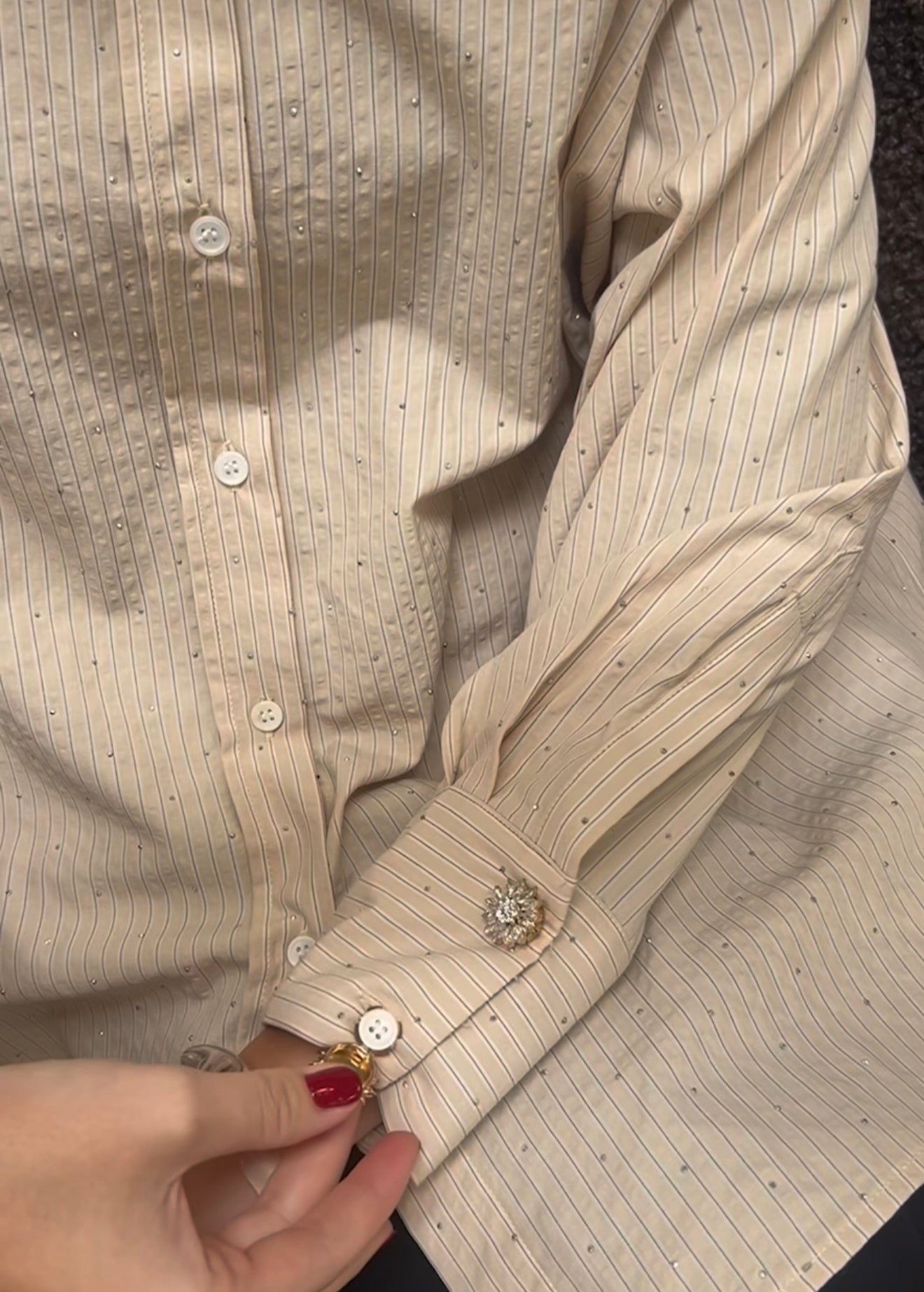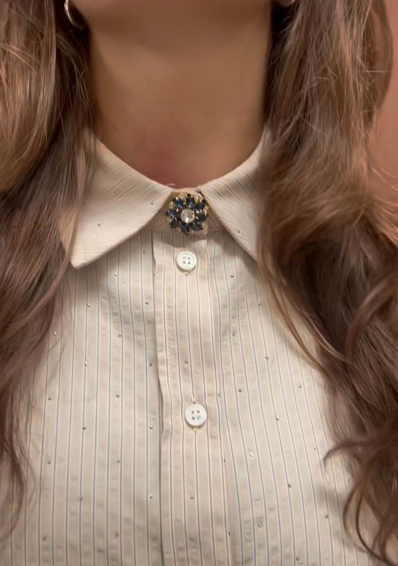 Fallegir skrauthnappar frá danska merkinu Black Colour en þeir smellast yfir tölurnar á hálsmáli eða á ermalíningu á skyrtu (eða annarri flík sem þú vilt lífga upp á).