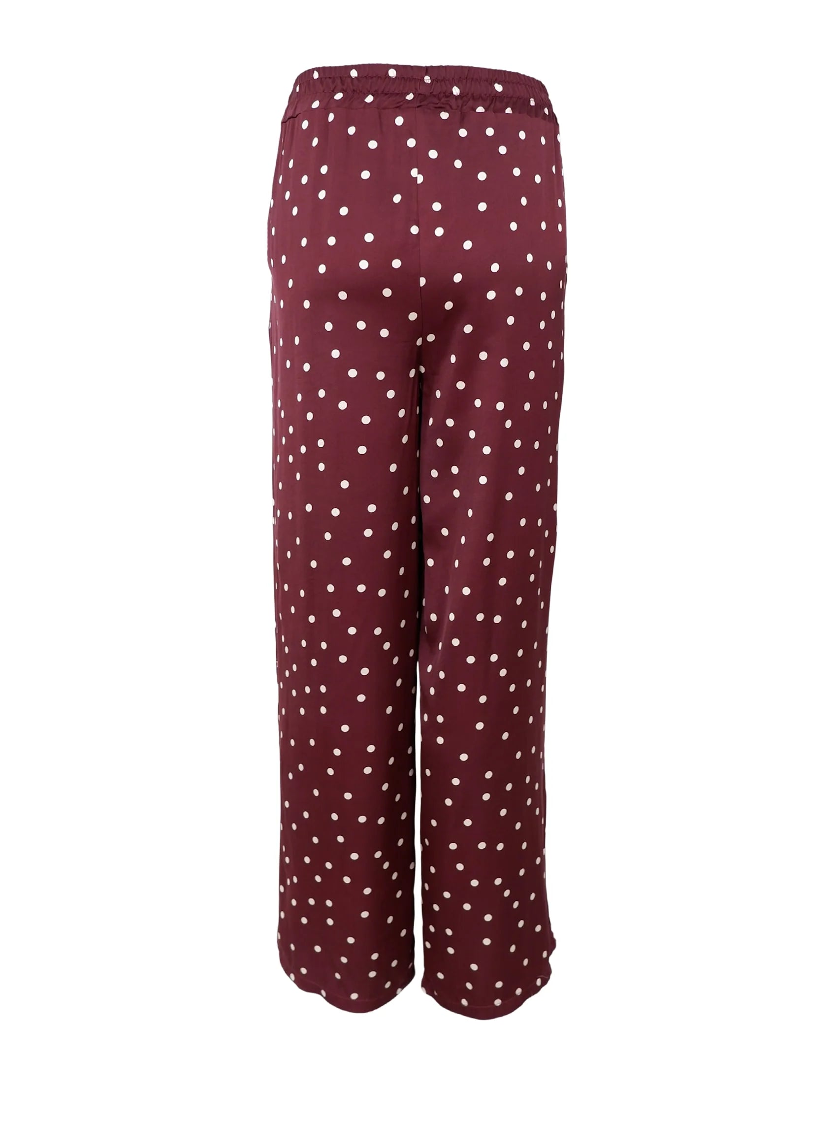 Æðislegar satín buxur frá danska merkinu Black Colour. Þær eru með teygju í mittinu, beinar í sniði, vasar á hliðum og með ljósum doppum ár.