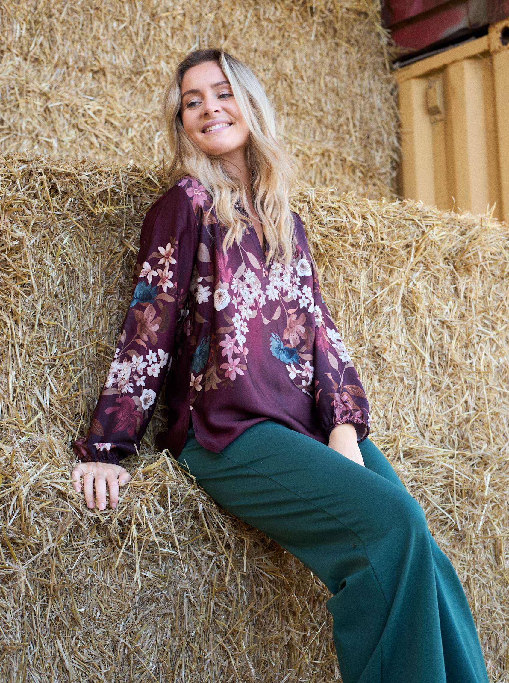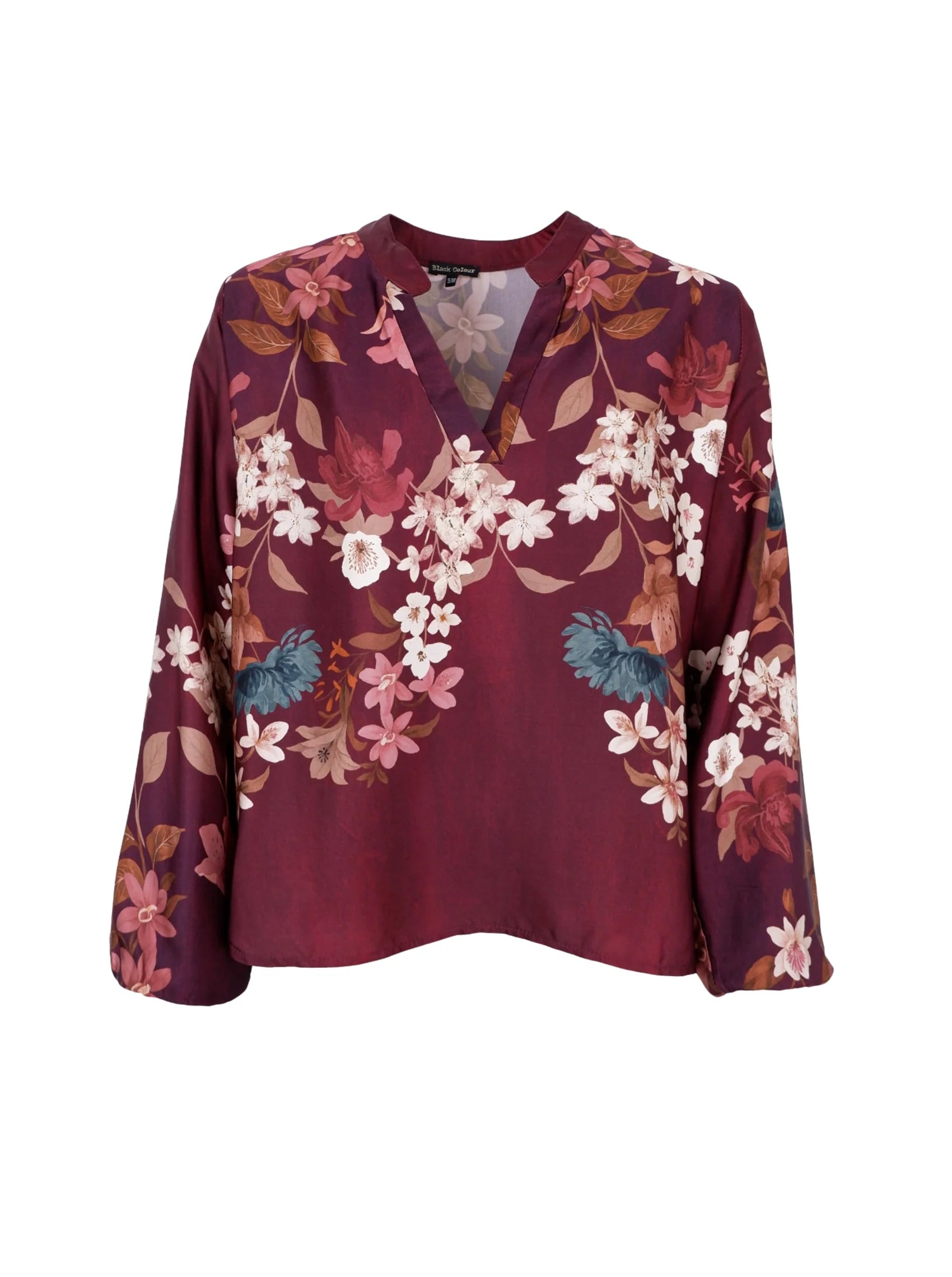 Æðisleg blússa frá danska merkinu Black Colour. Hún er með v-hálsmáli, laus í sniði og teygju á ermum.