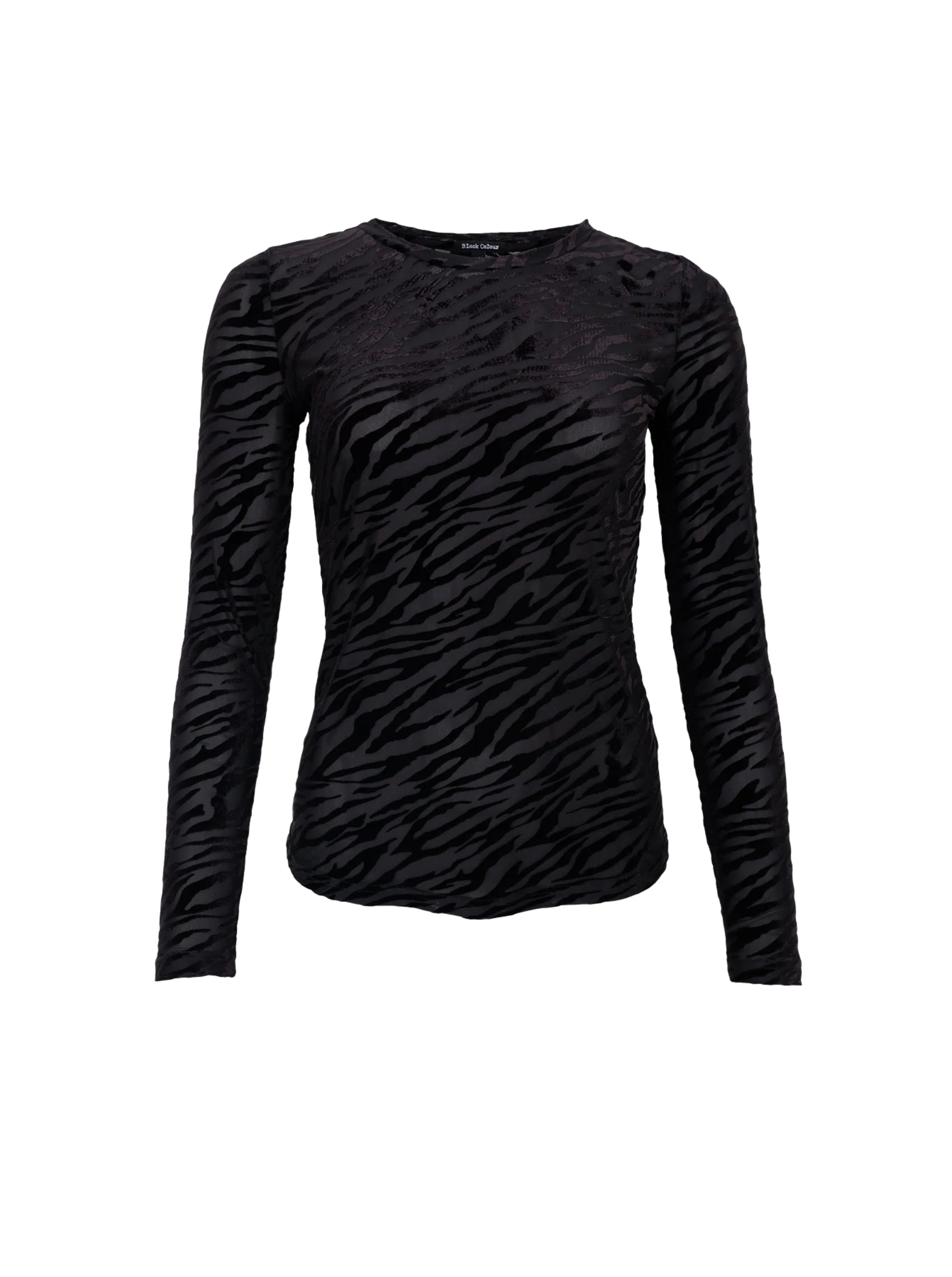 Hálf gegnsær bolur frá danska merkinu Black Colour. Hann er síðerma, aðsniðinn en með góðri teygju.